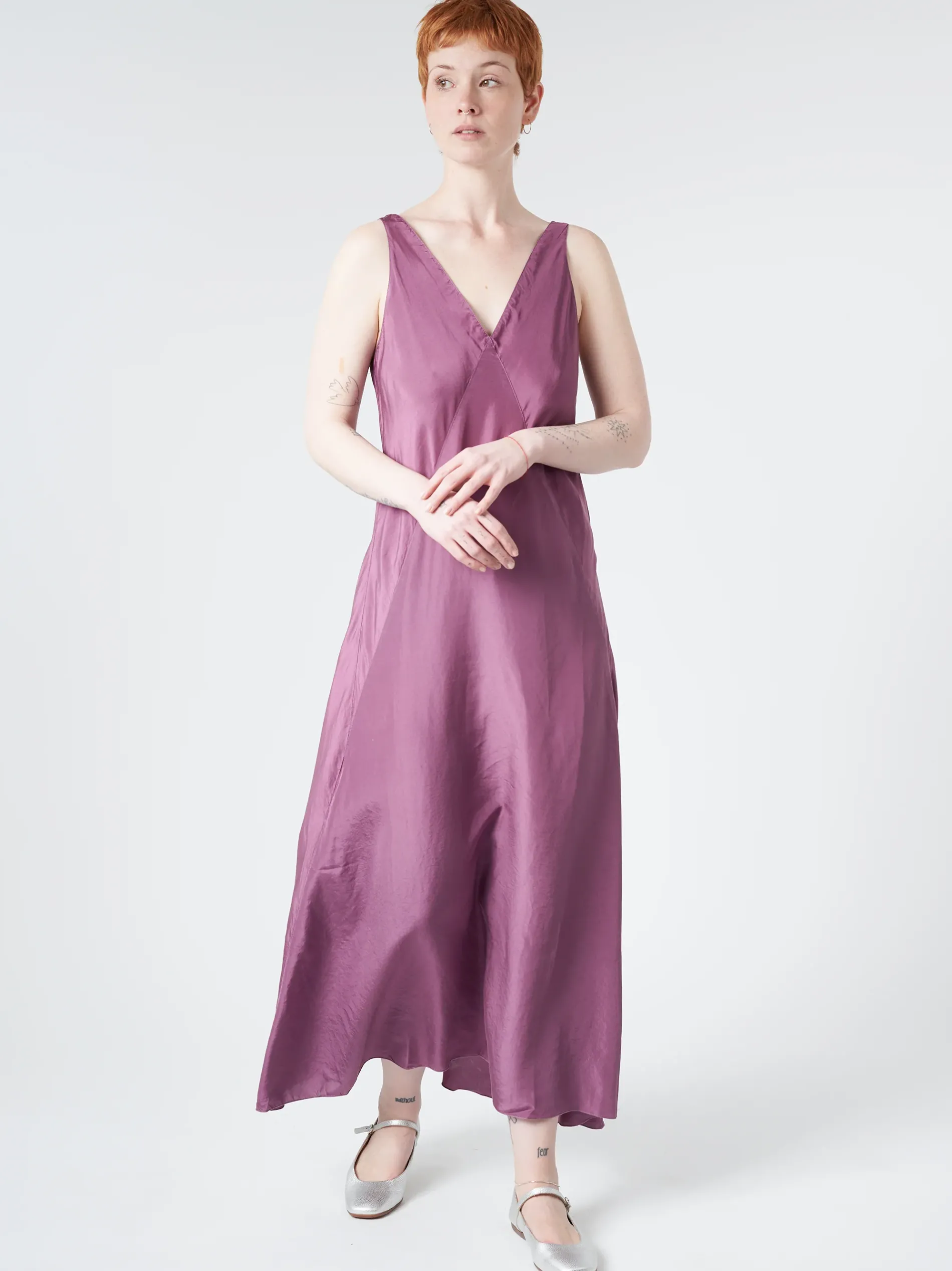 This long dress is made of silk habotai and features bias cuts and a draped back for a fluid and flattering fit.