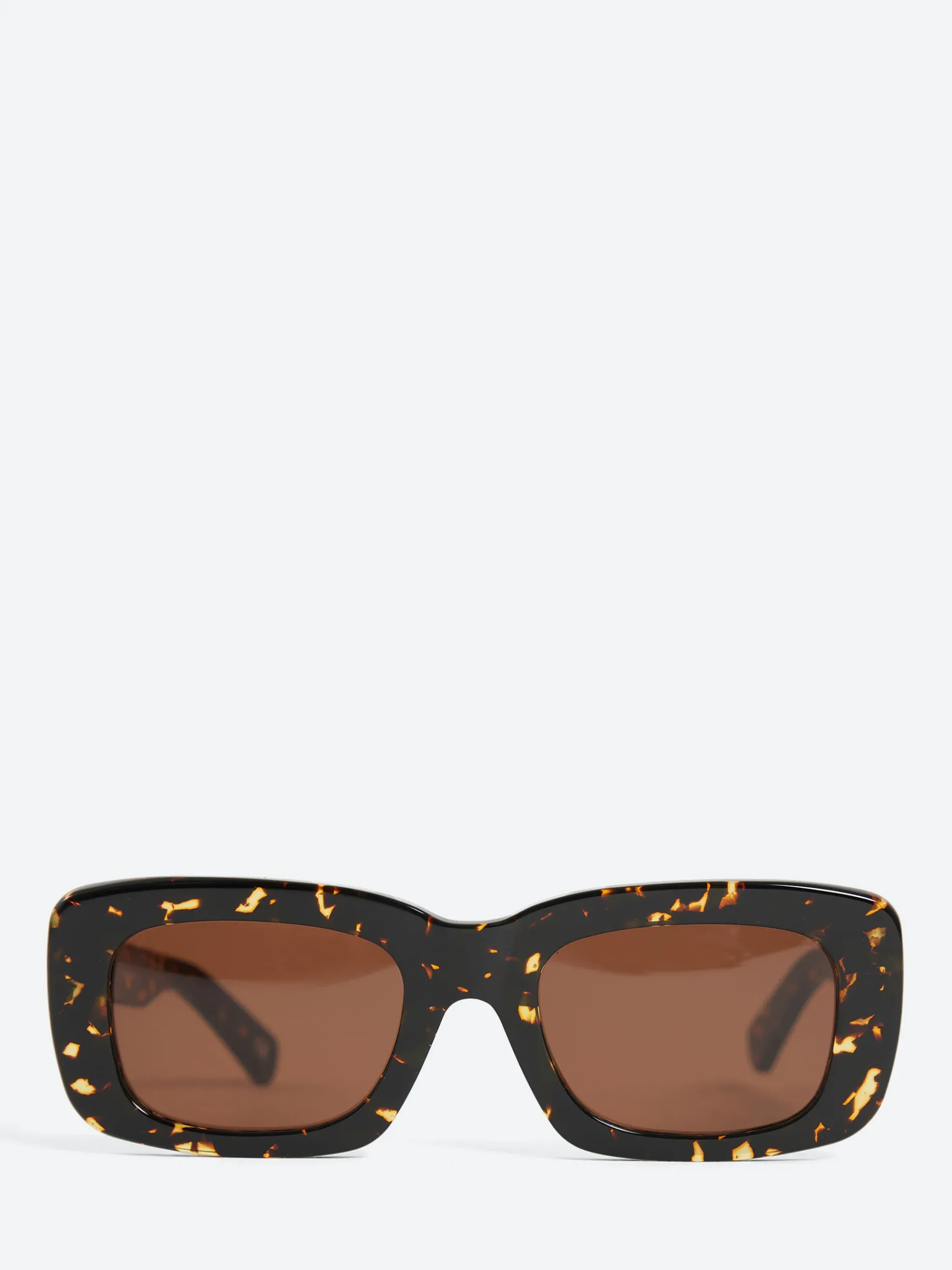 New from Pomandère, these rectangular frames are hand-crafted in Italy from green cellulose acetate, with full-spectrum UV protection lenses.