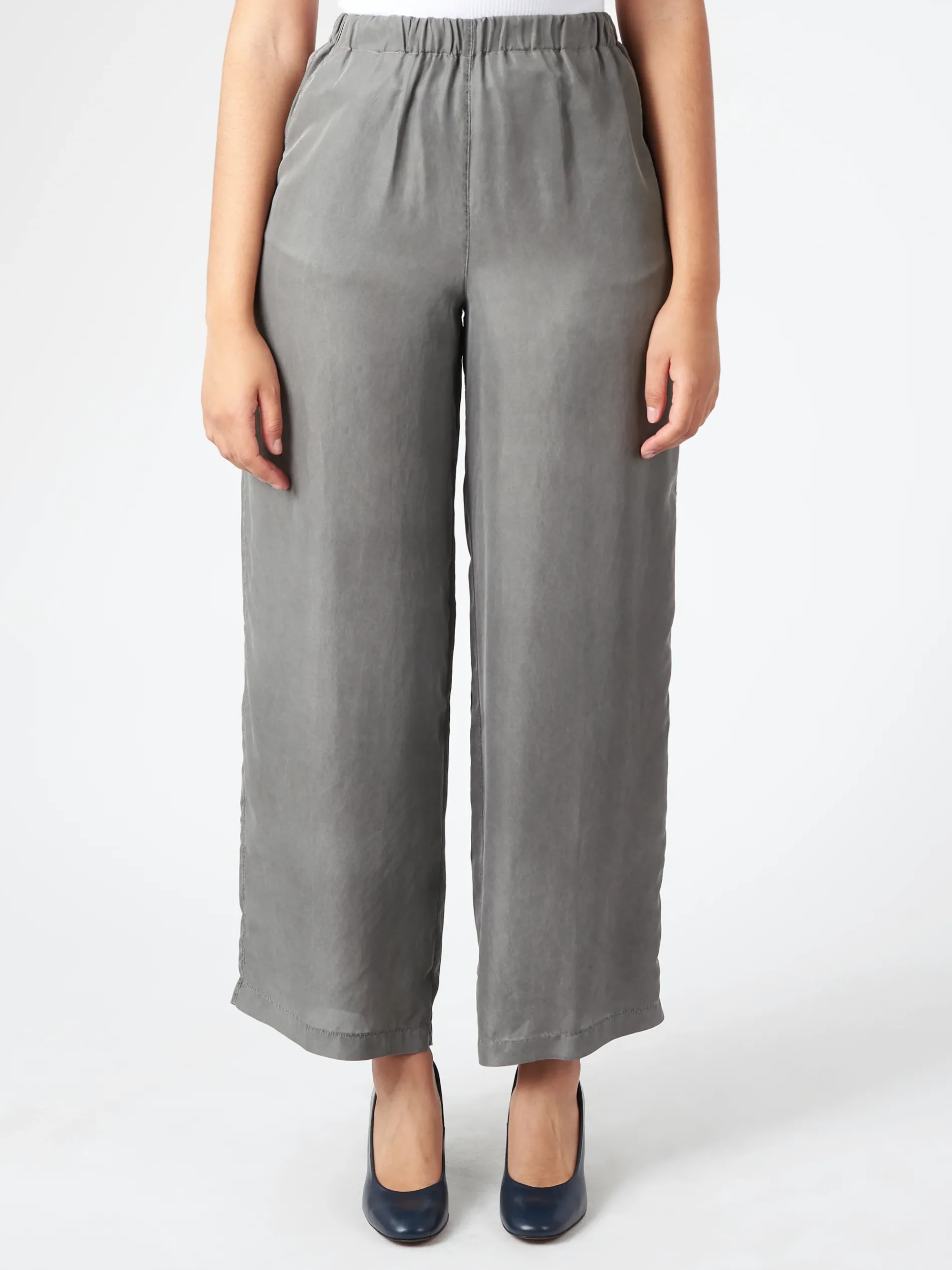 Pomandere loose-fitting trousers in silk, with elastic and drawstring at the waist and side pockets.