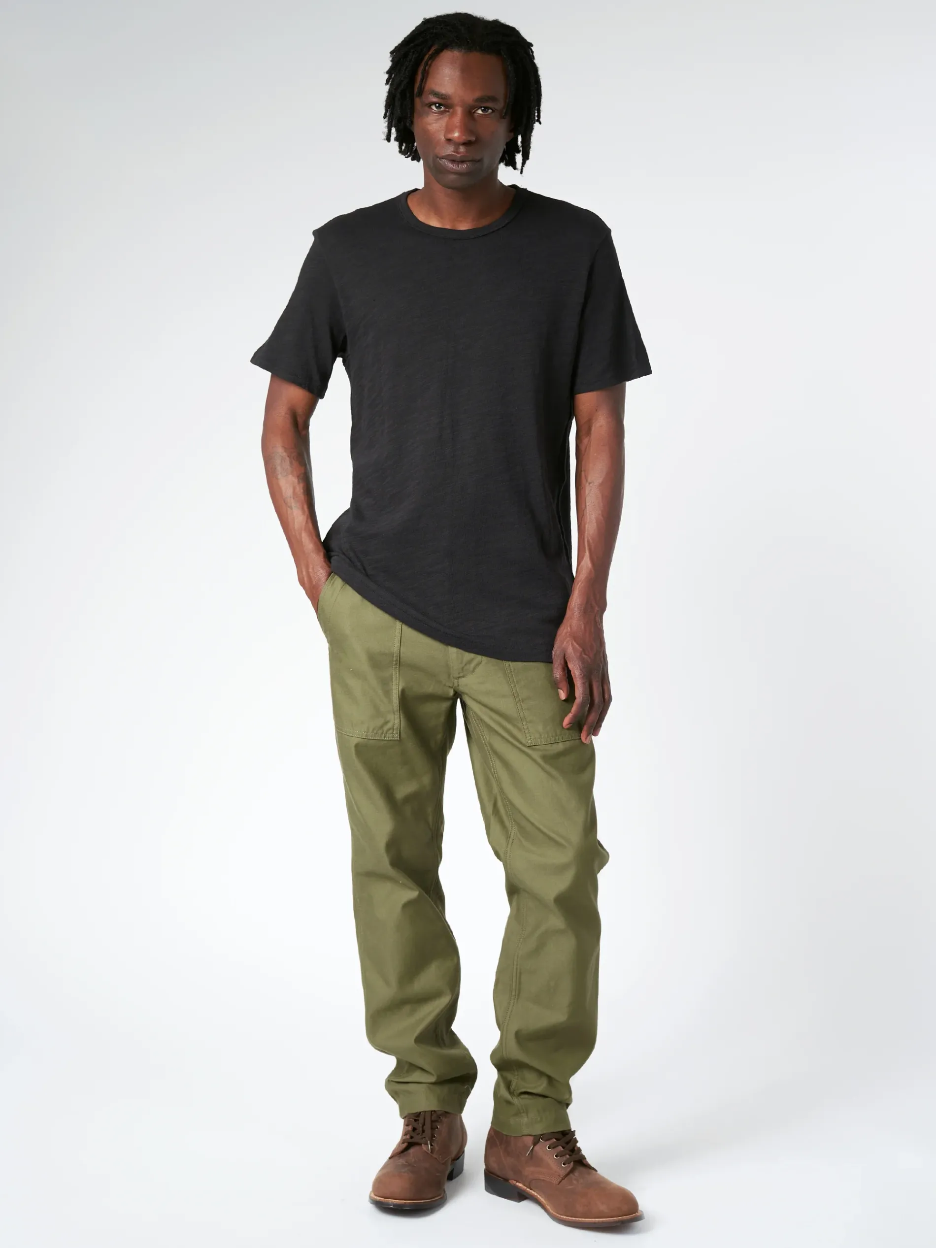 Rag and Bone’s Classic Tee is short-sleeved and a branding detail on the bottom hem. The t-shirt is made of slub cotton jersey, a lightly textured fabric that offers comfort and drape.