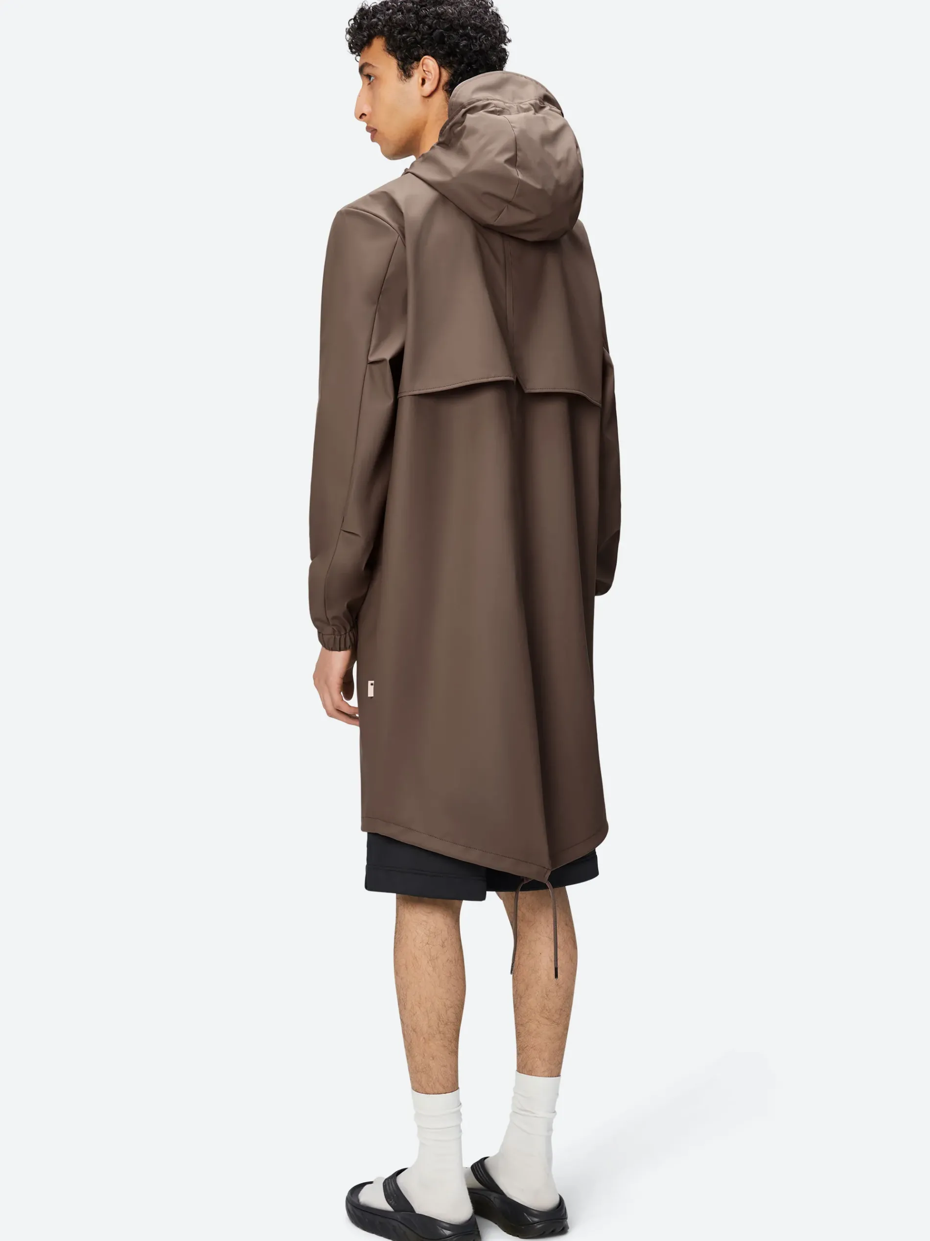 Rains Fishtail Parka is a unisex raincoat made from the brands signature waterproof fabric. It has a casual fit with a longer backside, featuring a signature fishtail drawstring for extra coverage in wet weather.
