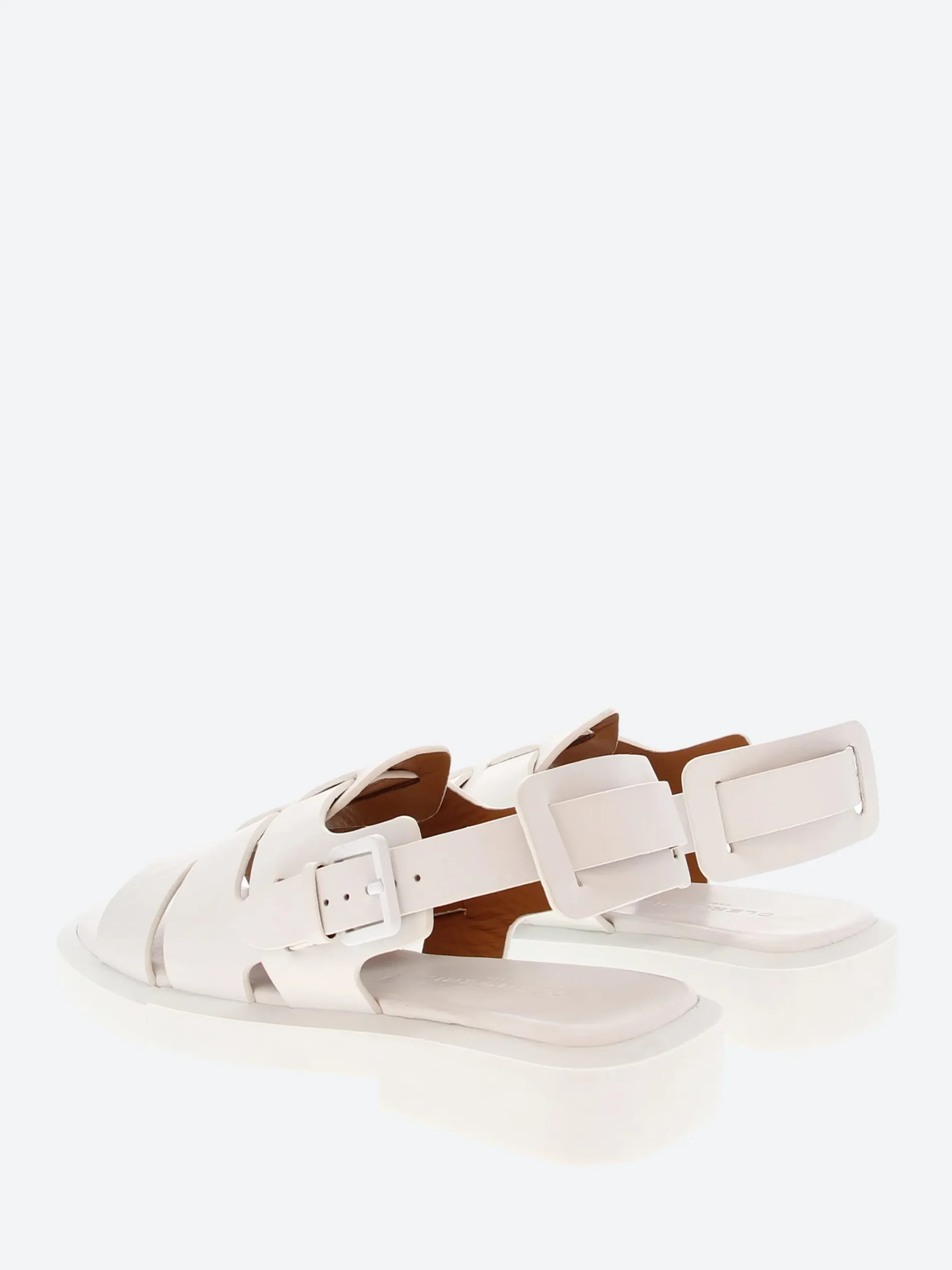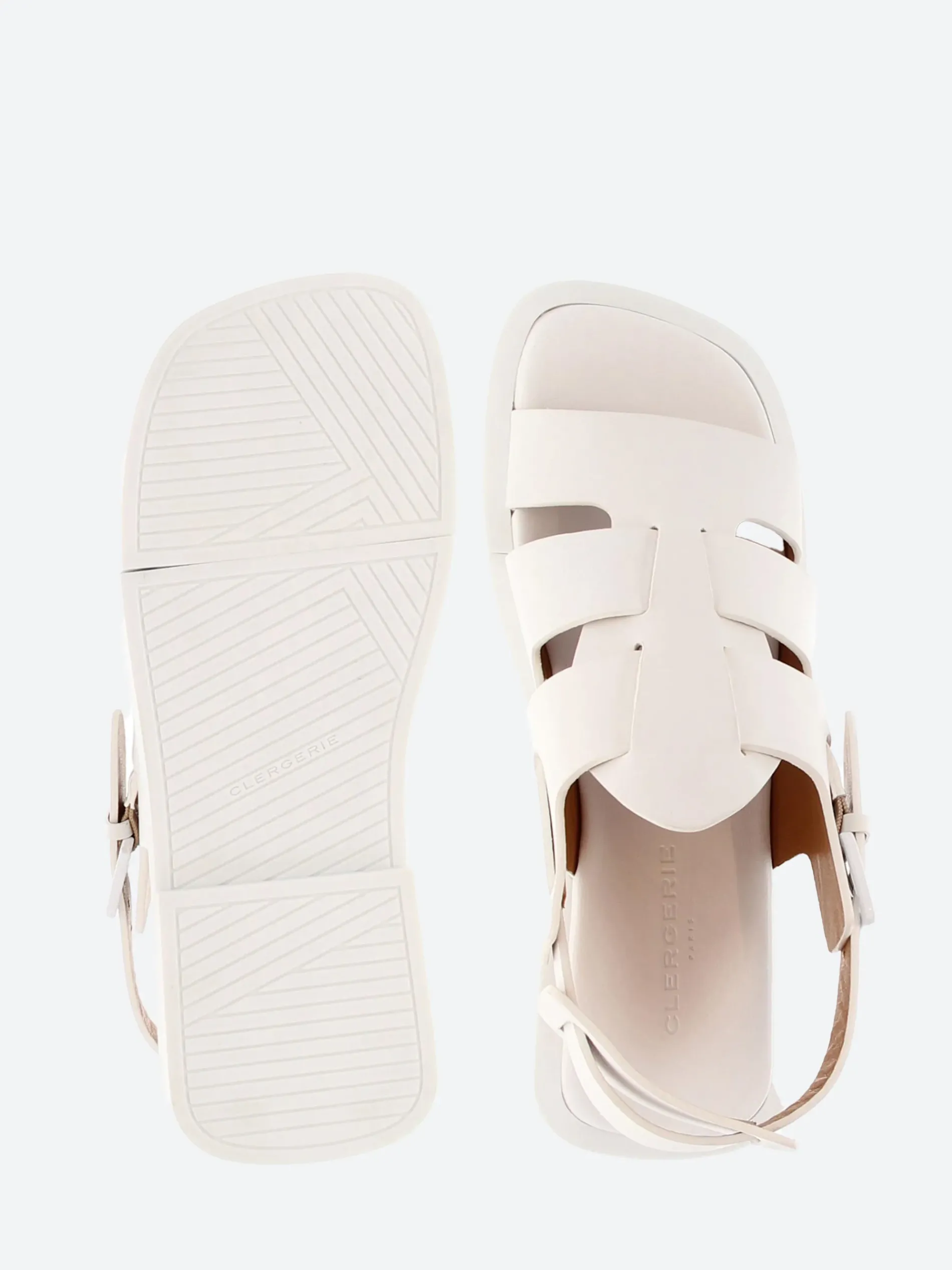 Clergerie Ramona sandal adorns the foot with an architectural interlacing of straps inspired by sailor’s sandals. The luxurious leatherwork finish of the cutouts hides the edge of the leather of the straps in a saddlery spirit.