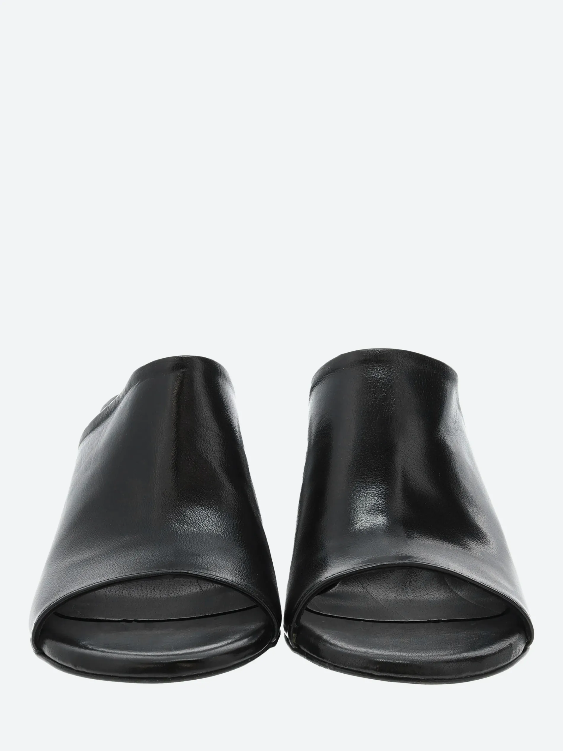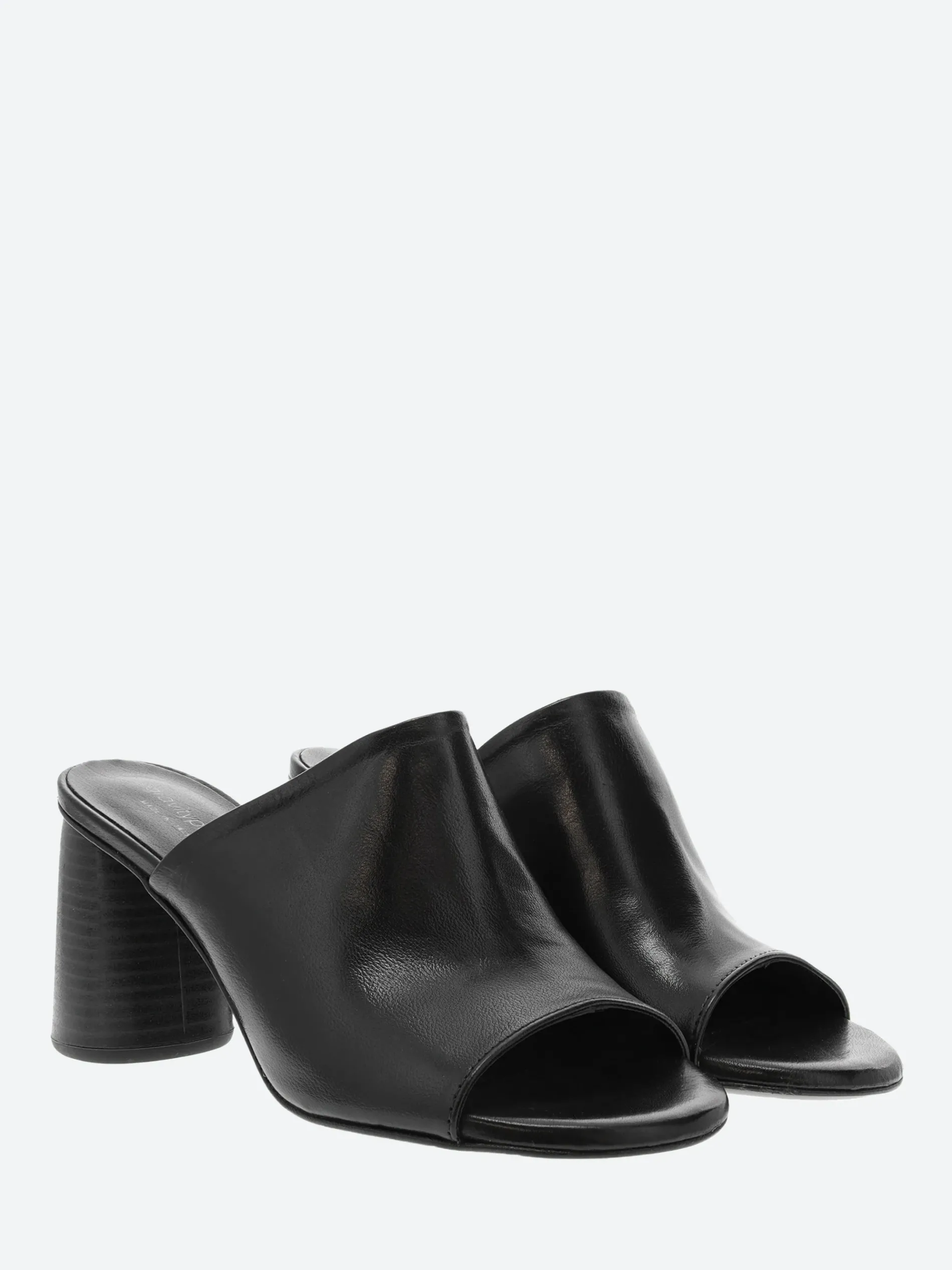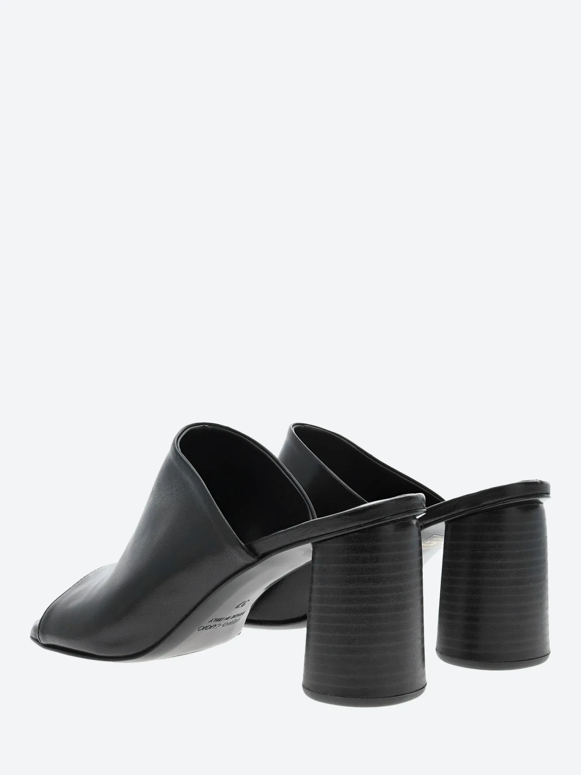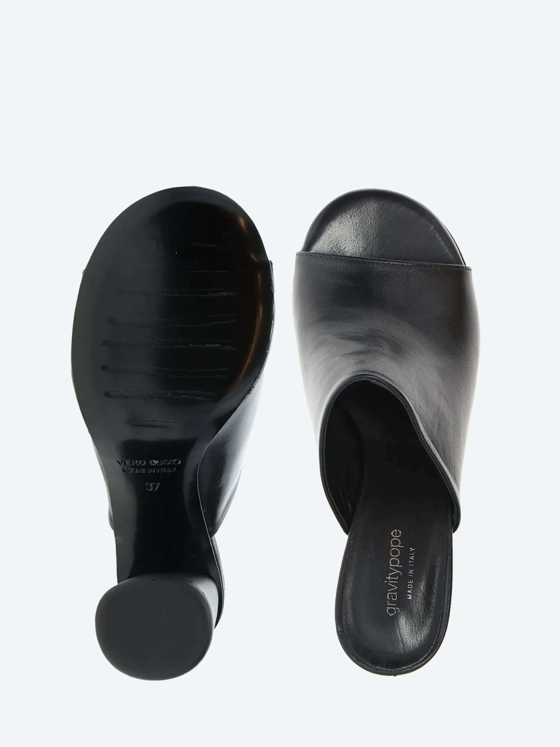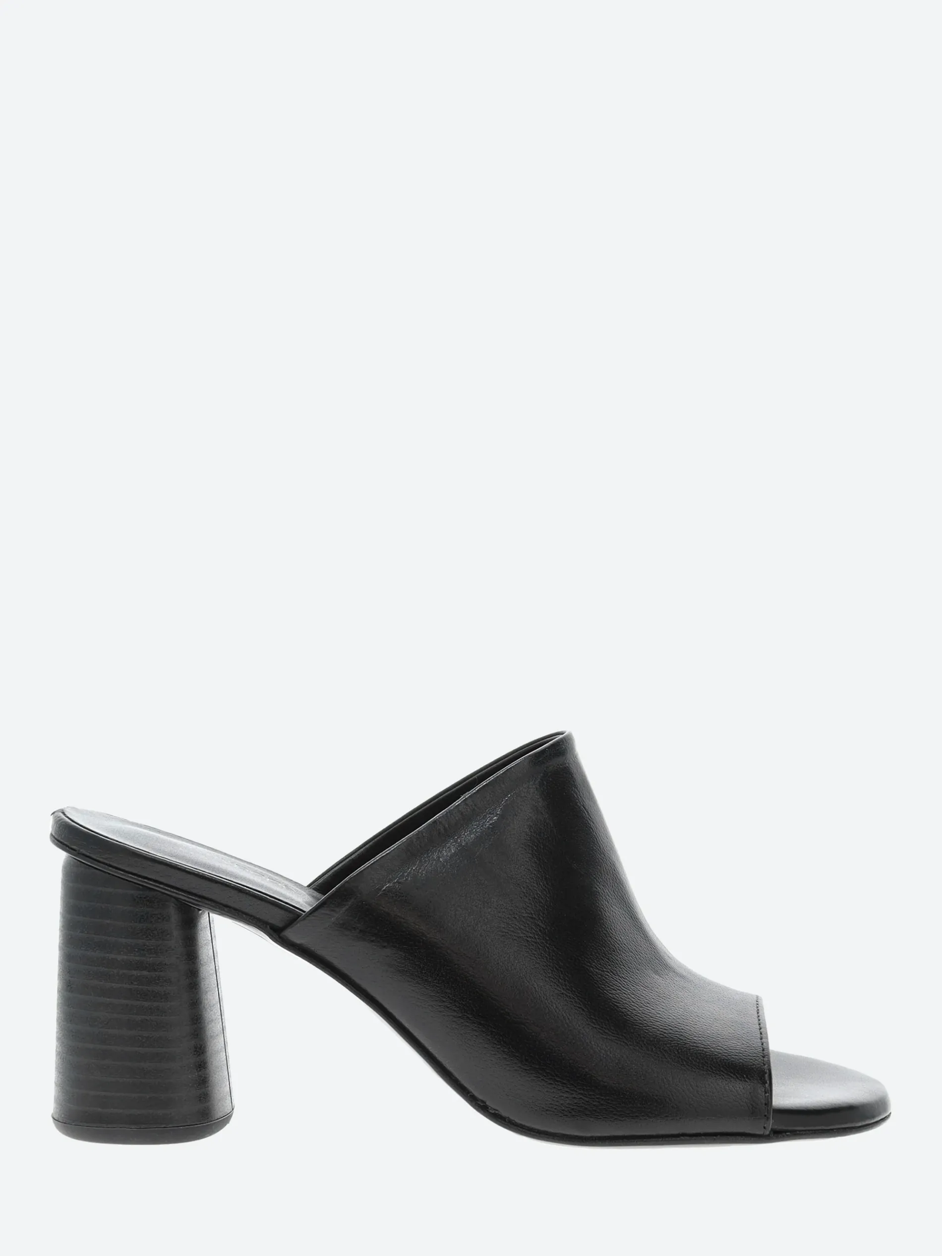 Simply styled, the gravitypope Reese mule sits on a cylindrical block heel.