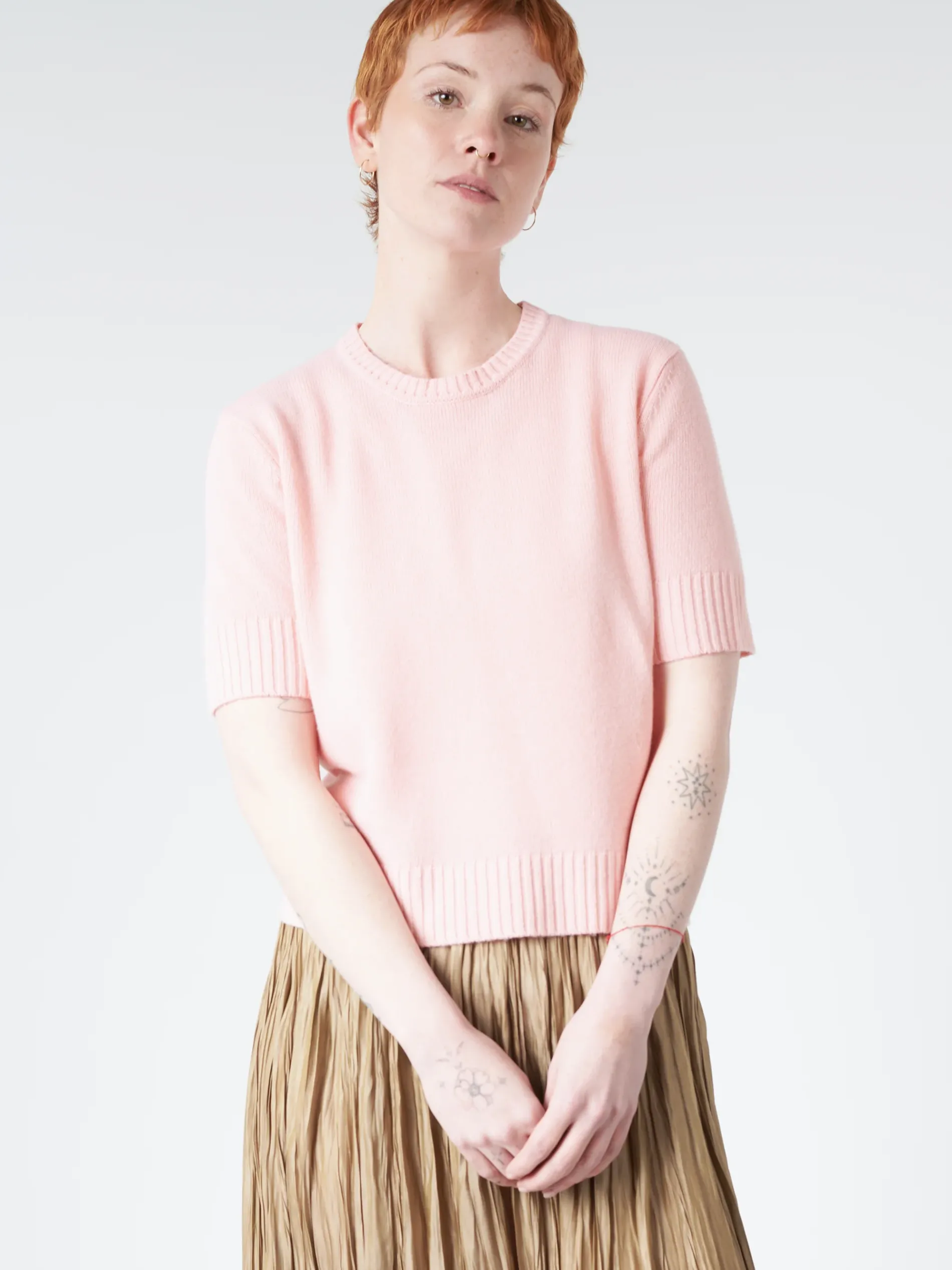 Classic crewneck t-shirt knit from a cashmere-wool blend for a luxuriously soft feel.