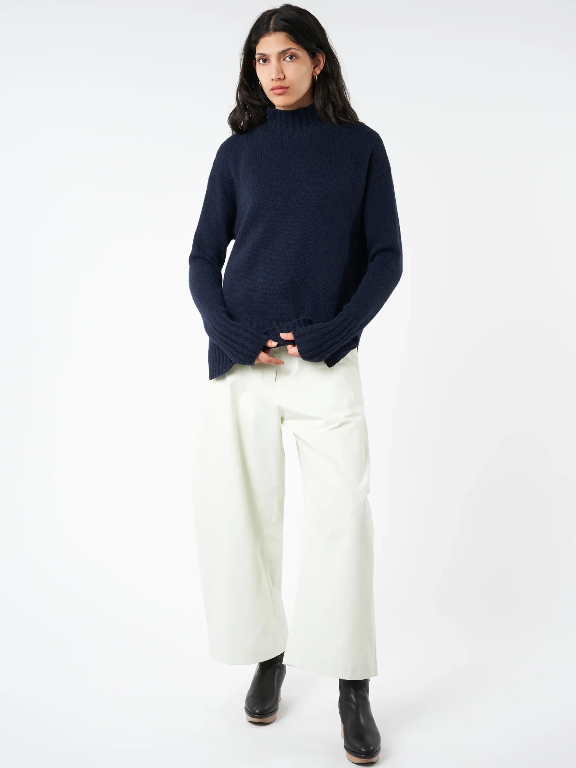 Roberto Collina ribbed panel mockneck sweater in a wool-camel hair blend.