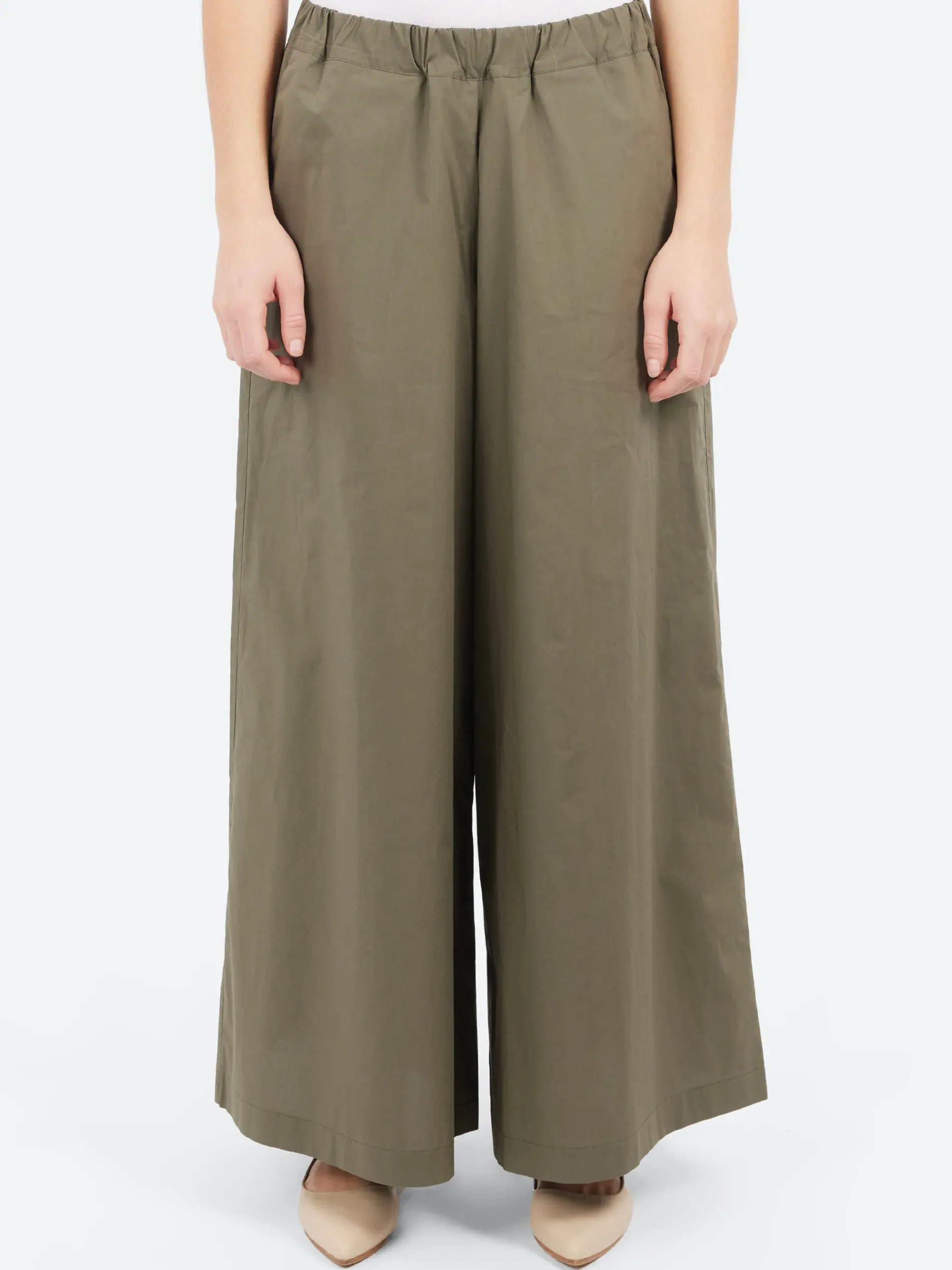 Wide trousers made of pure poplin cotton, characterized by a curled elastic waistband, cropped cut and handy side pockets. A must-have for the hot season, blending style and comfort. Use it to create everyday looks with a basic t-shirt or a lightweight relaxed-fit cardigan.