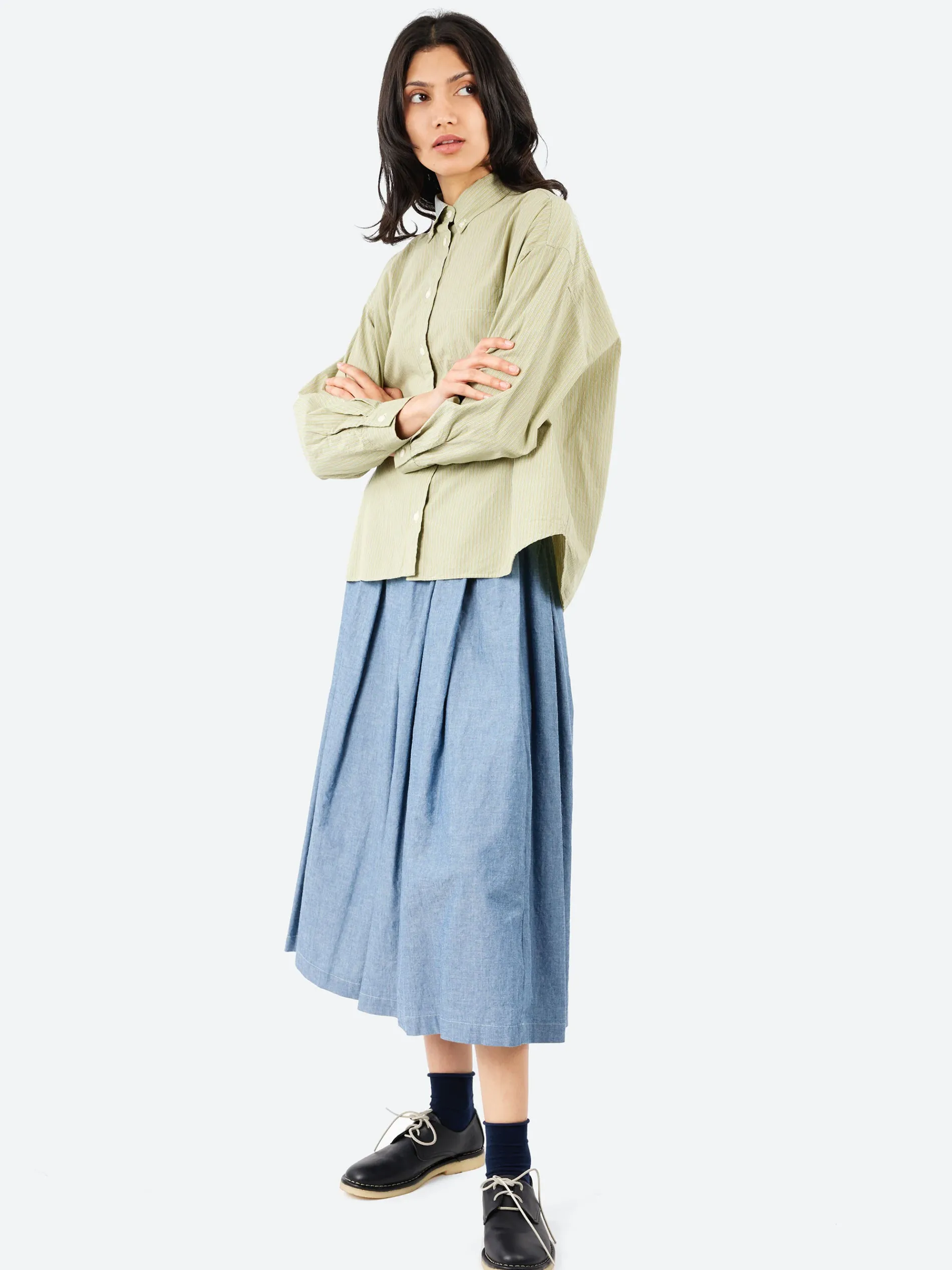 The Sarahwear Kelly Skirt is a soft pleated skirt featuring an elastic waist for a comfortable fit and a flattering feminine silhouette. Made from 100% cotton chambray fabric, it is light, breathable and durable, offering both comfort and lasting quality.