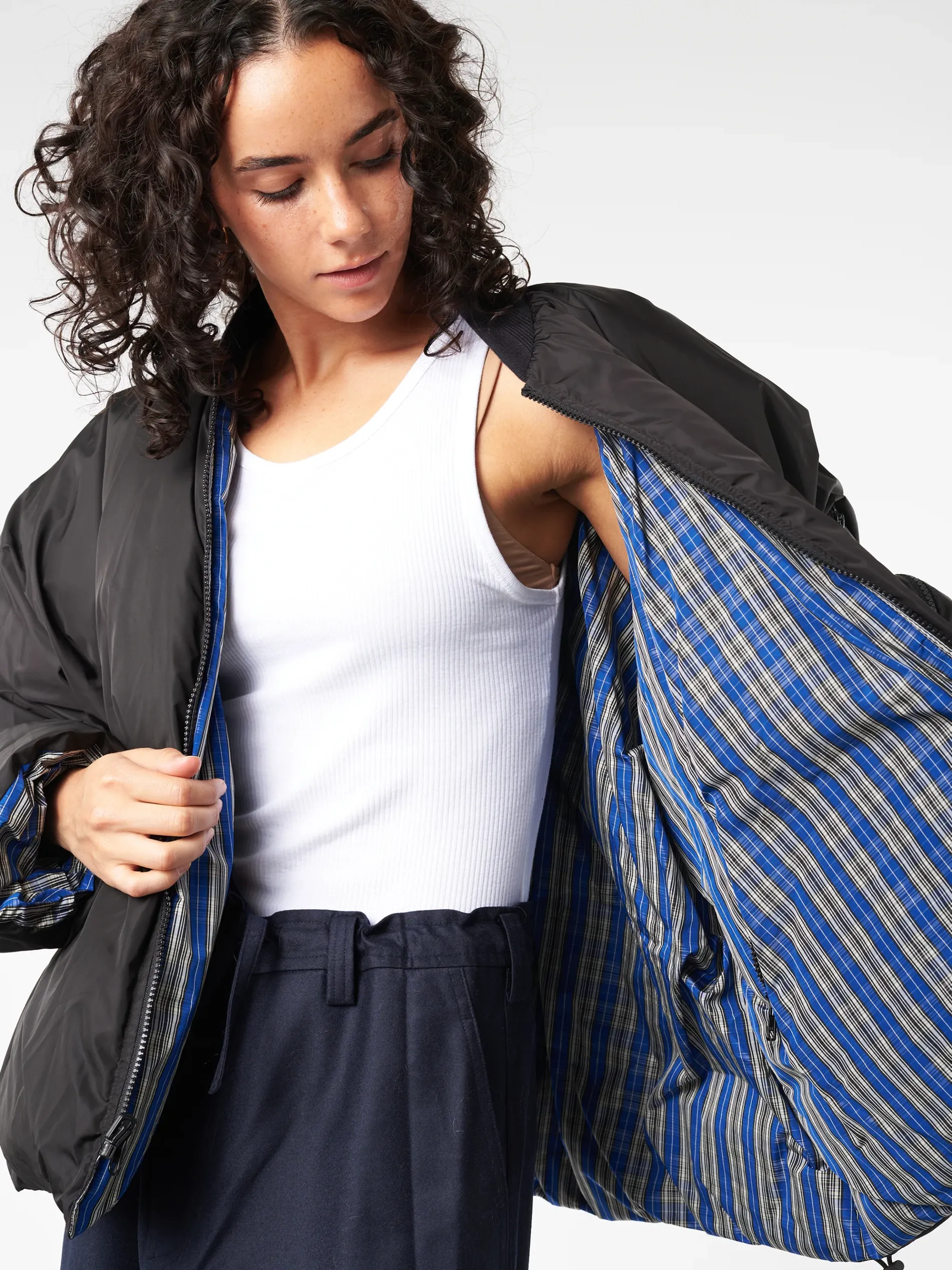 Sofie D’Hoore reversible bomber jacket with a ribbed knit collar in polyester with down fill for comfort and warmth.