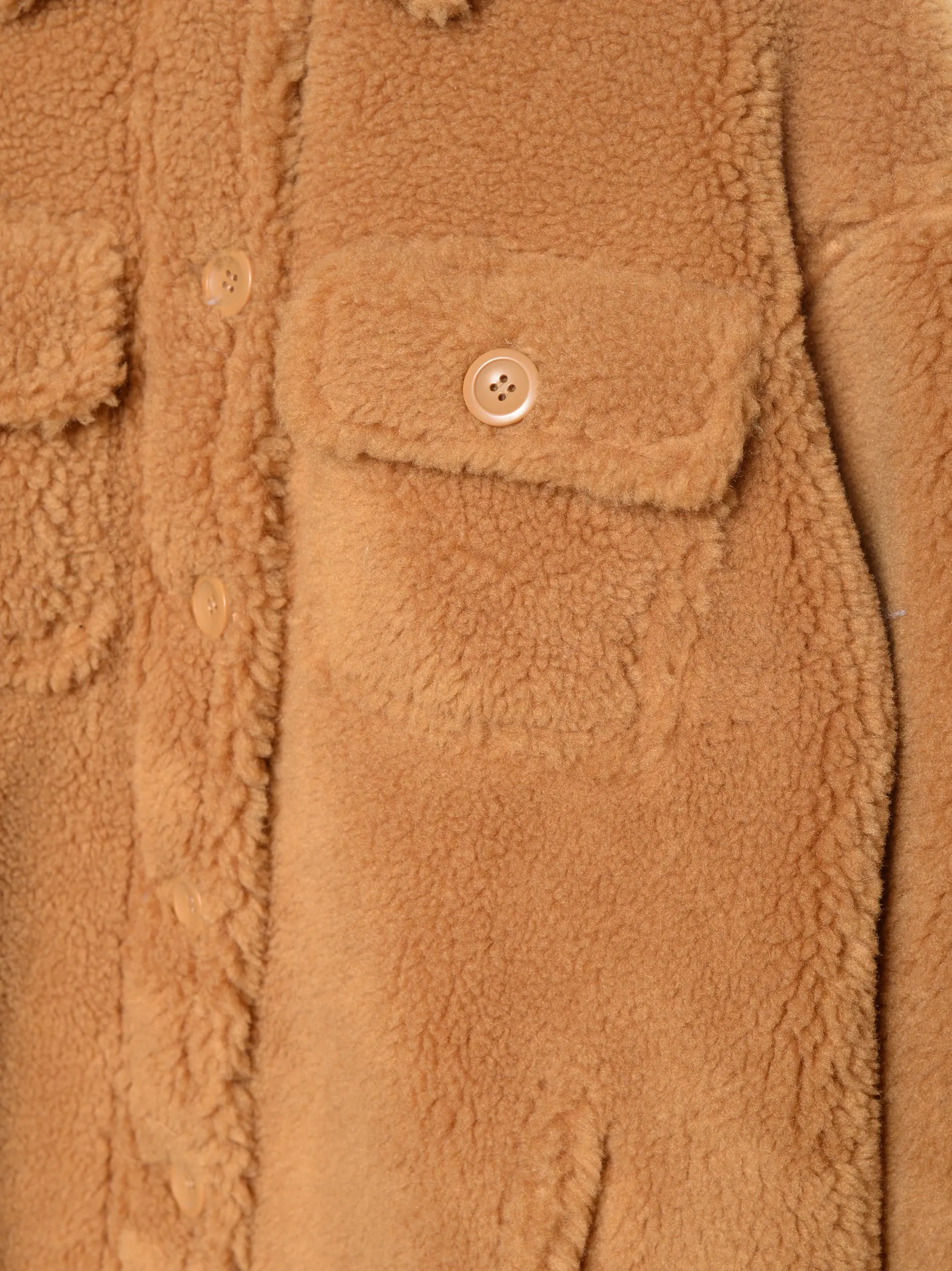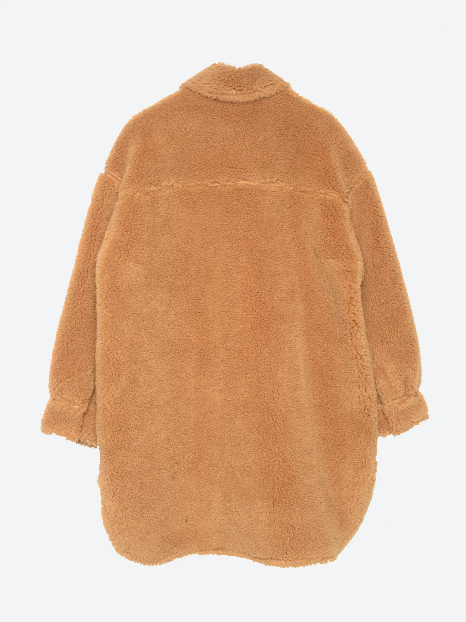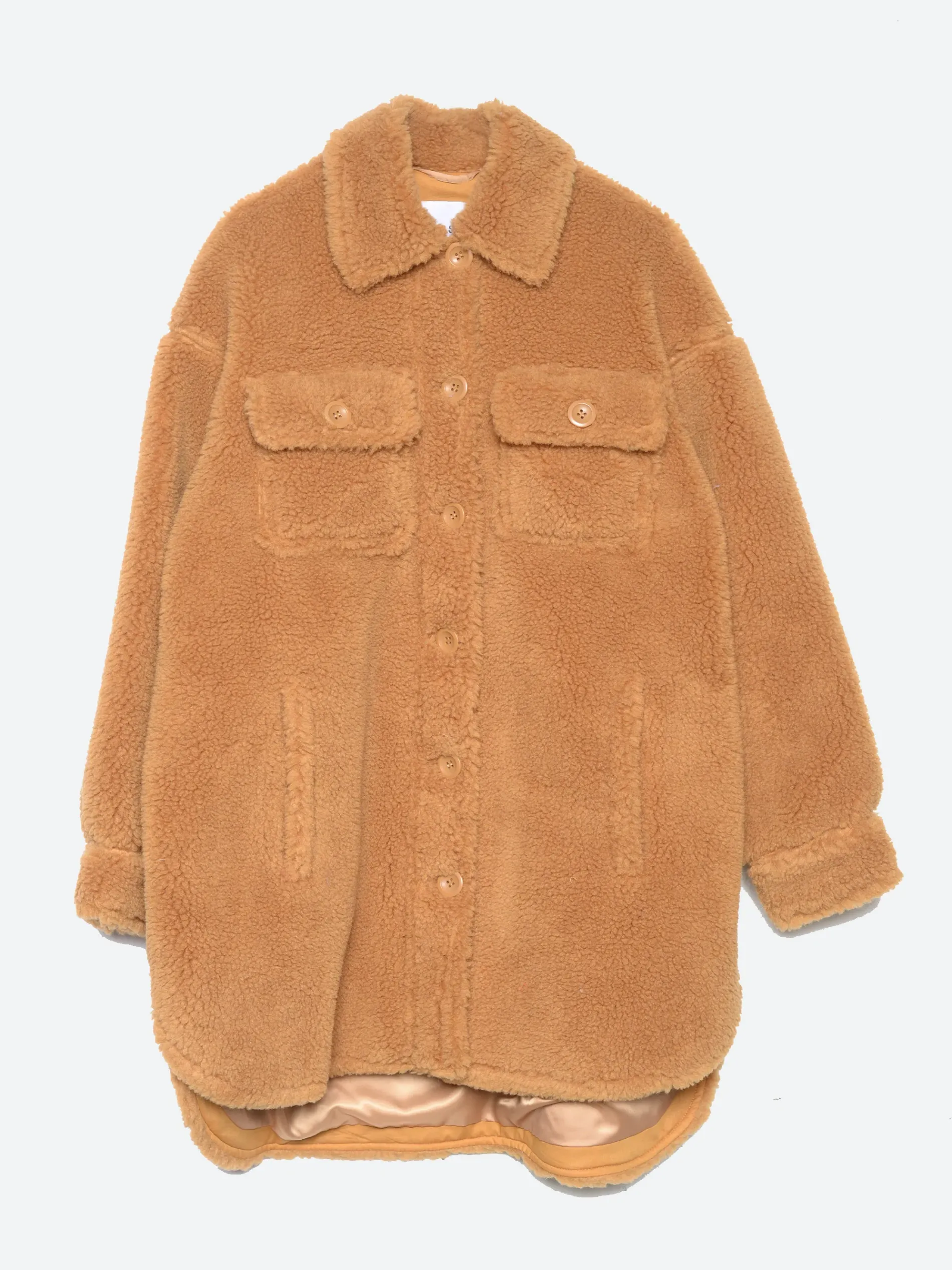 Sabi is an oversized shirt-style jacket crafted from warming wool-blend faux fur. It’s designed with a point collar, breast pockets and front button fastenings. The perfect outer layer for a Sunday stroll.