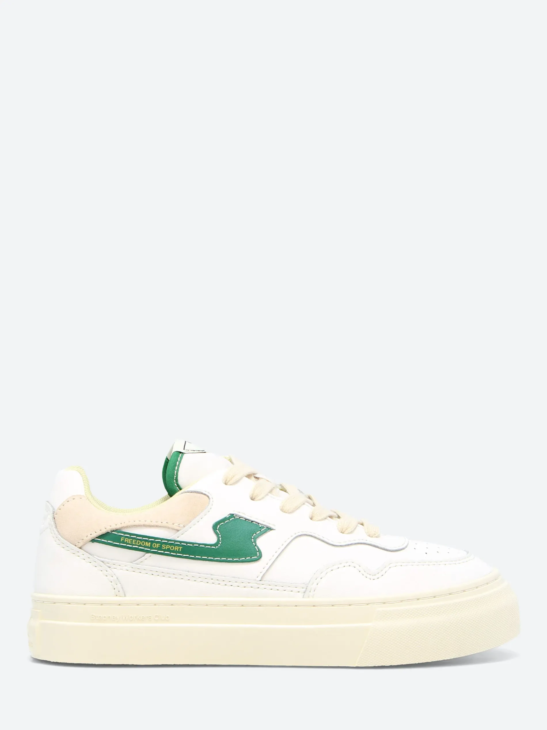 The Pearl silhouette is Stepney Workers Club’s first cupsole construction inspired by court sports sneakers. It features their iconic high-wall foxings with a sidewall stitch which provides added strength.