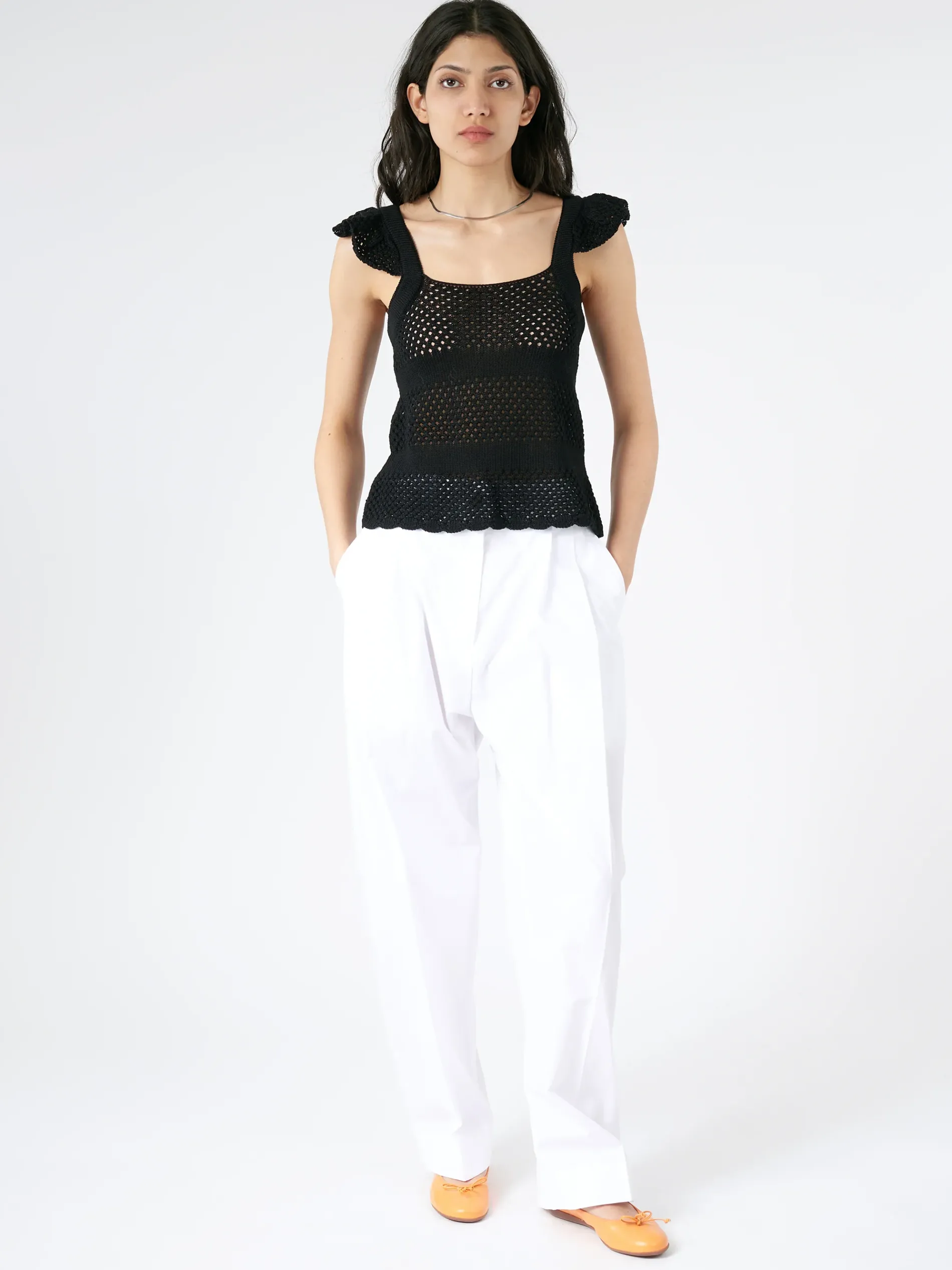 The Acuna pant from Studio Nicholson, crafted in a crisp powder cotton, combines a high rise with voluminous double pleats and a wide, flowing leg.
