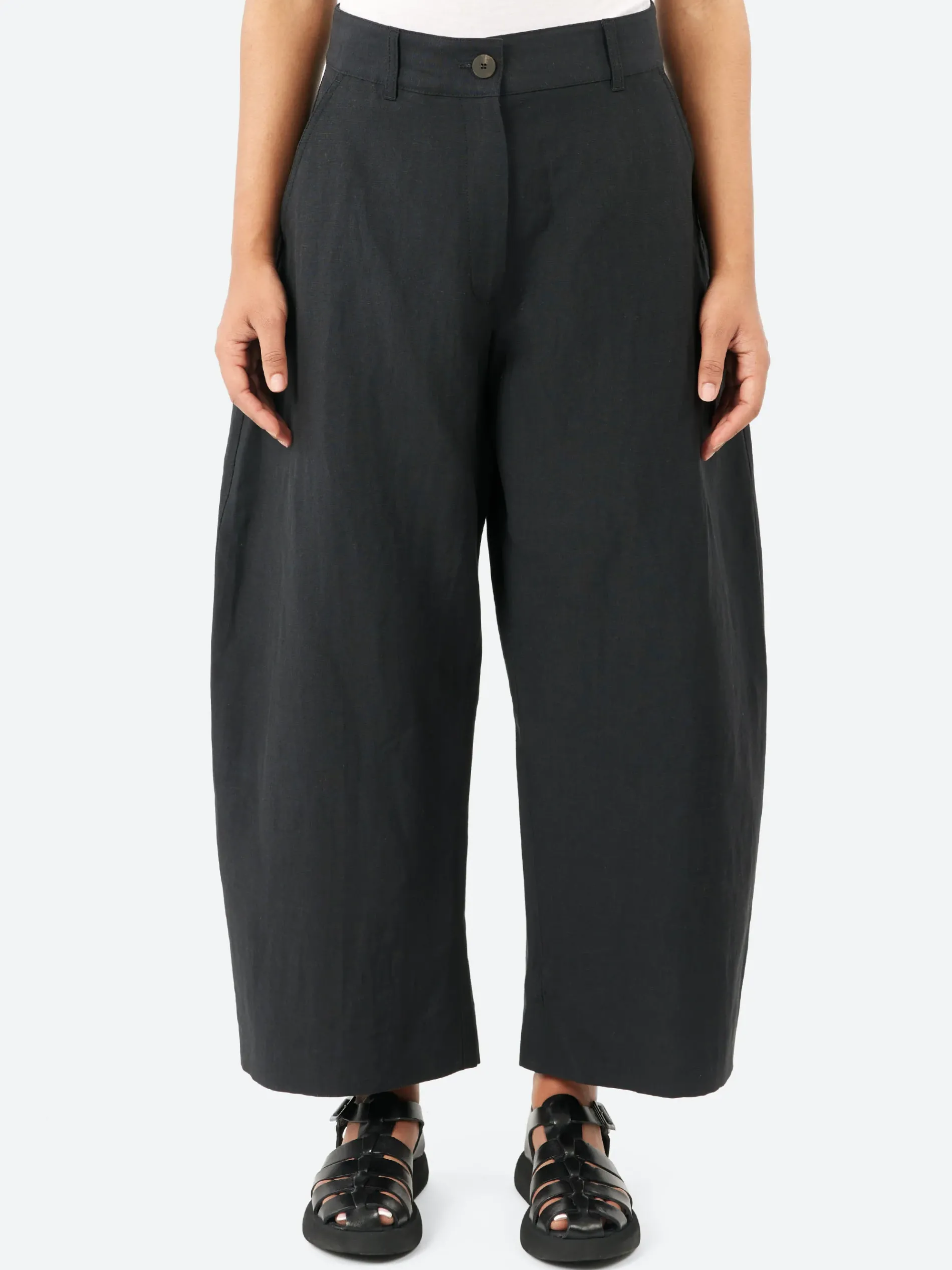 A true Studio Nicholson staple from season to season, the Chalco pants are cut wide and cropped, with a curved leg and dropped crotch. Constructed from a linen and wool blend that’s woven with slubbed yarns for a subtle tactility.