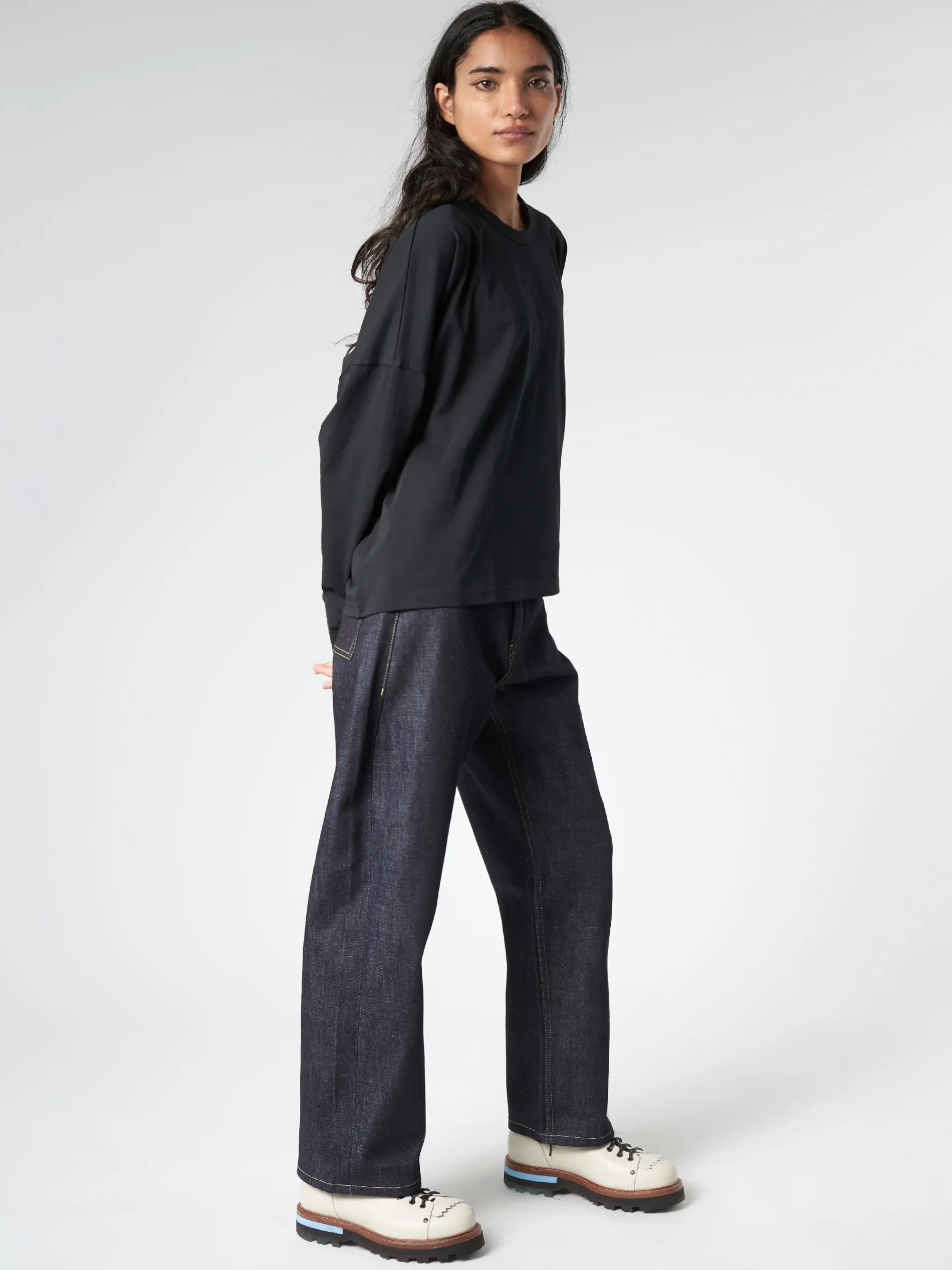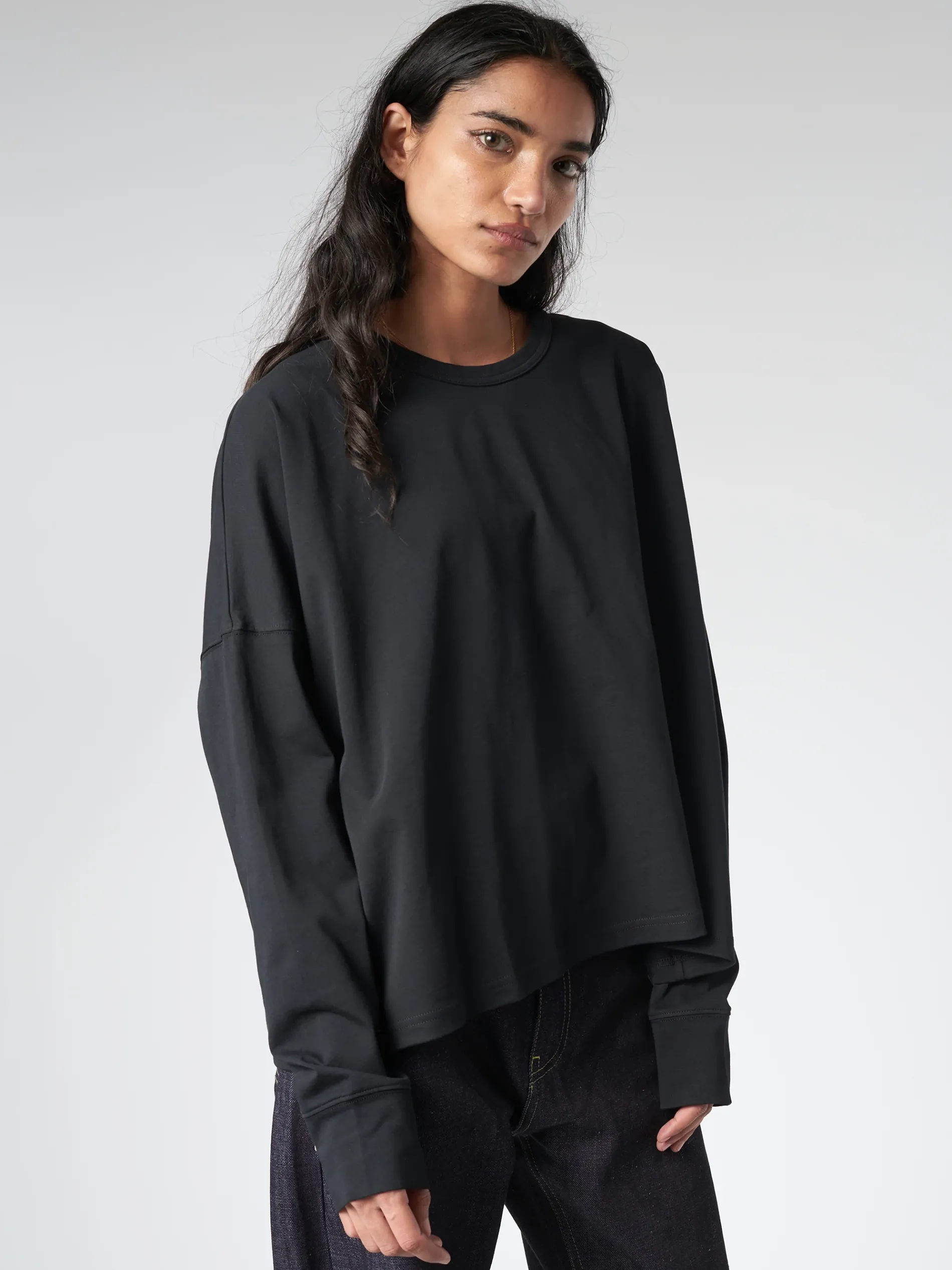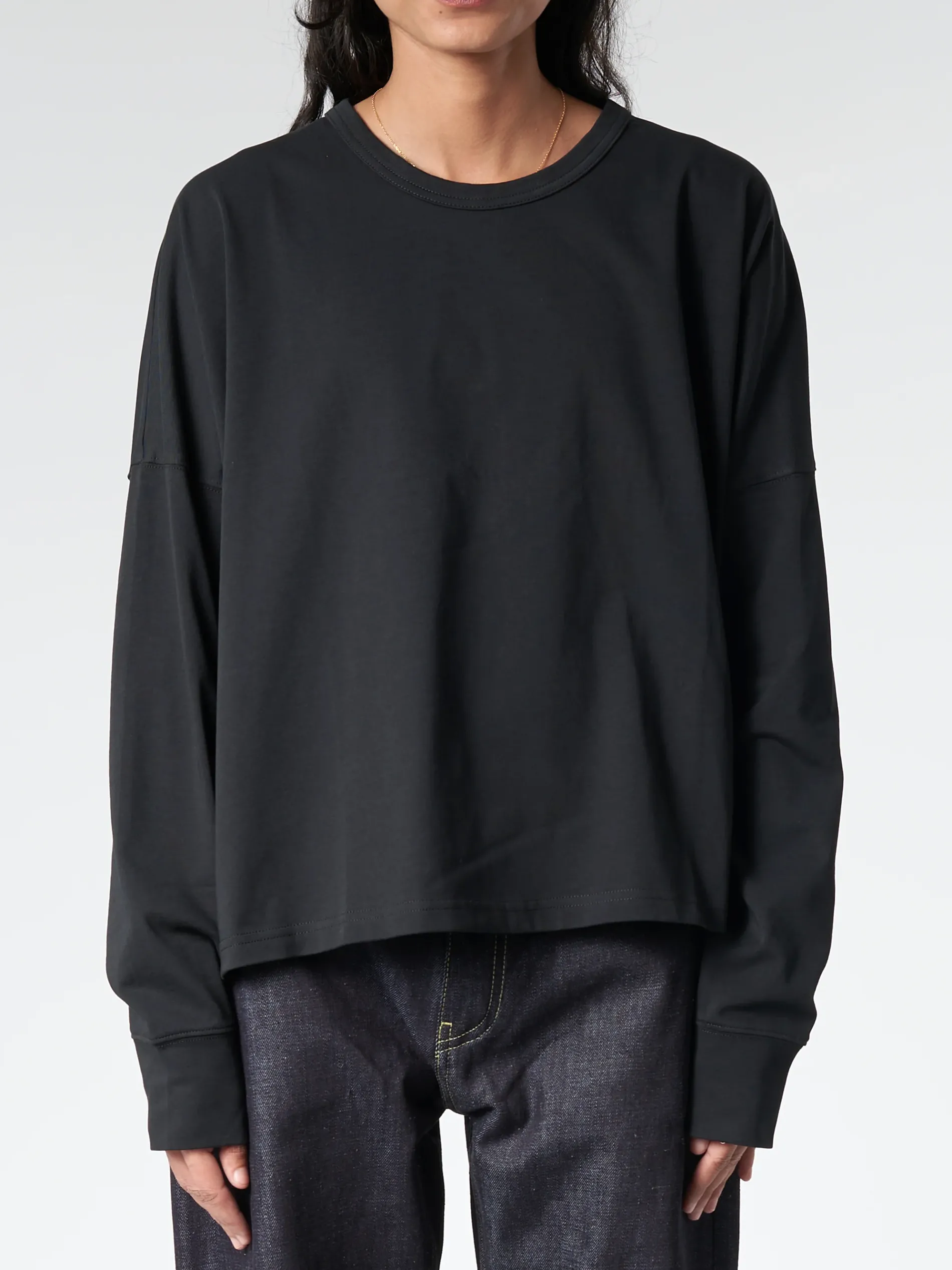 Studio Nicholson boxy long sleeve t-shirt made from a mercerized cotton featuring a screen-printed branded logo at the nape.