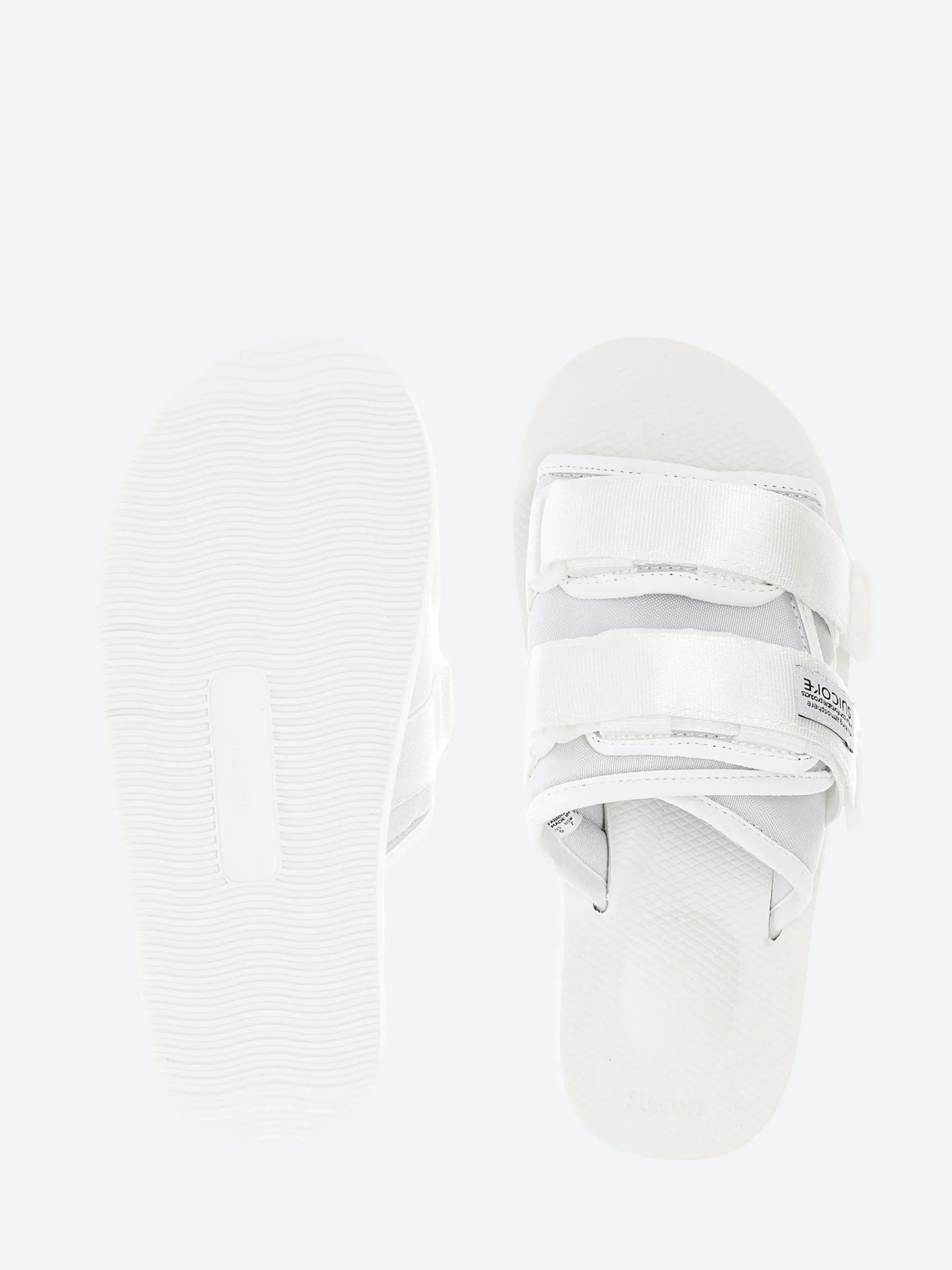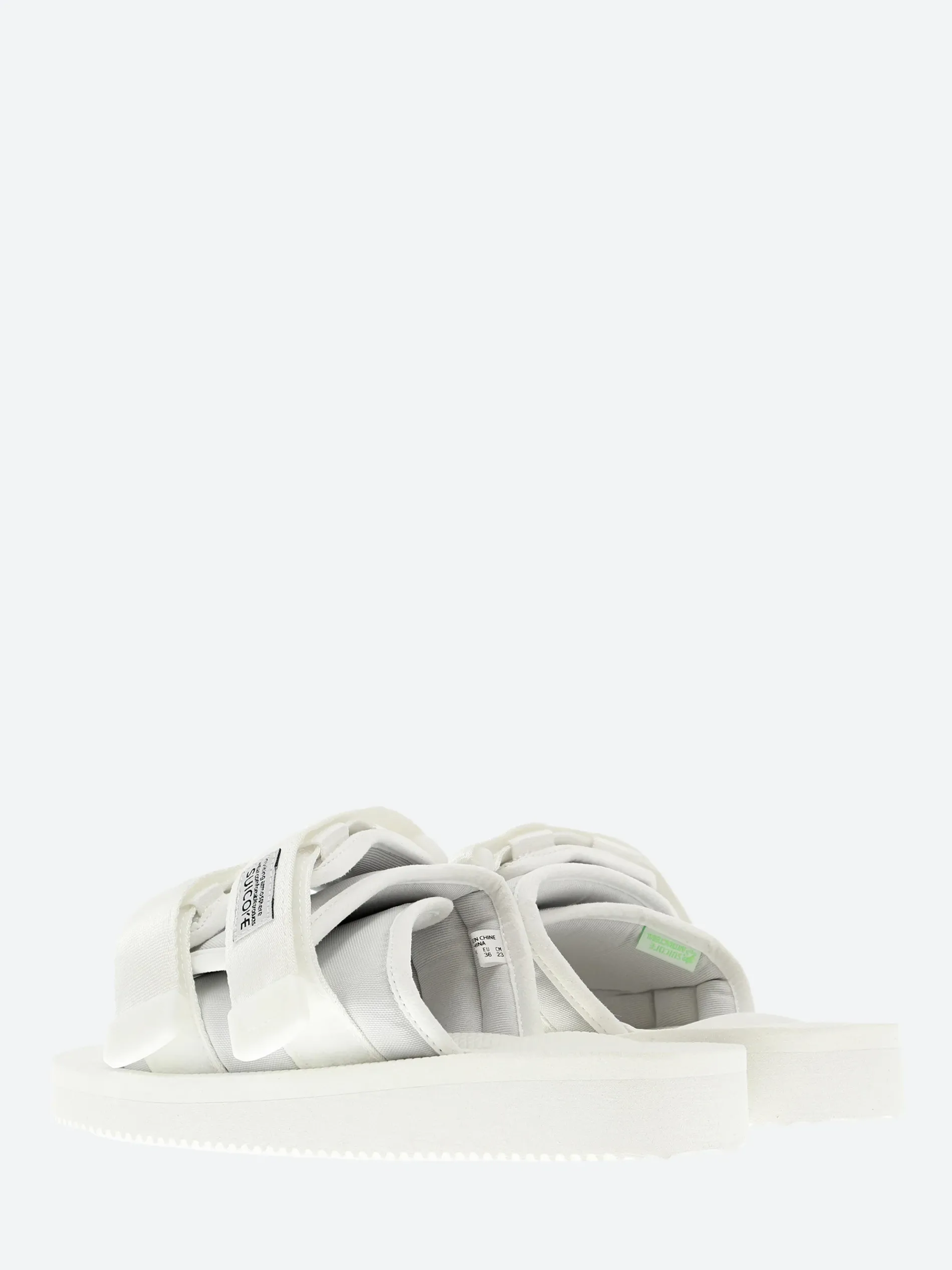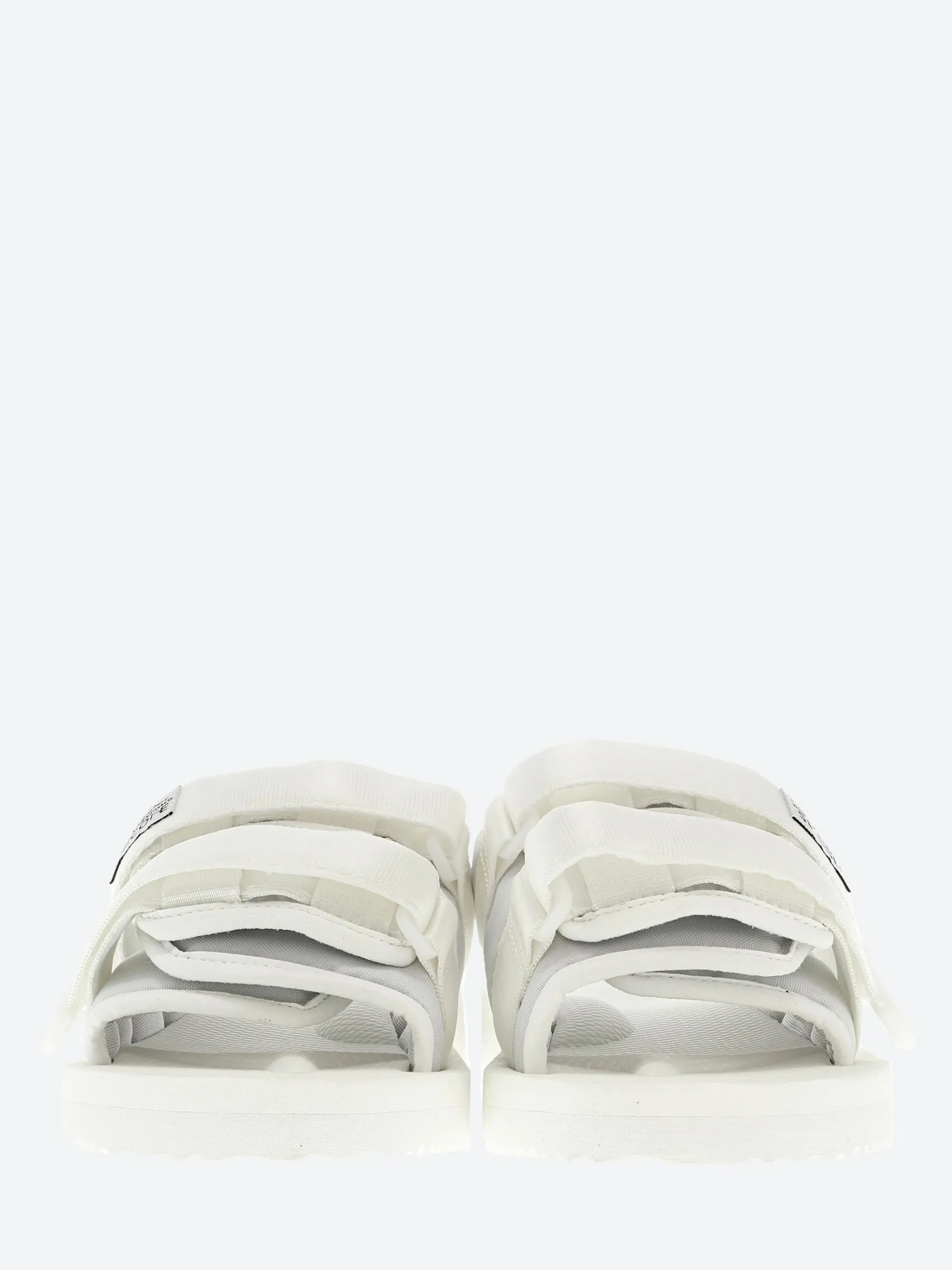 Suicoke MOTO-Cab sandals built with nylon uppers and Velcro adjustable straps. This practical pair sits on a durable Vibram Morflex sole.