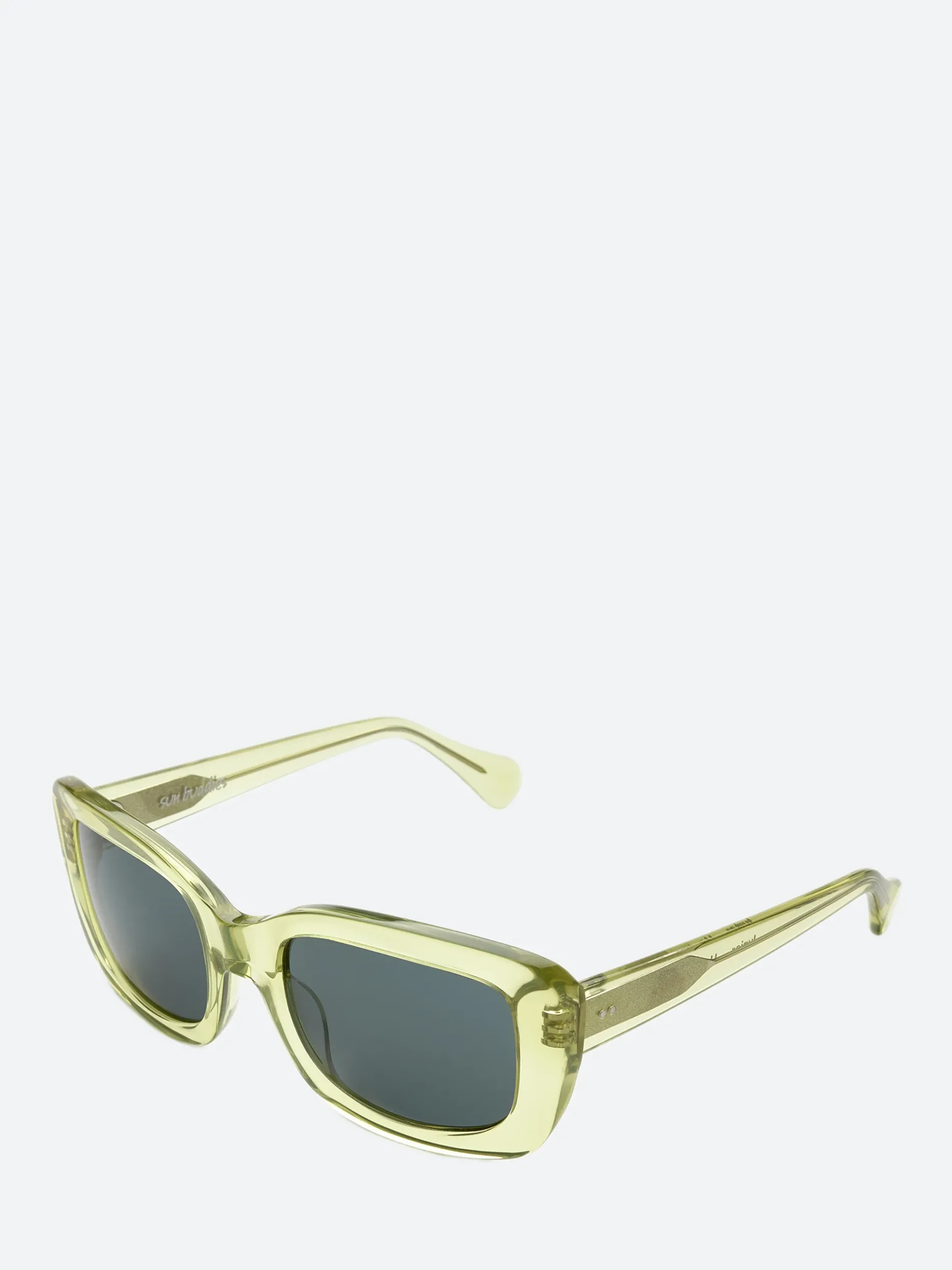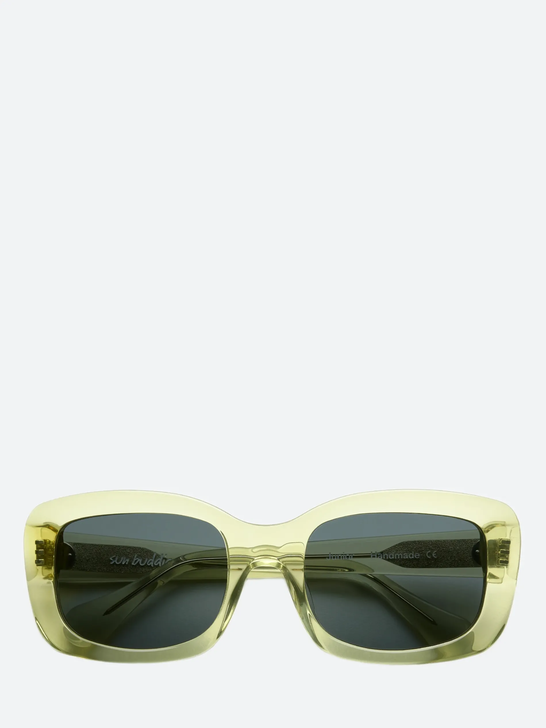 Transparent 70’s inspired square shaped frame in a brown town, handmade of Italian acetate.