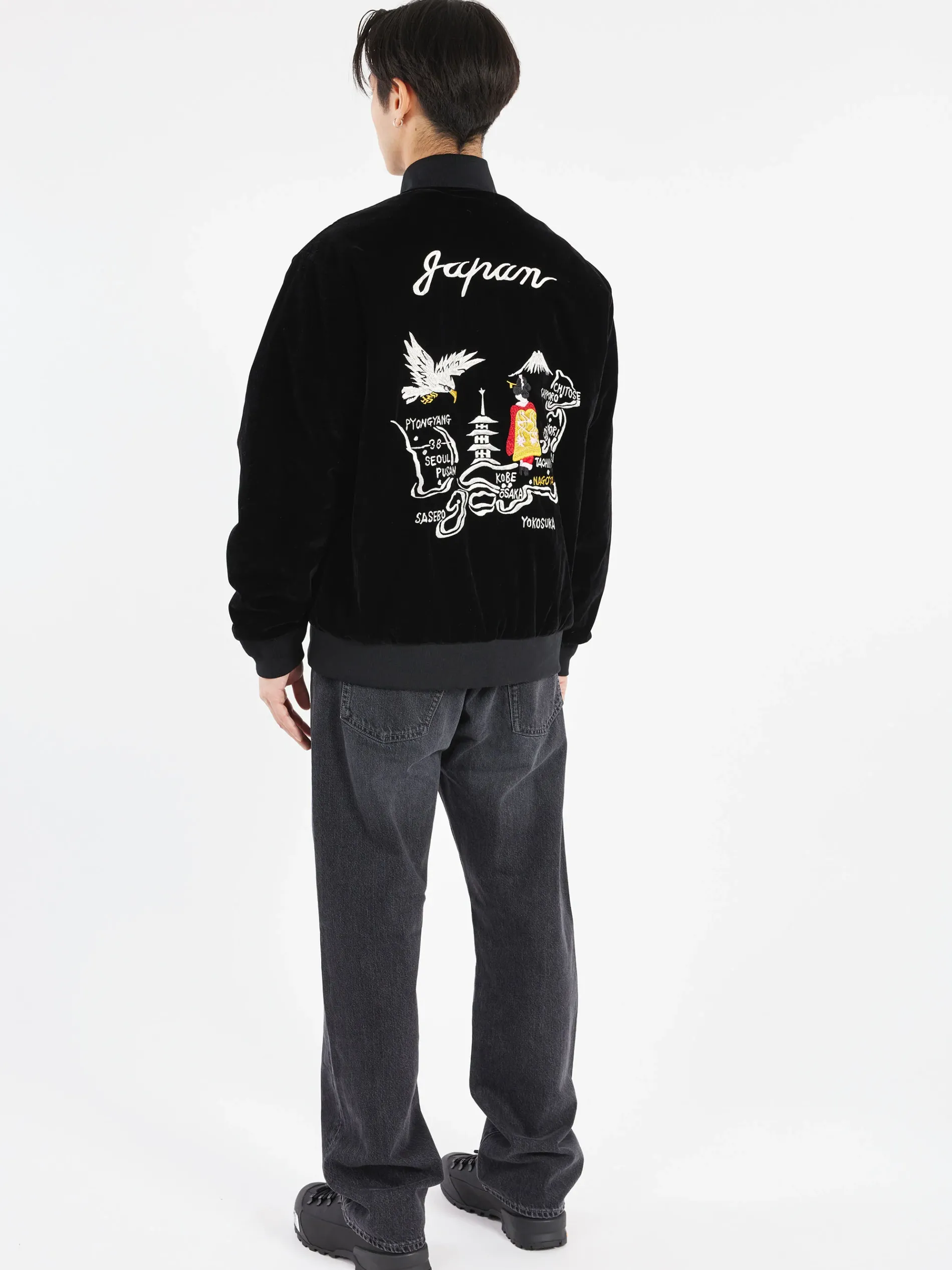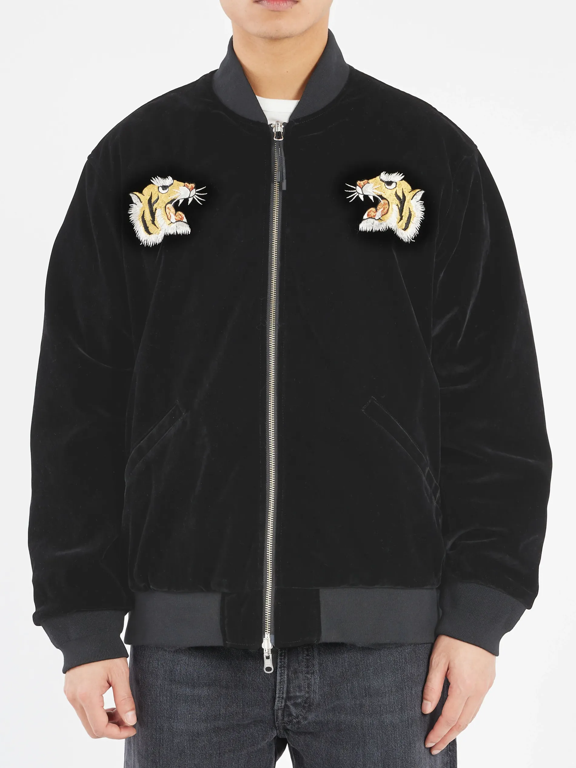 TAION reversible bomber jacket with sukajan embroidery on the front and diamond quilted down on the reverse.
