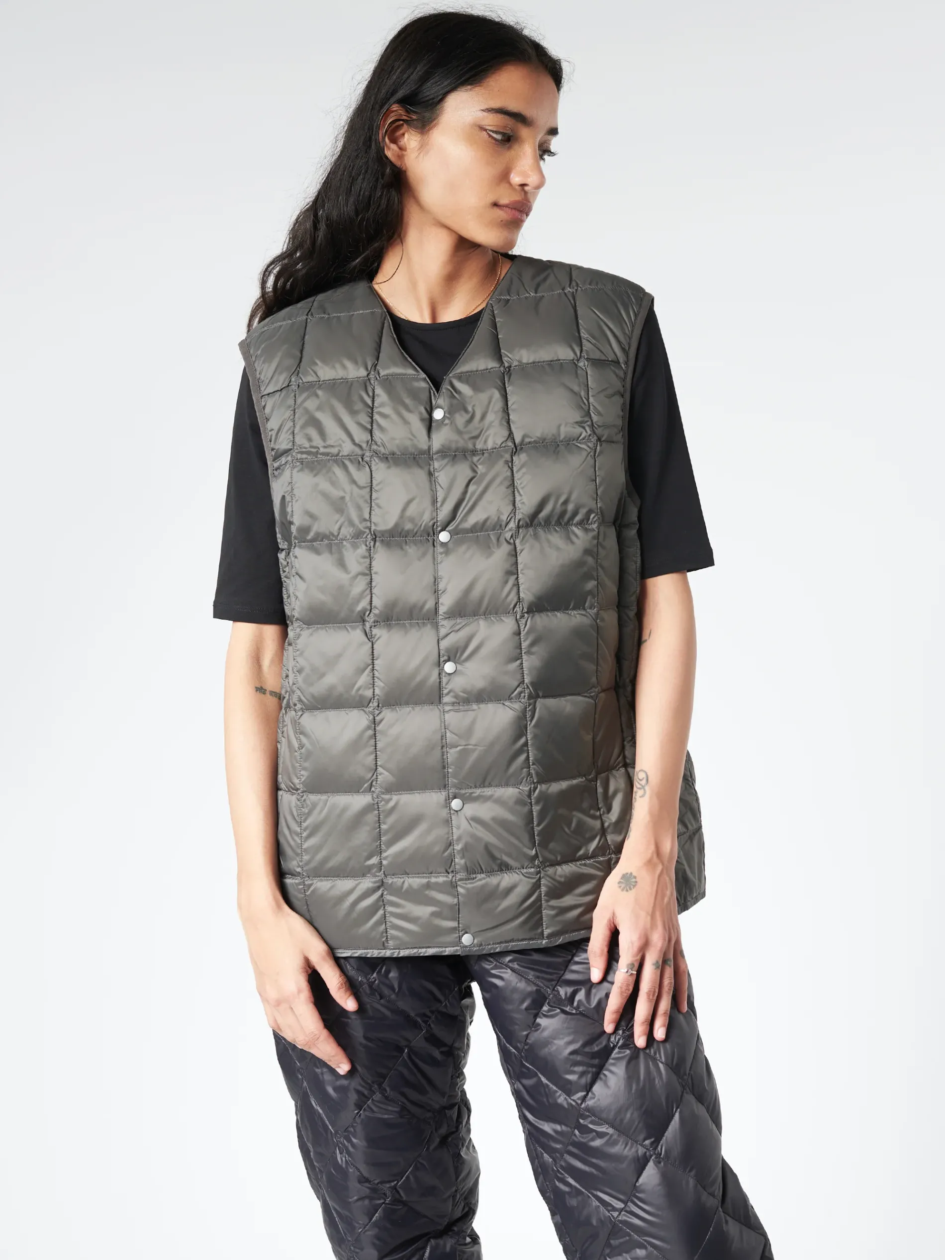 TAION’s classic inner down vest features a light, warm and easy-to-wear V-neck design that can be worn under jackets and coats, as well as on t-shirts, shirts and hoodies.