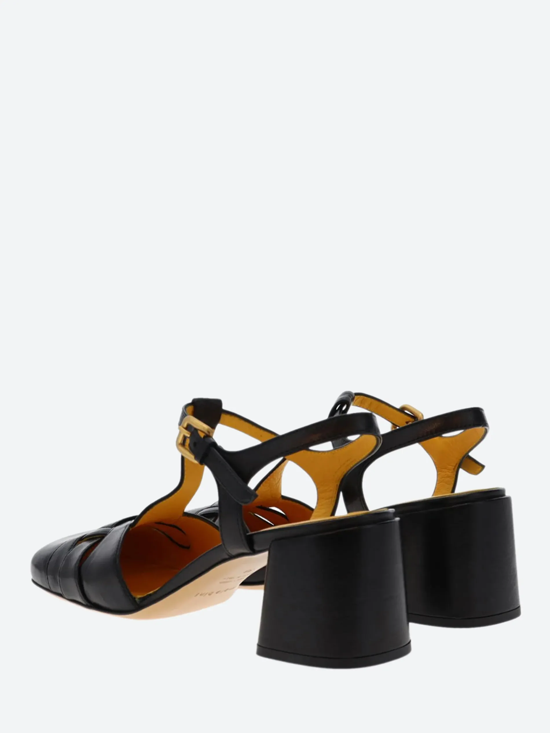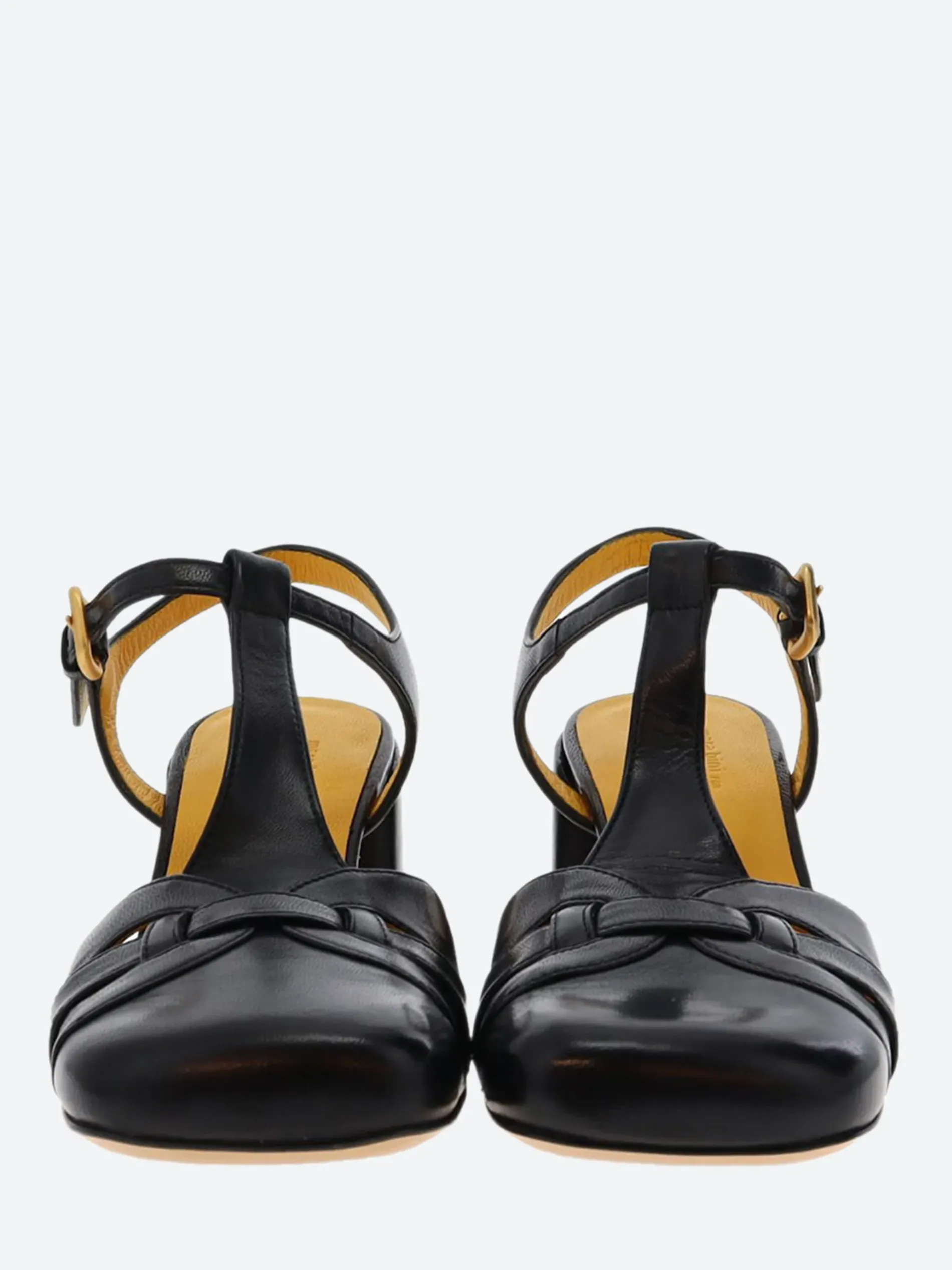 Mara Bini T-strap sandal is minimally designed with an on-trend square toe.