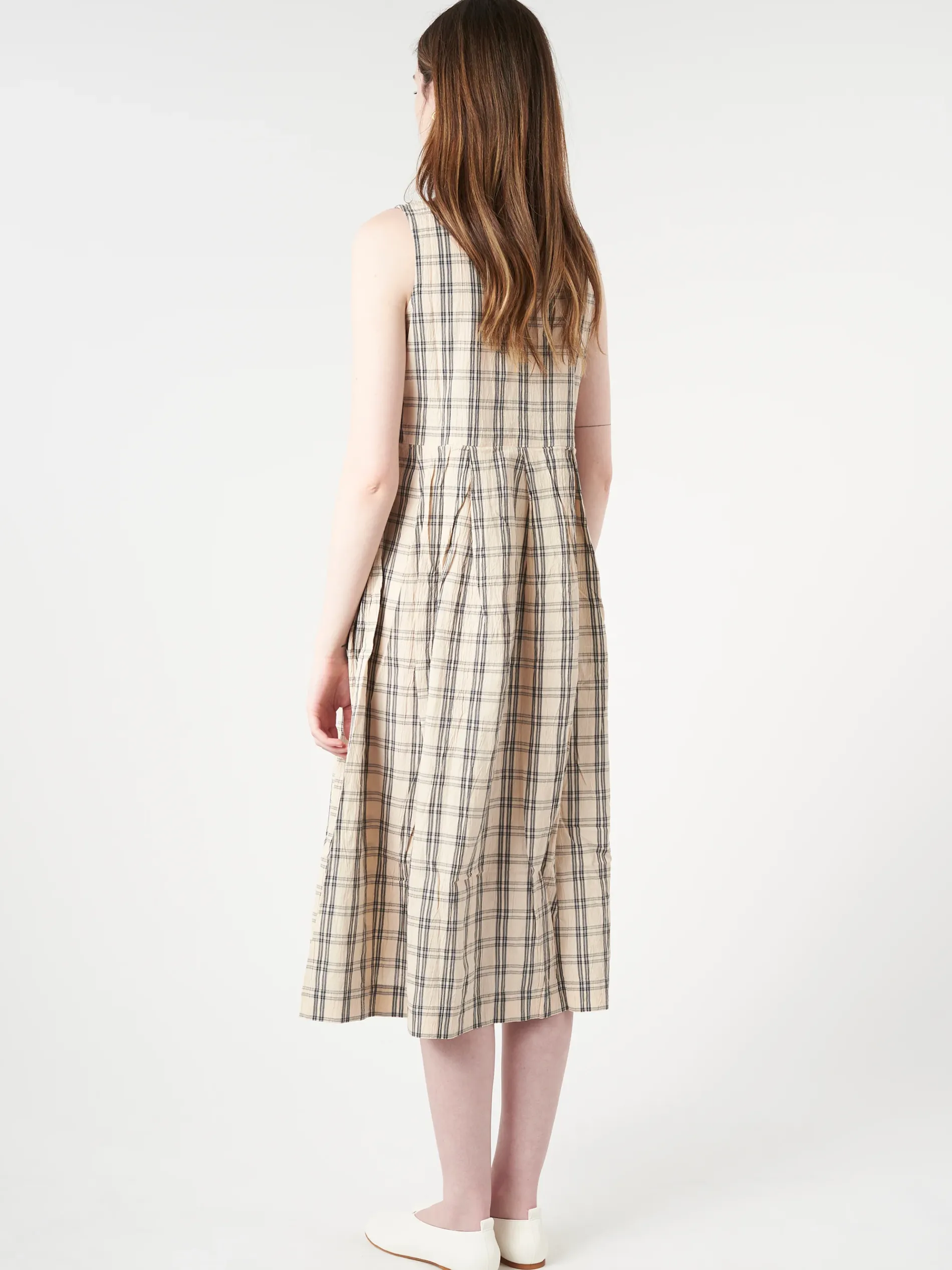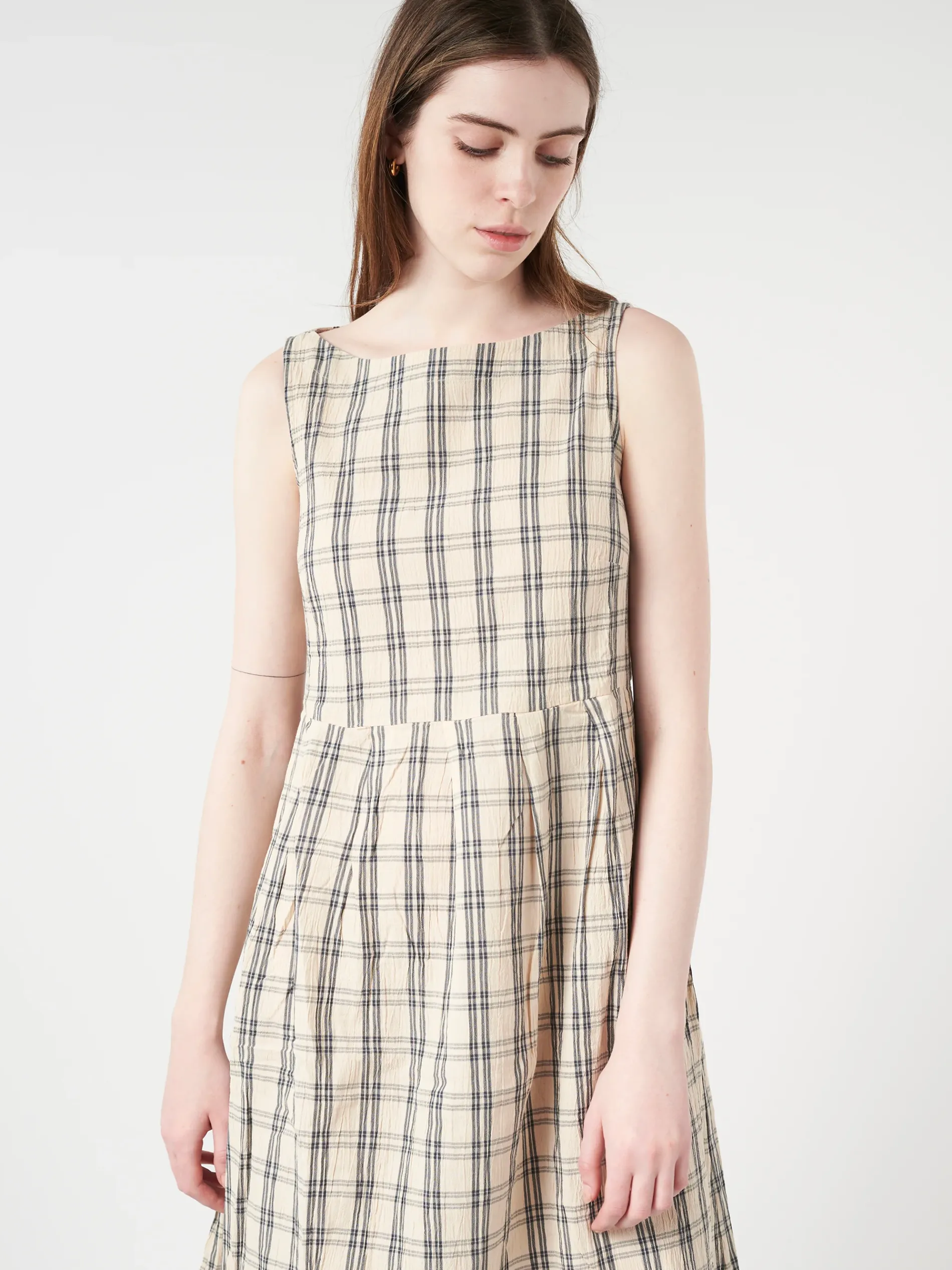 Crinkled Iku checked cotton complements the easy design of this TOAST dress. A pleated waist creates a swingy, effortless shape.