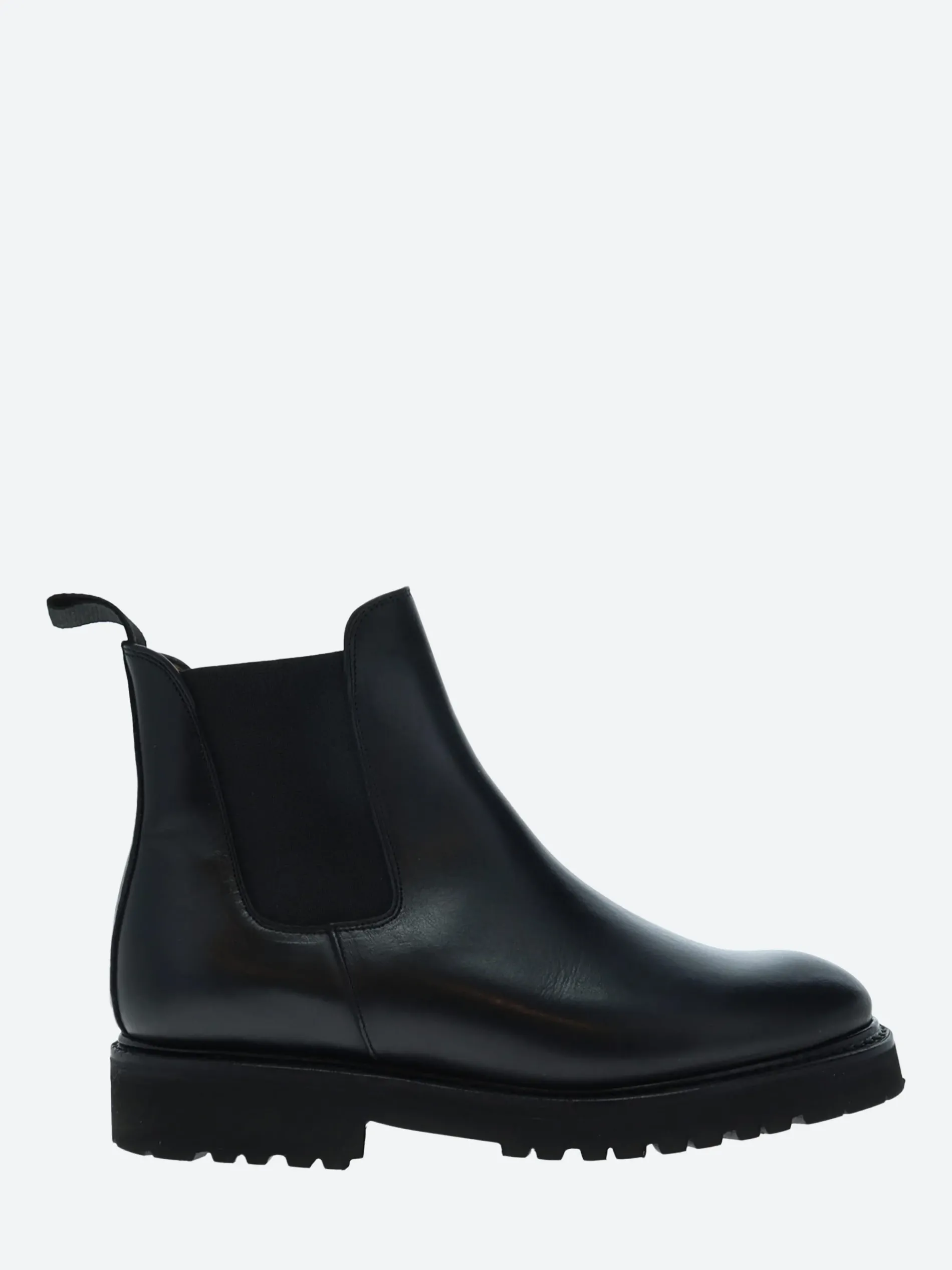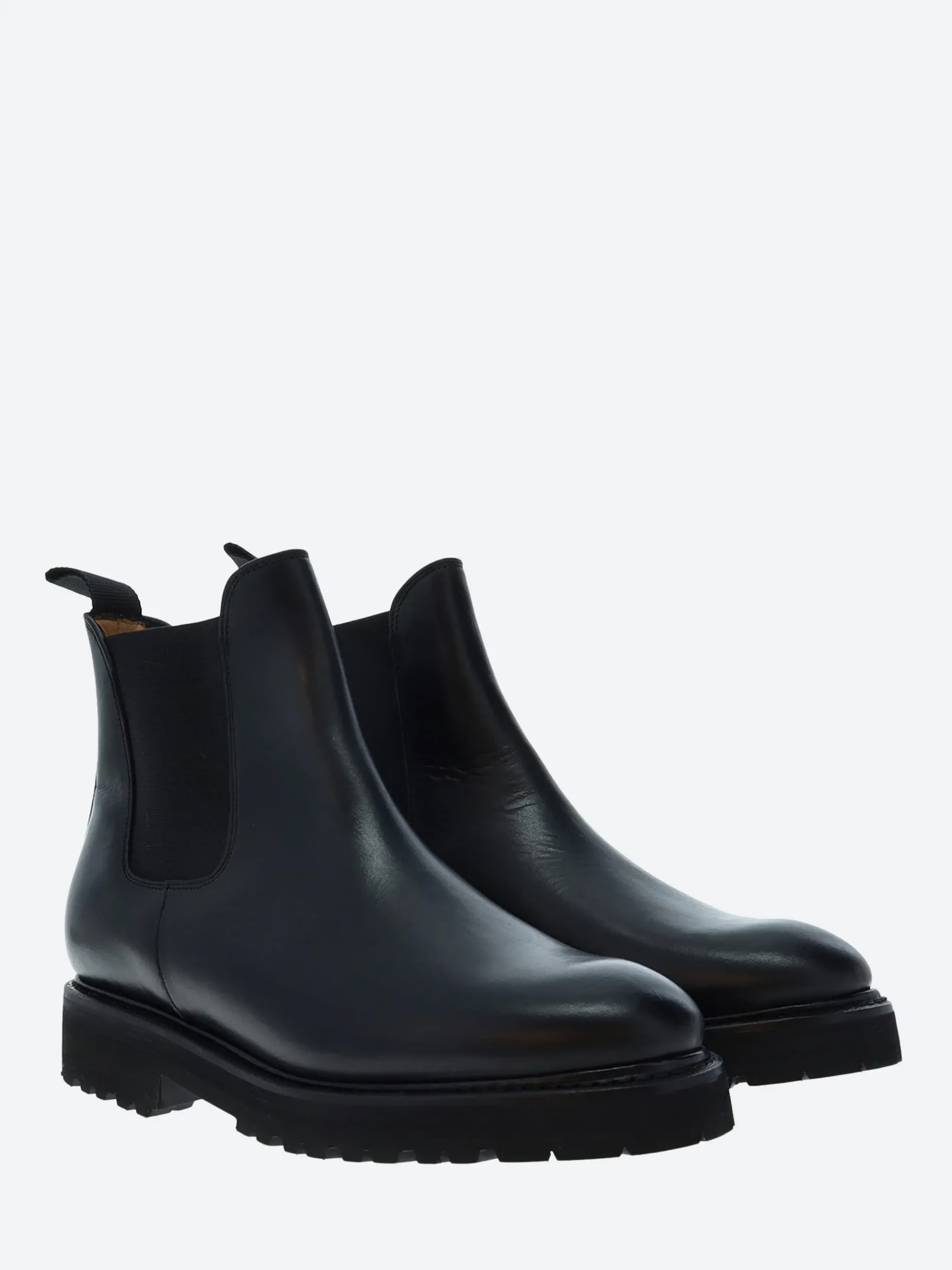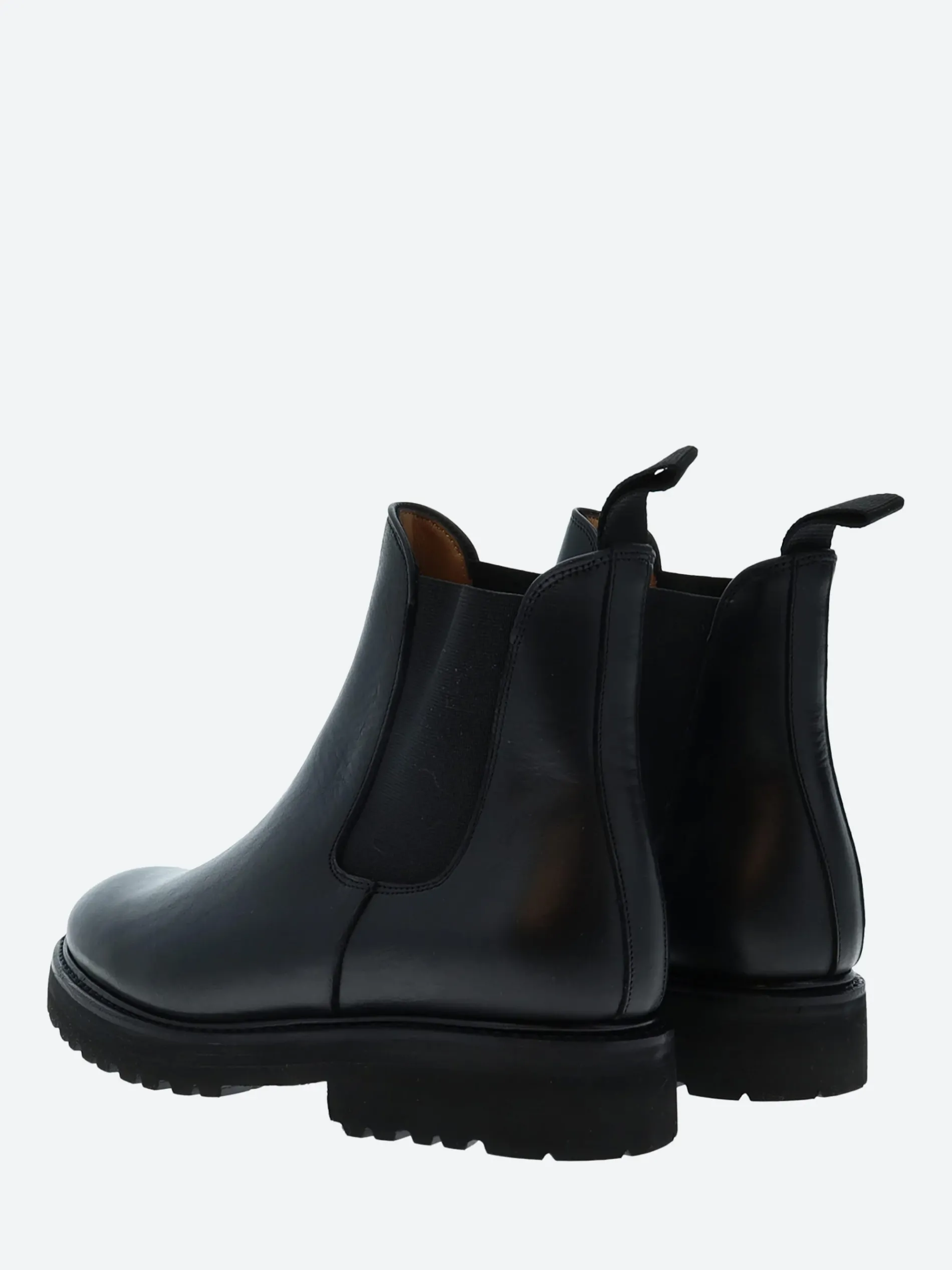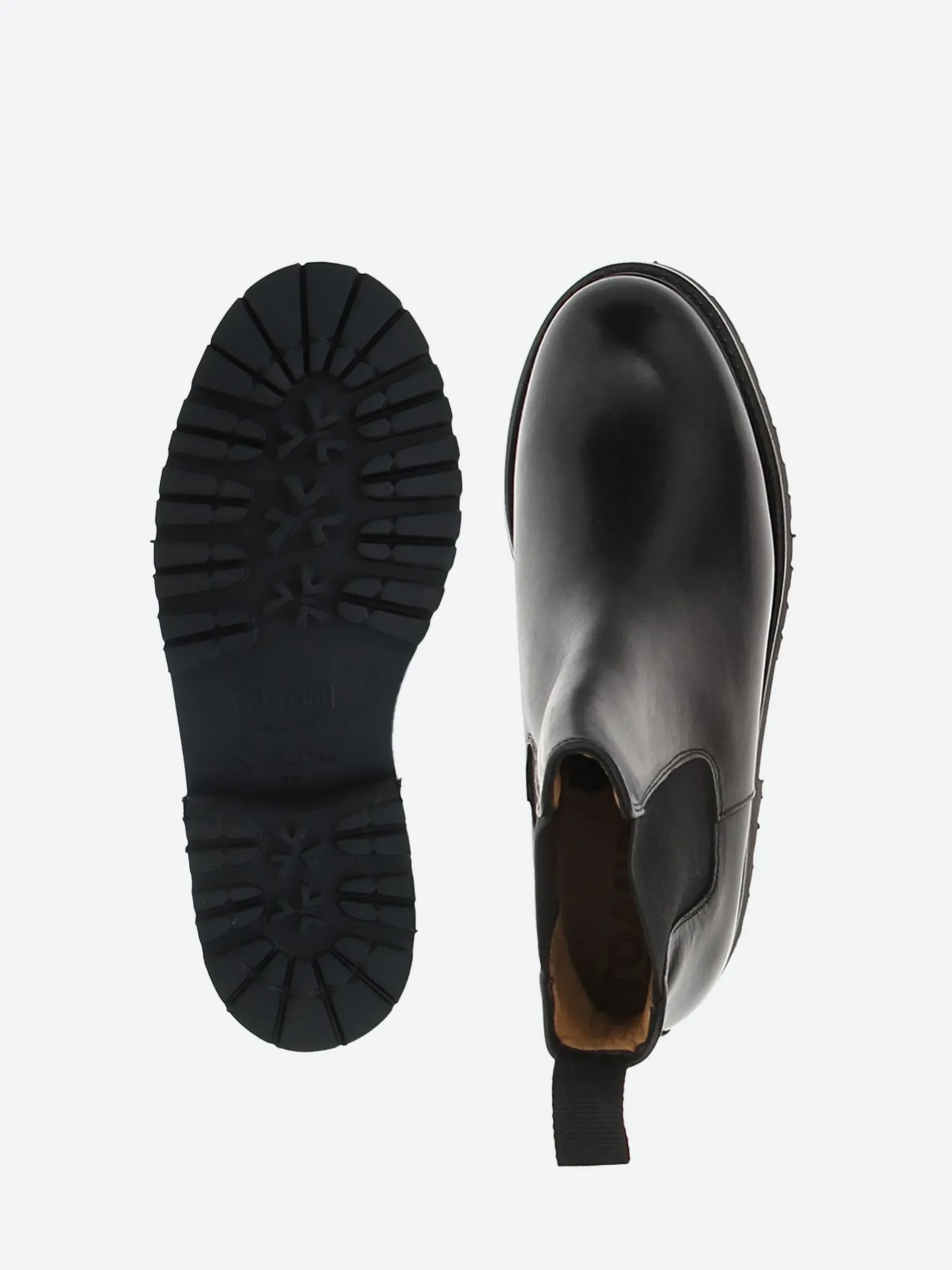 Chelsea boot has a Vibram commando rubber sole for a rugged look.