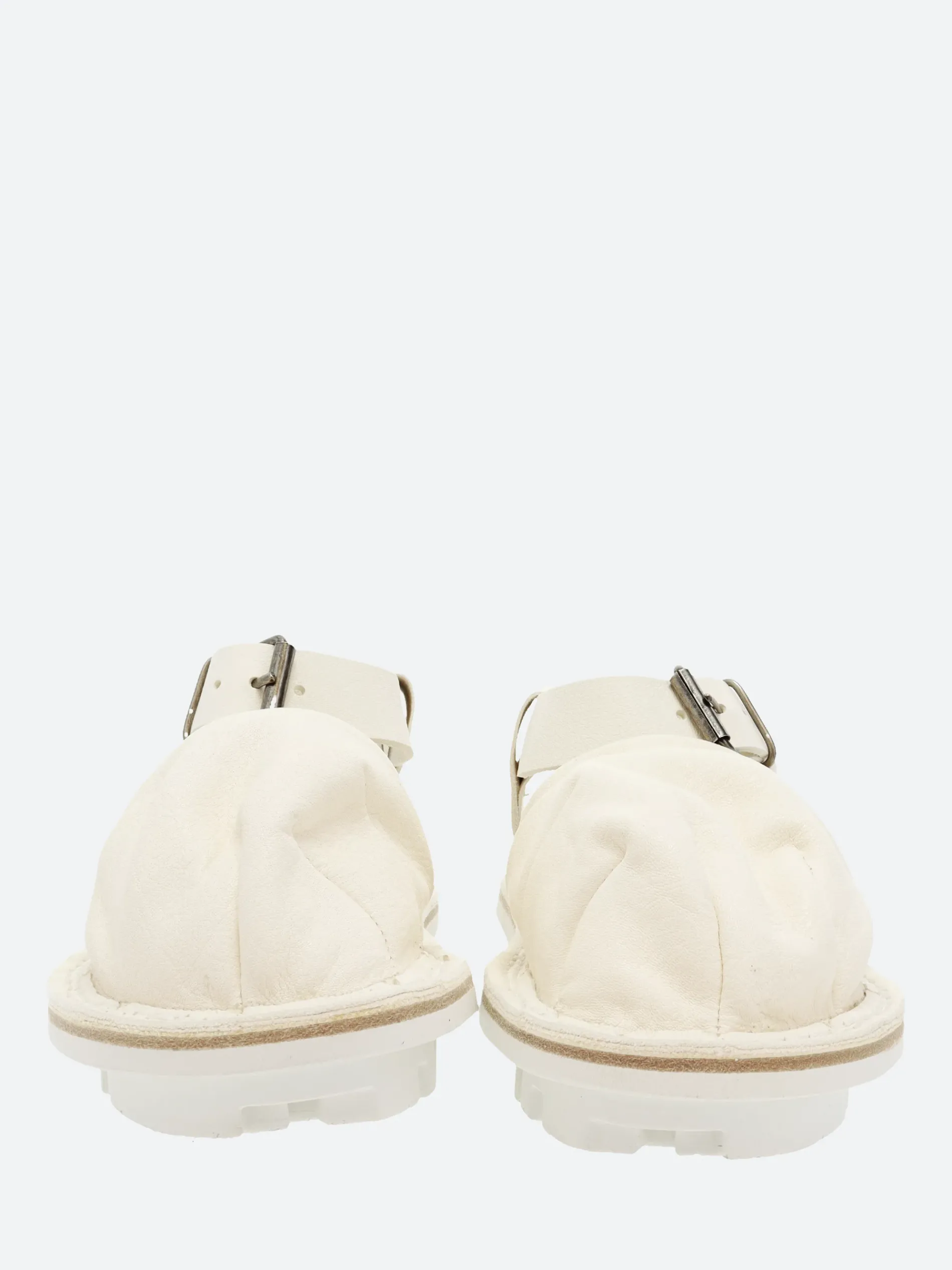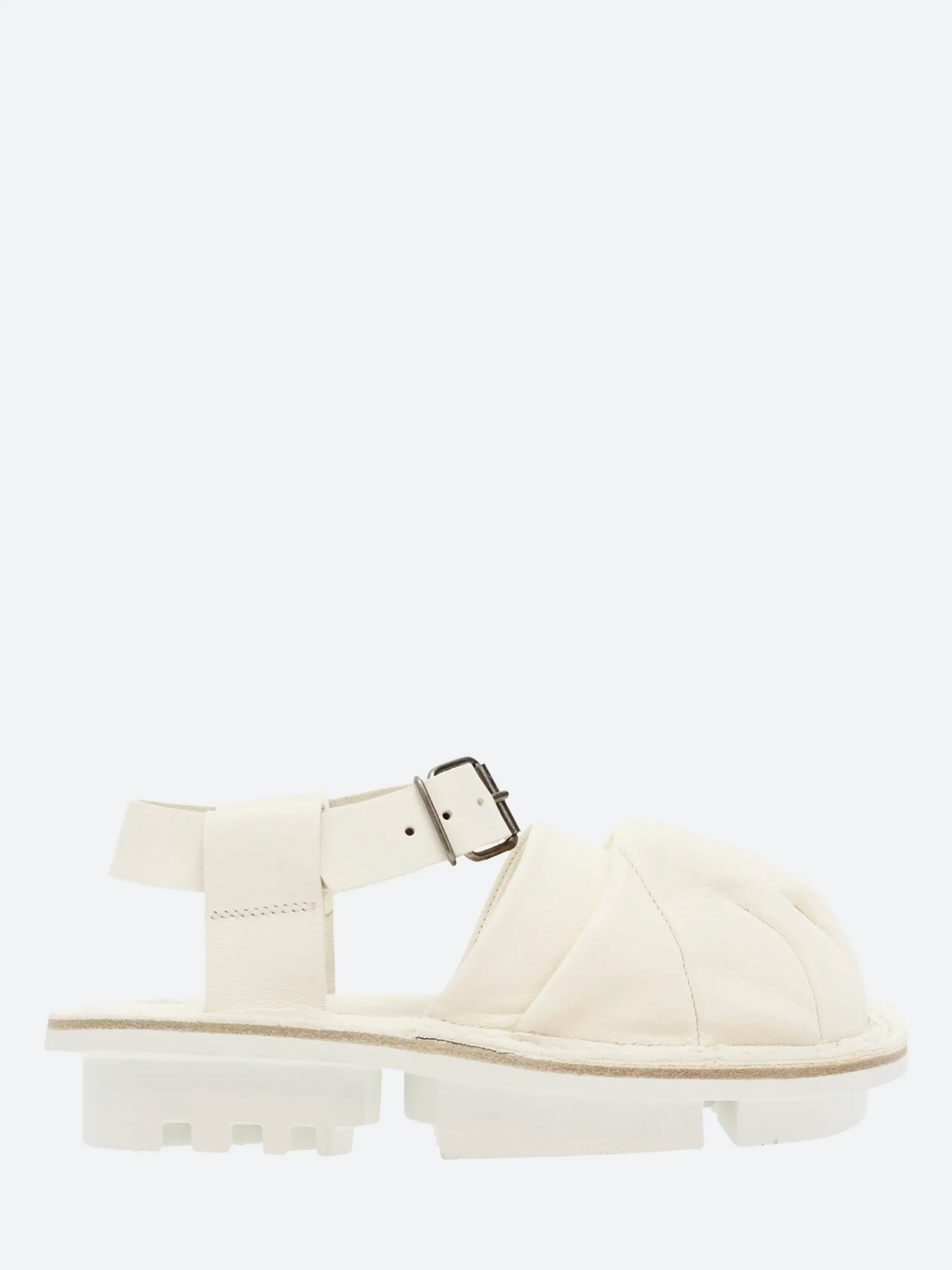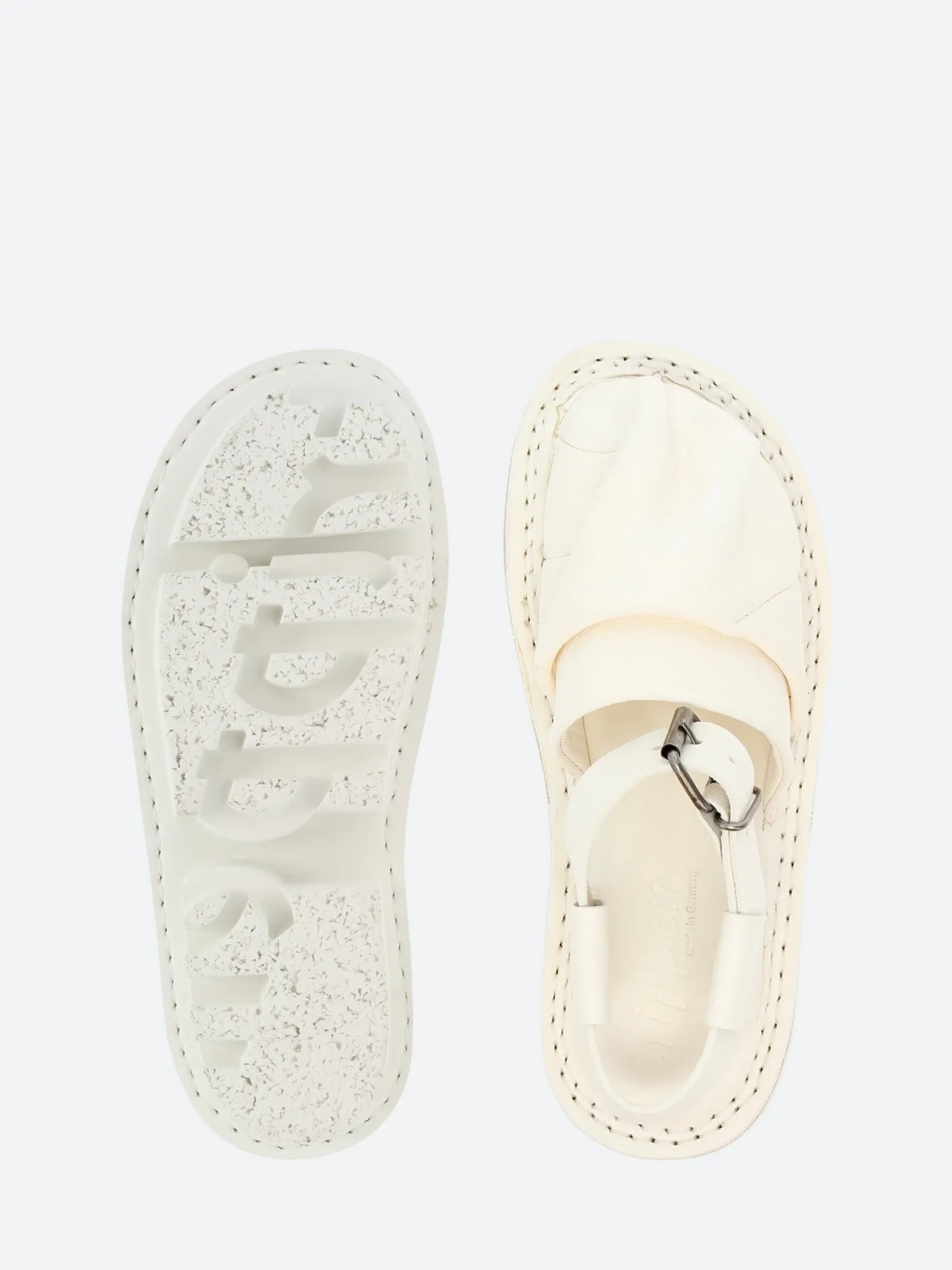 Trippen Closed Surplus minimalist slip-on mule with an adjustable buckle ankle strap.