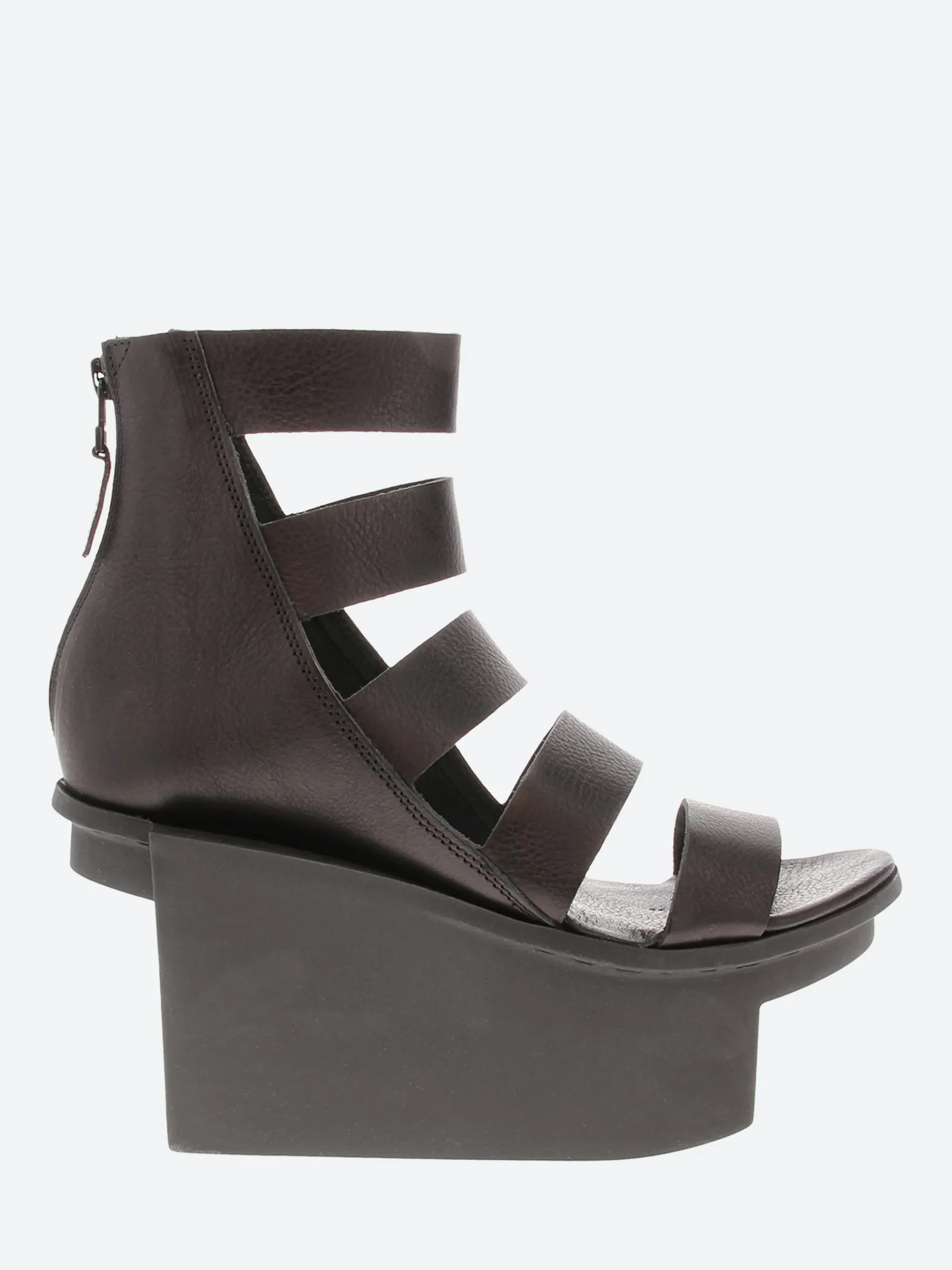 Elegant, graphic platform sandal perched on the sculptural Geisha sole. The zip at the heel enables easy access to this style.