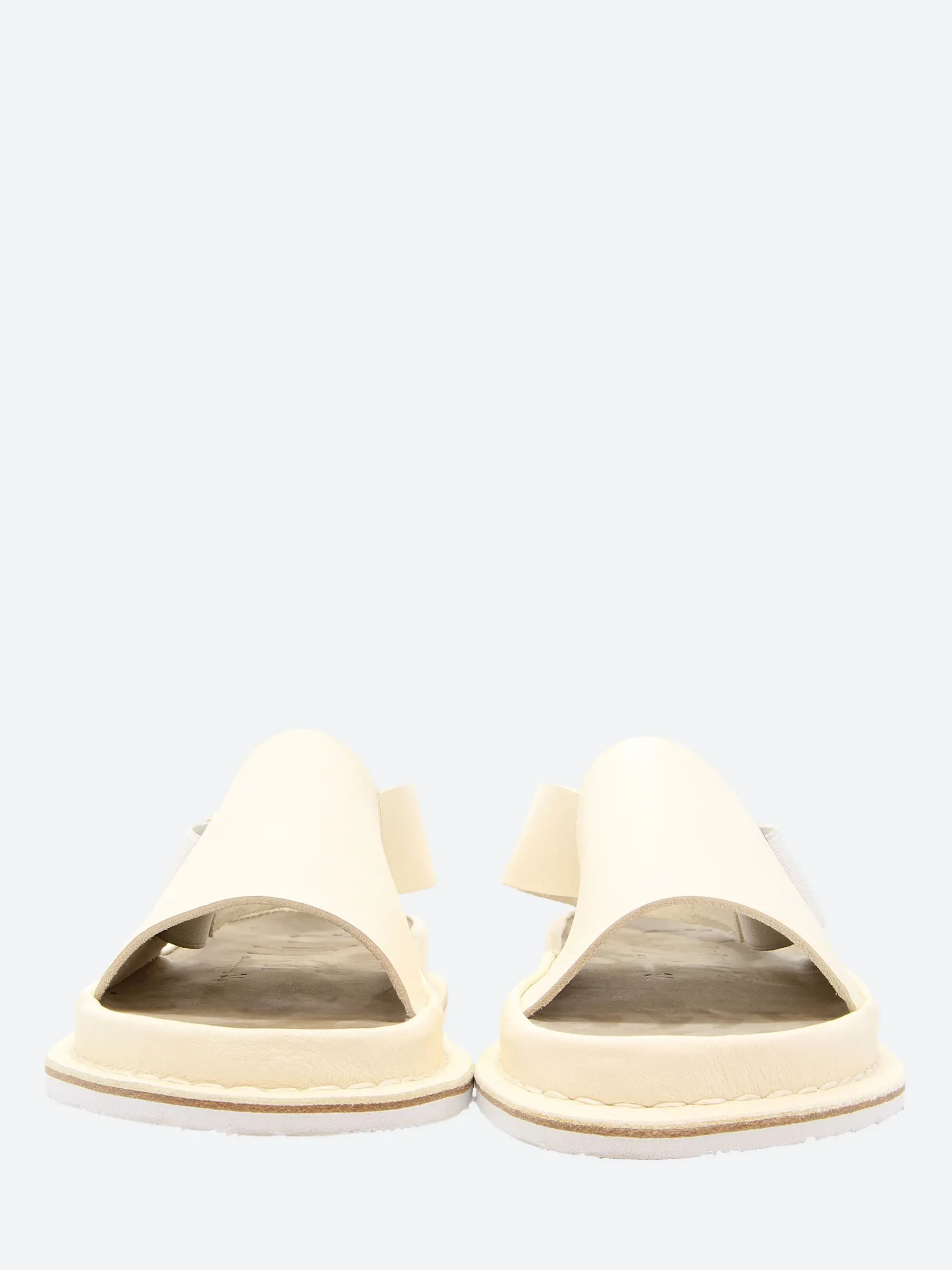 Trippen Zori Safeguard, a simple sandal with an elastic heel strap that passes through an eyelet and a Velcro strap closure.