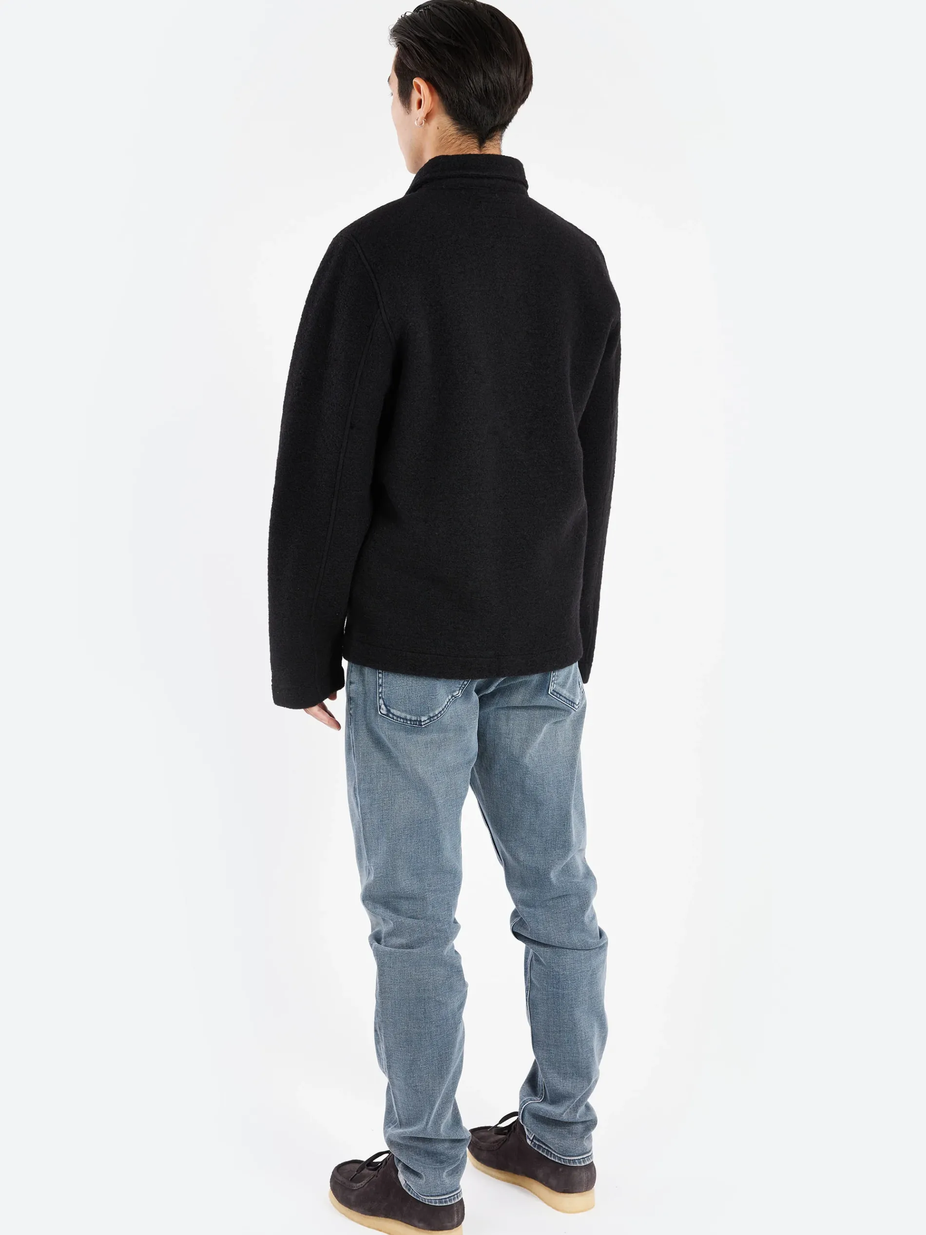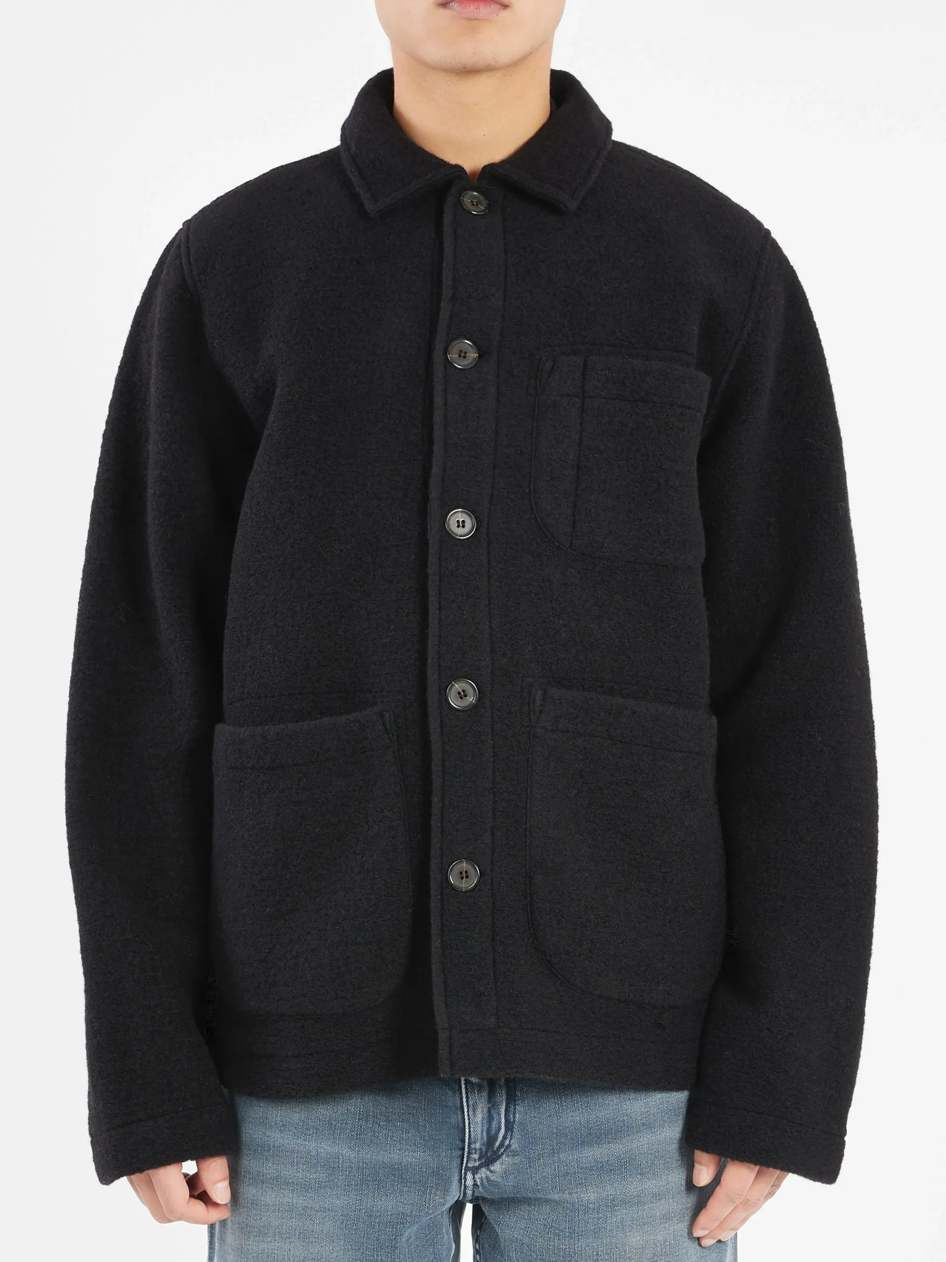 A loose, boxy fit simple jacket with three patch pockets, made from a luxury wool-blend fabric.