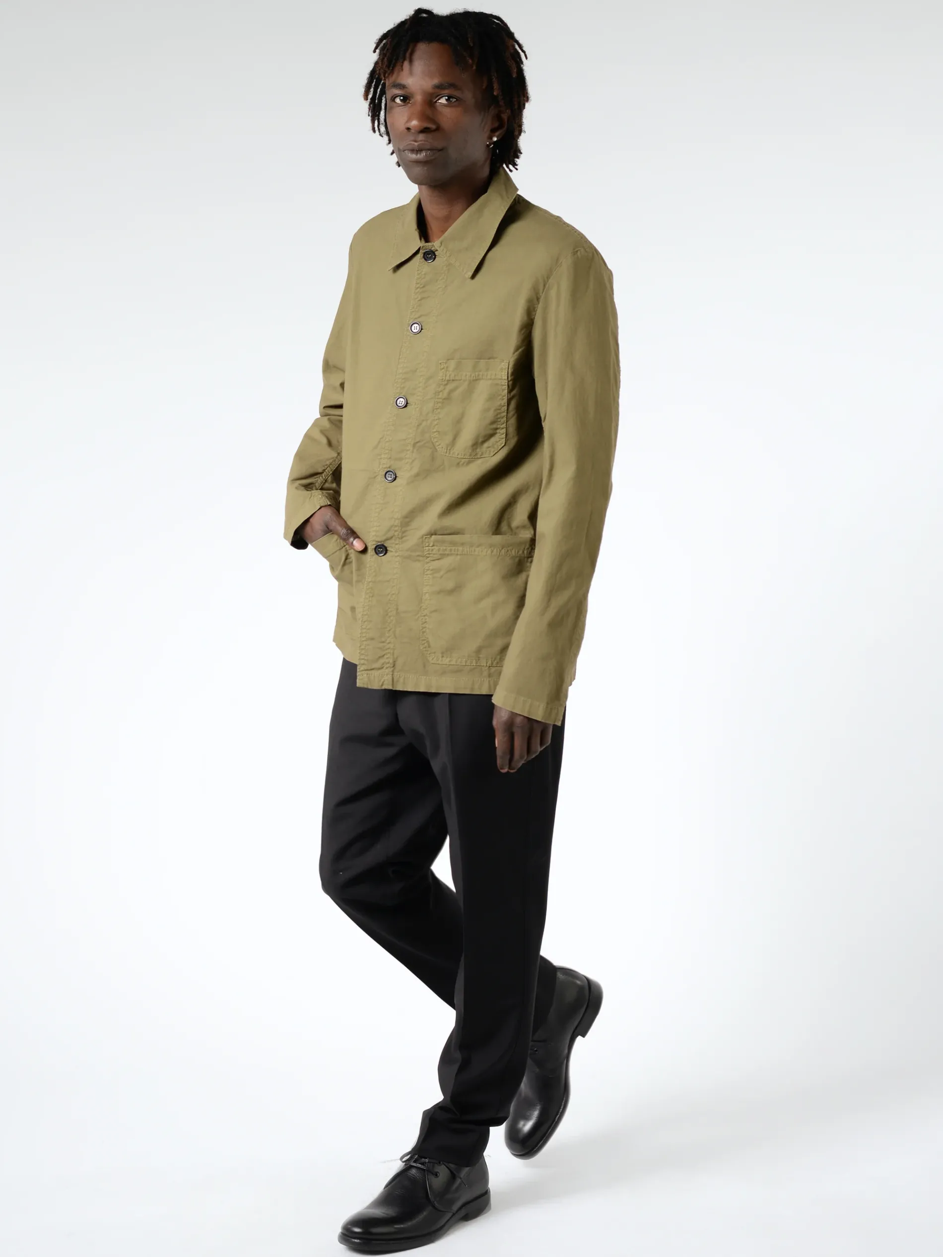 A classic French workwear jacket made from organic cotton dungaree twill. This fabric is made of two-ply warp yarns (two yarns twisted together), ensuring better resistance.