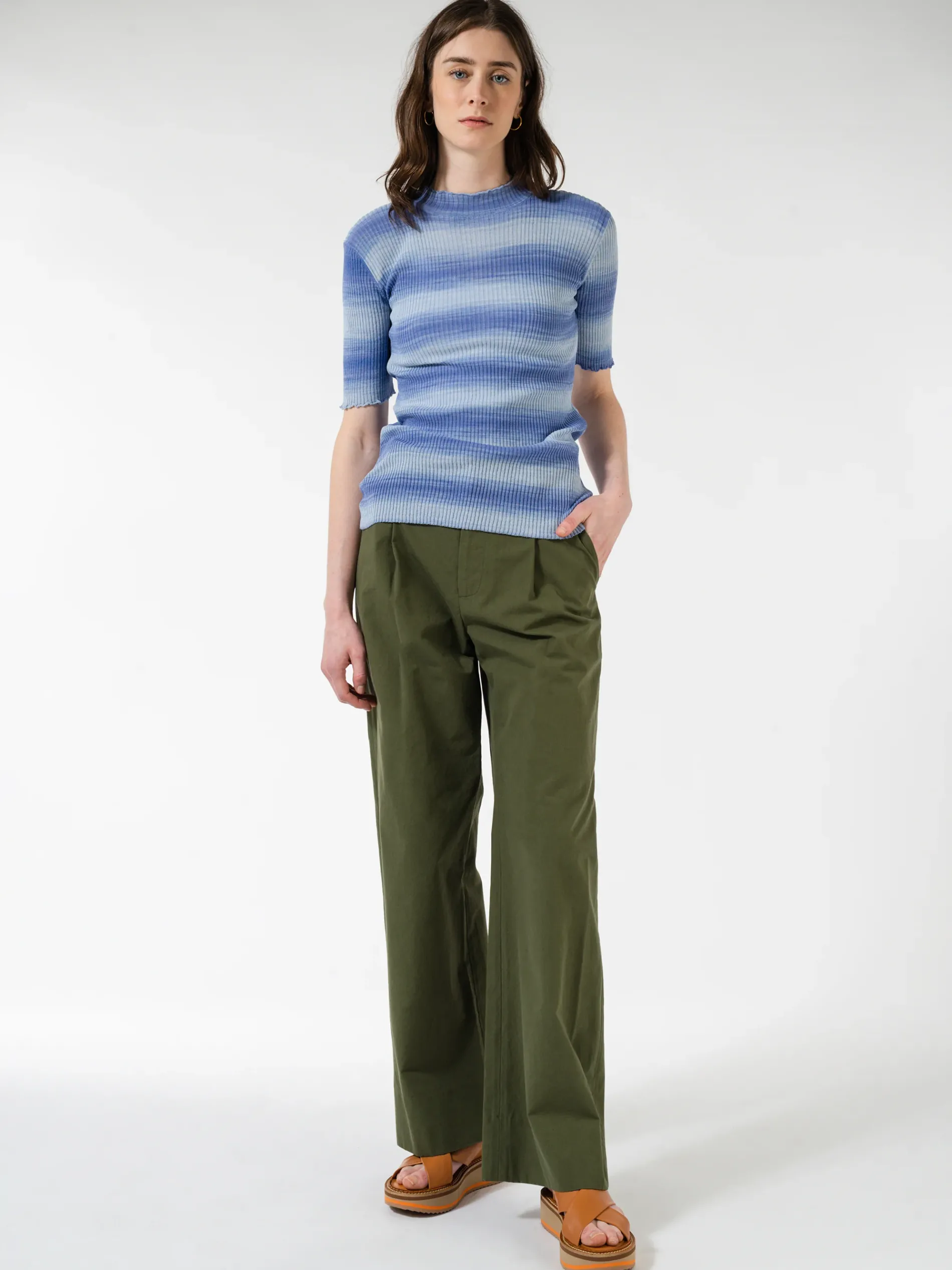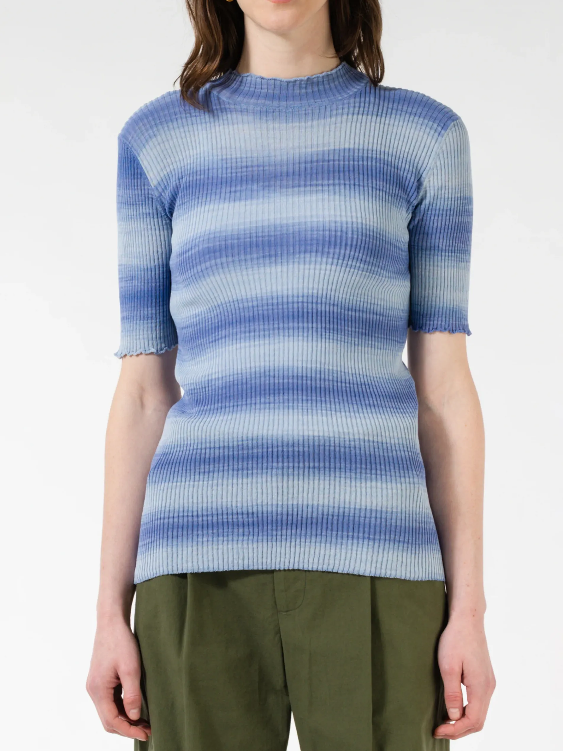 A.P.C. Victoire short-sleeve striped sweater in a textured organic cotton.