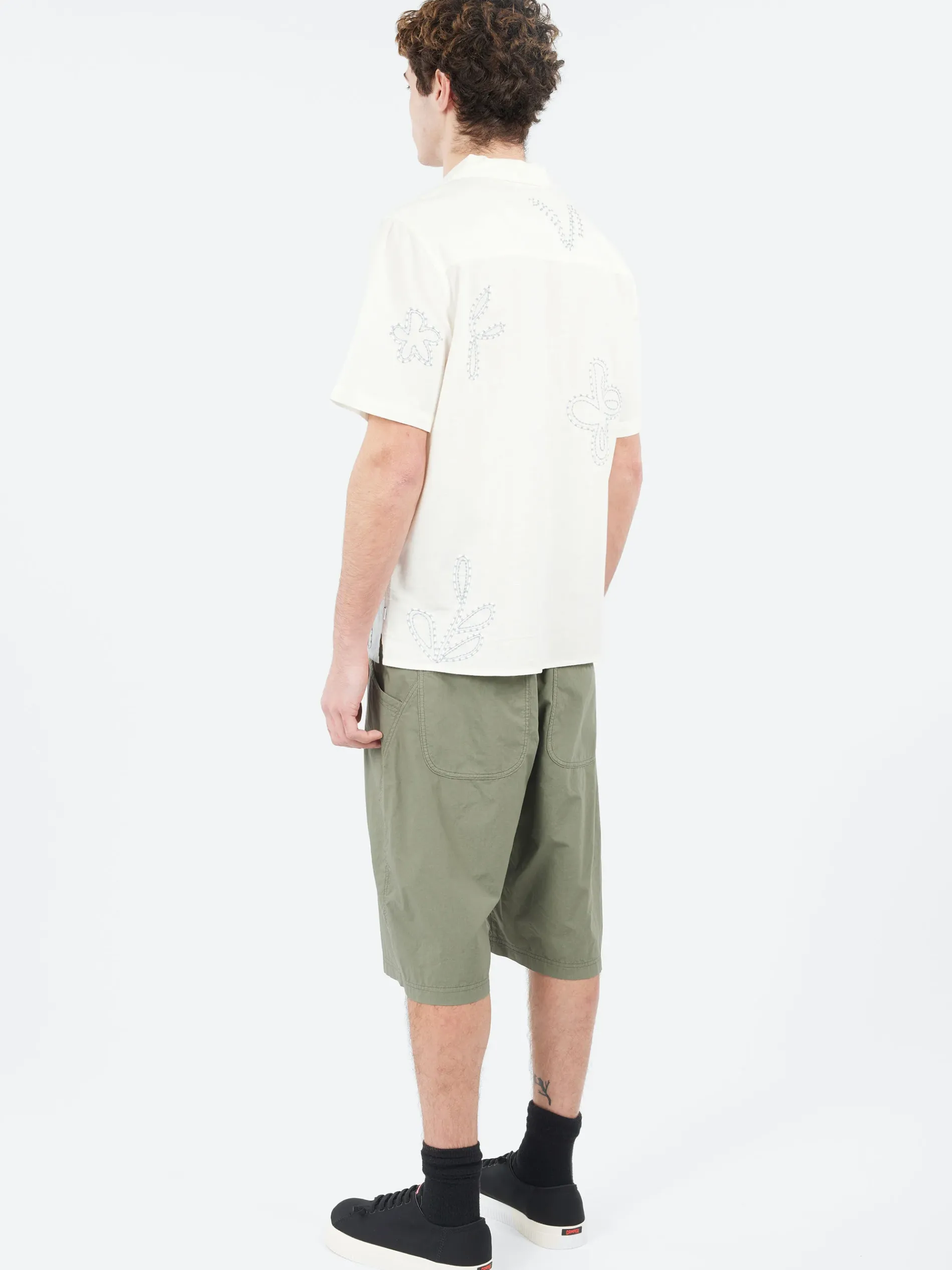 Wax London staple Didcot short-sleeve shirt makes a triumphant return for SS25. Cut for a relaxed, breezy fit, this version is made from a breathable cotton blend and showcases a raised pale blue fine cord embroidered floral design.
