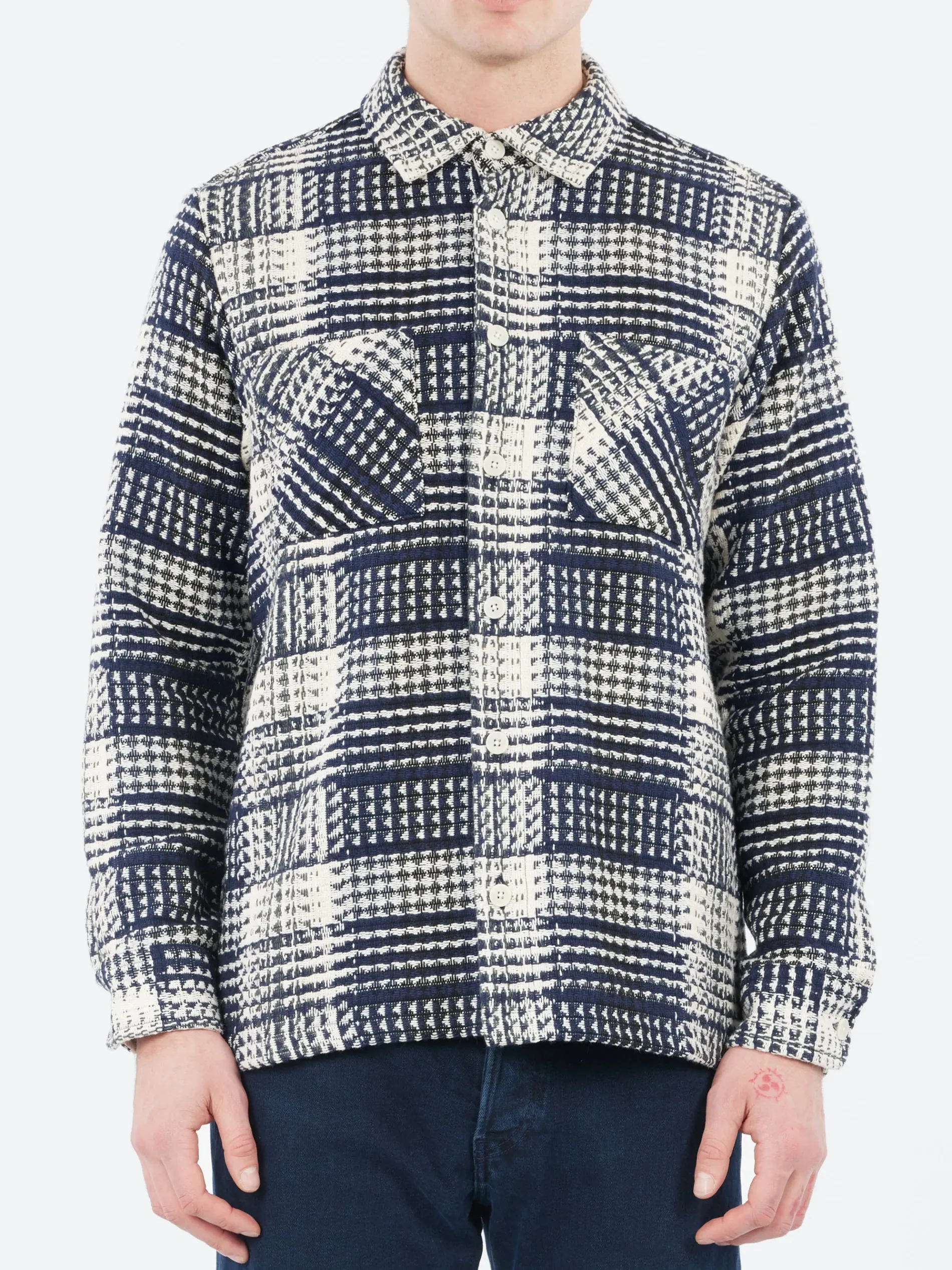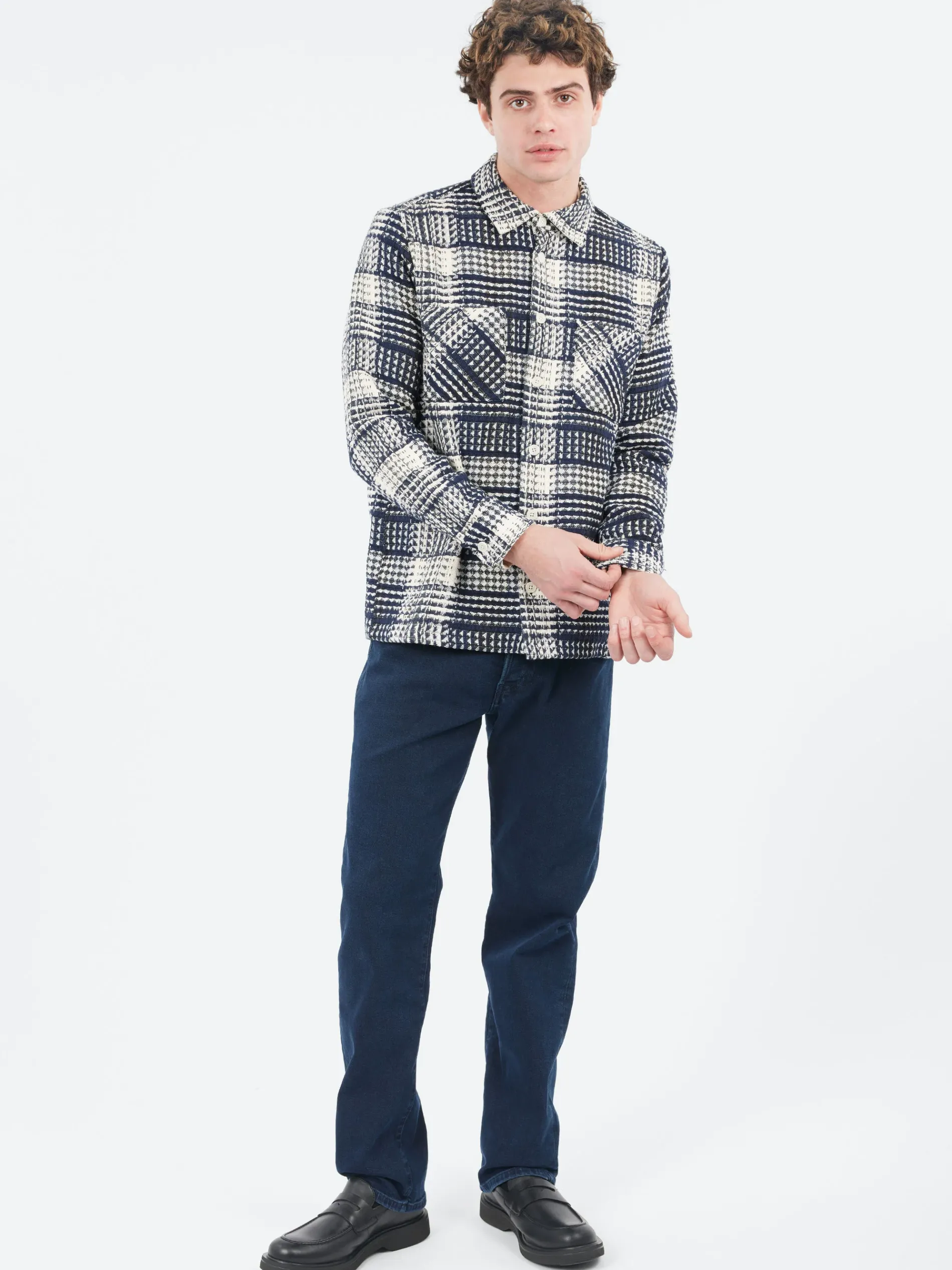 The Wax London signature piece. The Whiting, a year-round staple, returns in a new addle check woven design that mixes navy and ecru yarns. This fabric is made sustainably by a family-run French mill using recycled cotton to create an effortlessly wearable overshirt that combines timeless style with responsible craftsmanship.