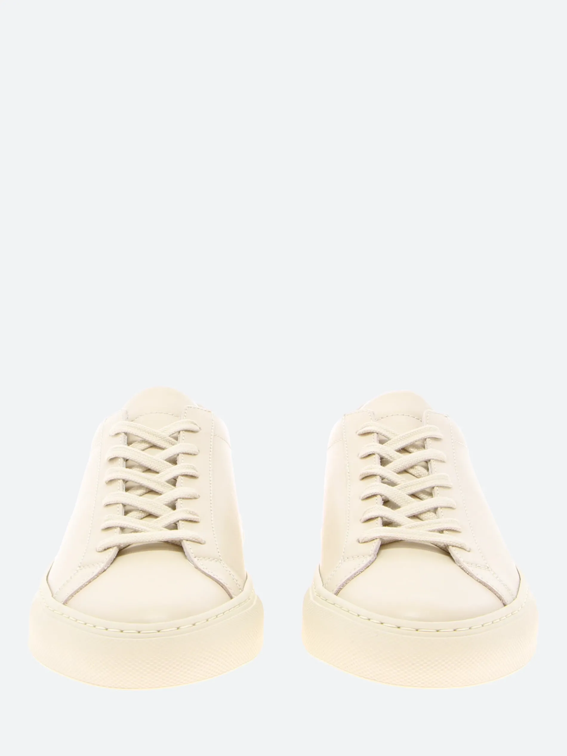 Woman by Common Projects Achilles Low is the original Common Project style. Using top grain leather for the upper and a full leather lining makes this a luxury Italian made sneaker. The clean lines and minimal gold branding make for a modern take on a classic tennis shoe.