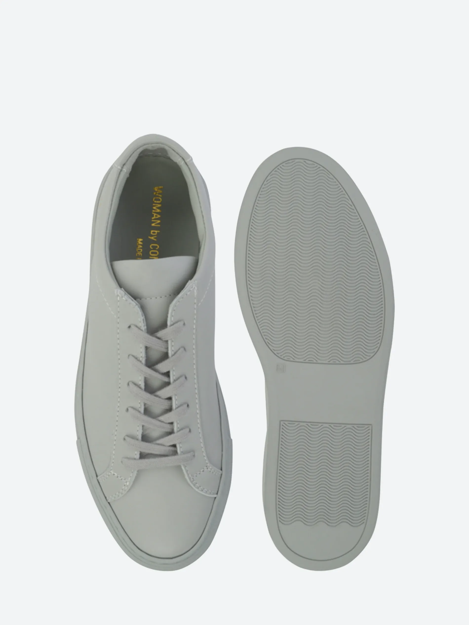 Woman by Common Projects Achilles Low is the original Common Project style. Using top grain leather for the upper and a full leather lining makes this a luxury Italian made sneaker. The clean lines and minimal gold branding make for a modern take on a classic tennis shoe.