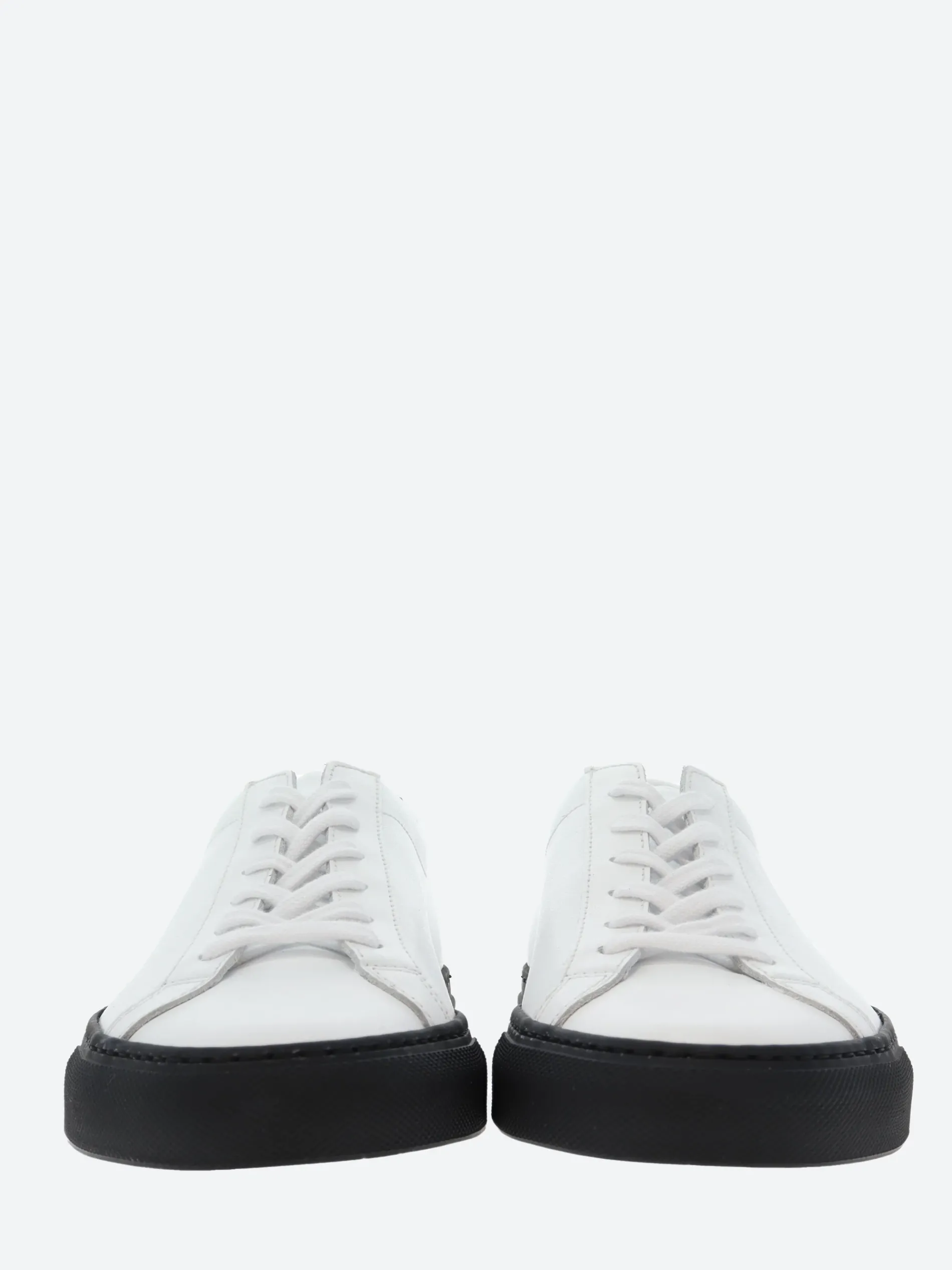 Woman by Common Projects Achilles is the original Common Project style. Using top grain leather for the upper and a full leather lining makes this a luxury Italian made sneaker. The clean lines and minimal gold branding make for a modern take on a classic tennis shoe.