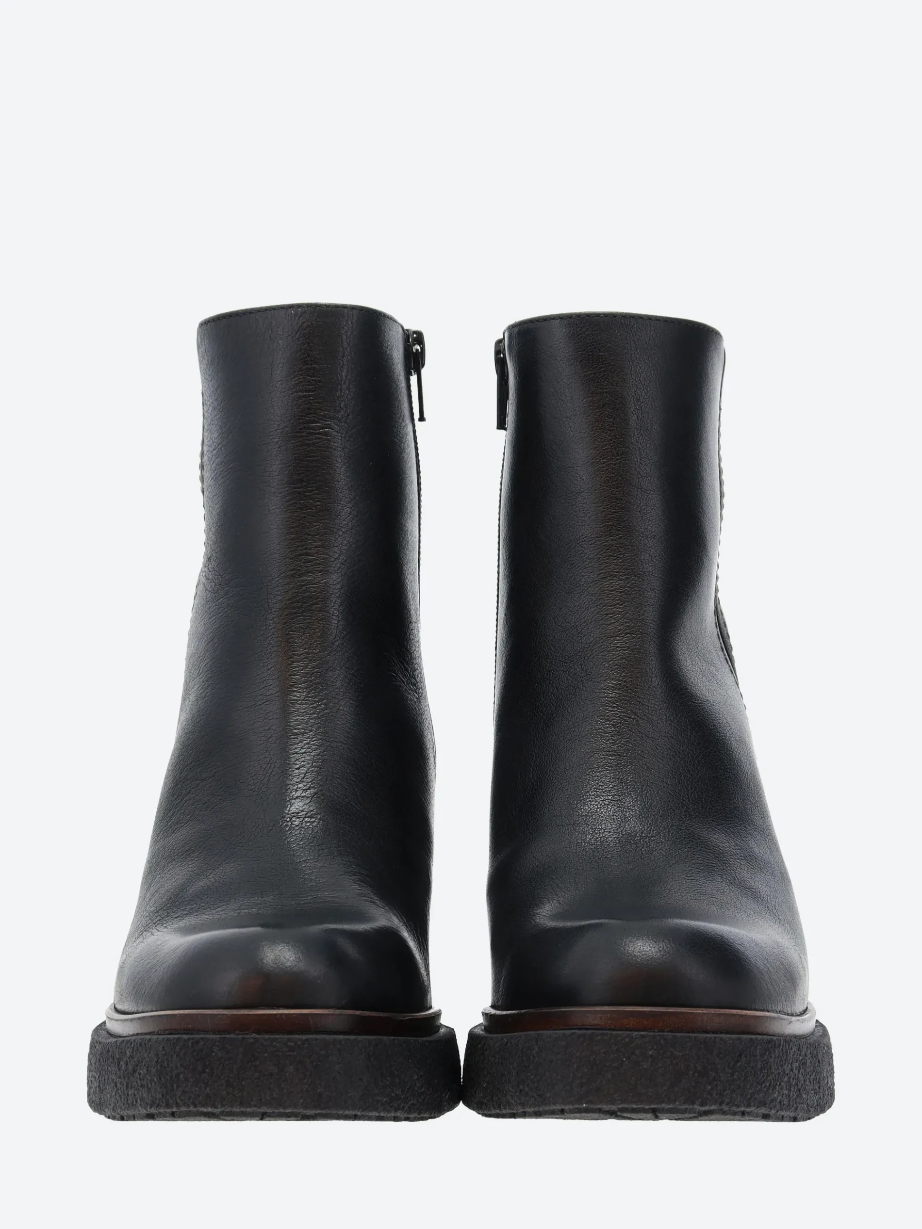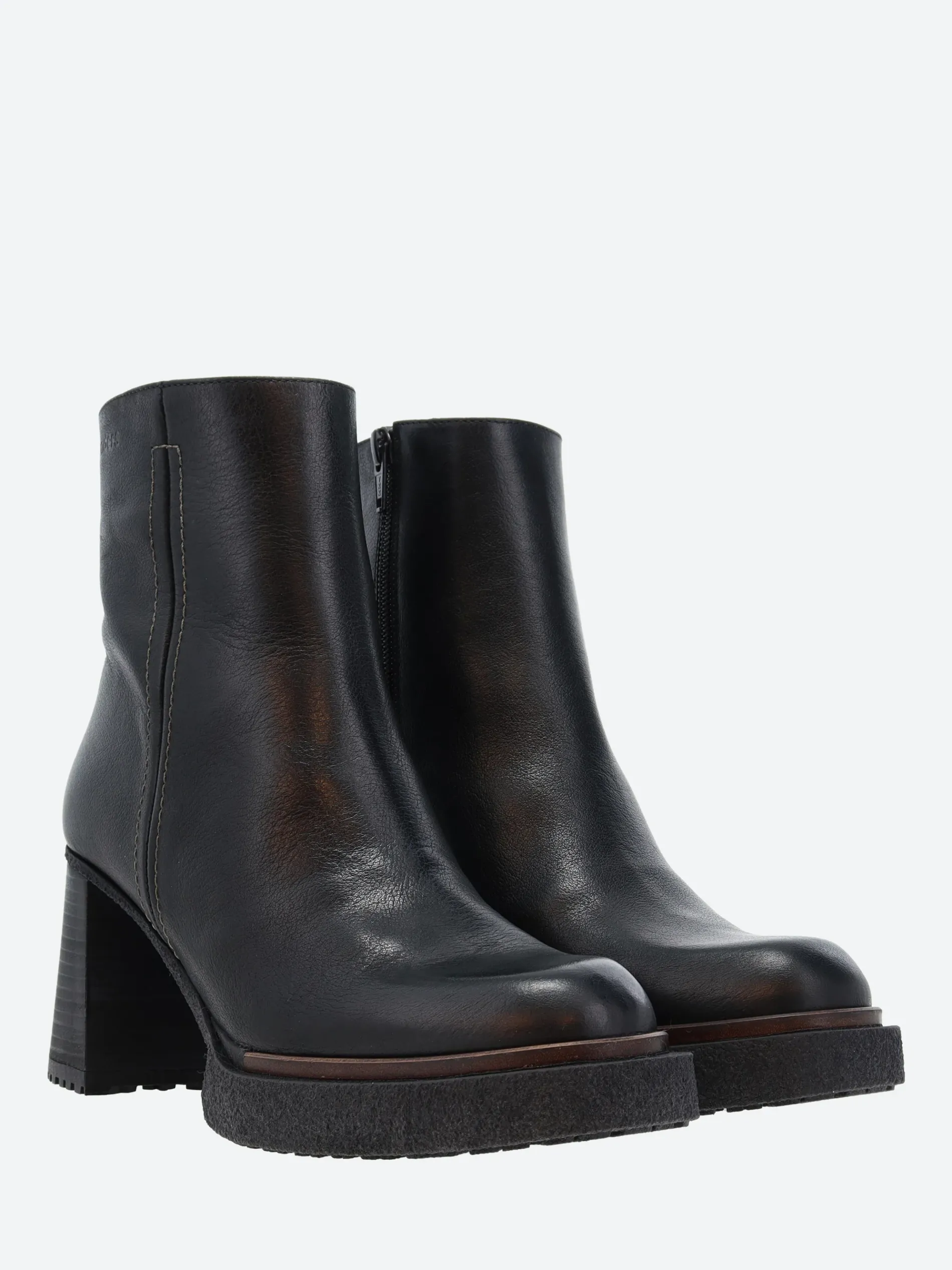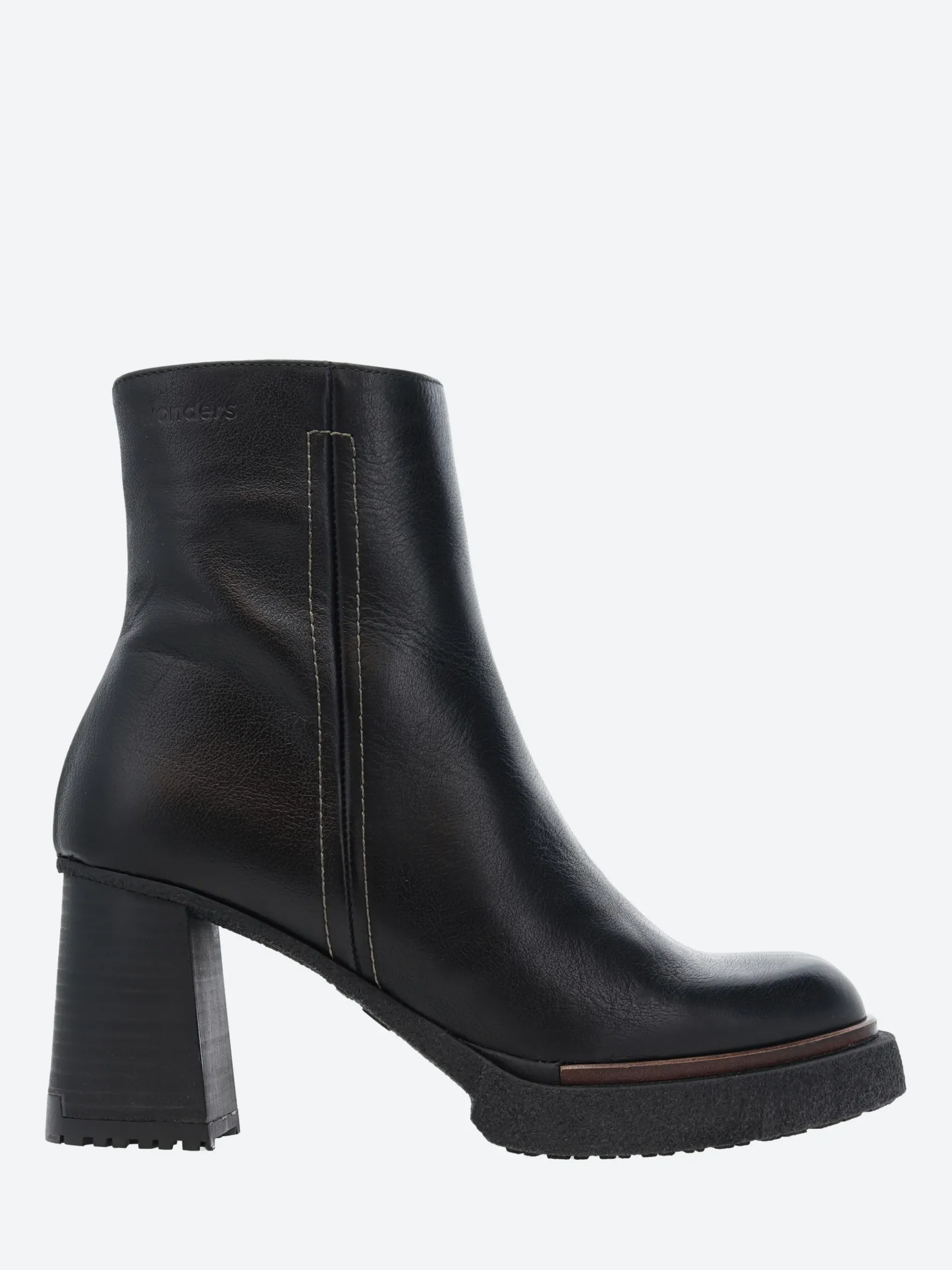Wonders high-heeled riding-style ankle boots. Leather upper with contrast stitching detail, side zip fastening, wooden block heel and a wonder Memory gel cushioned leather insole.