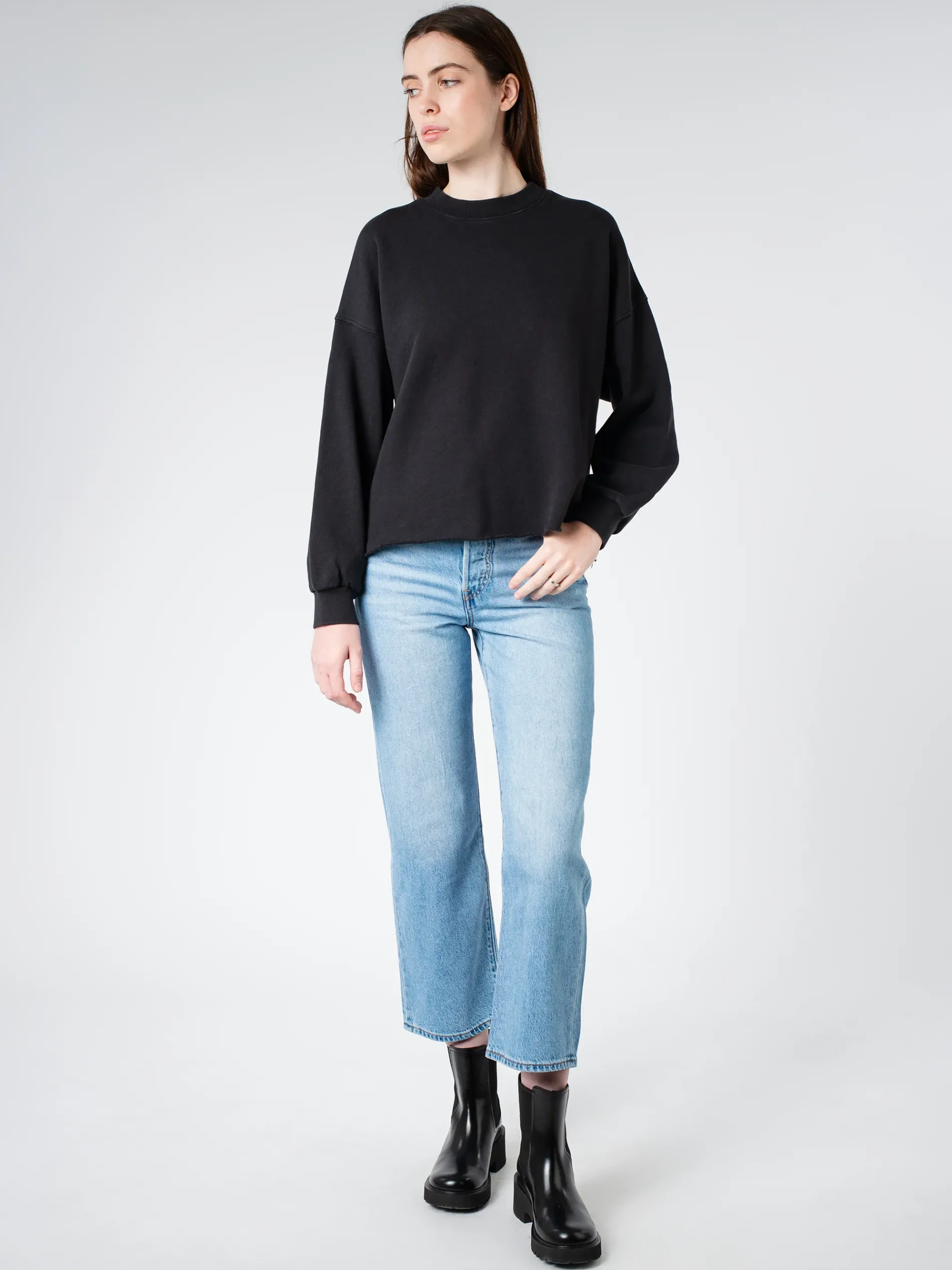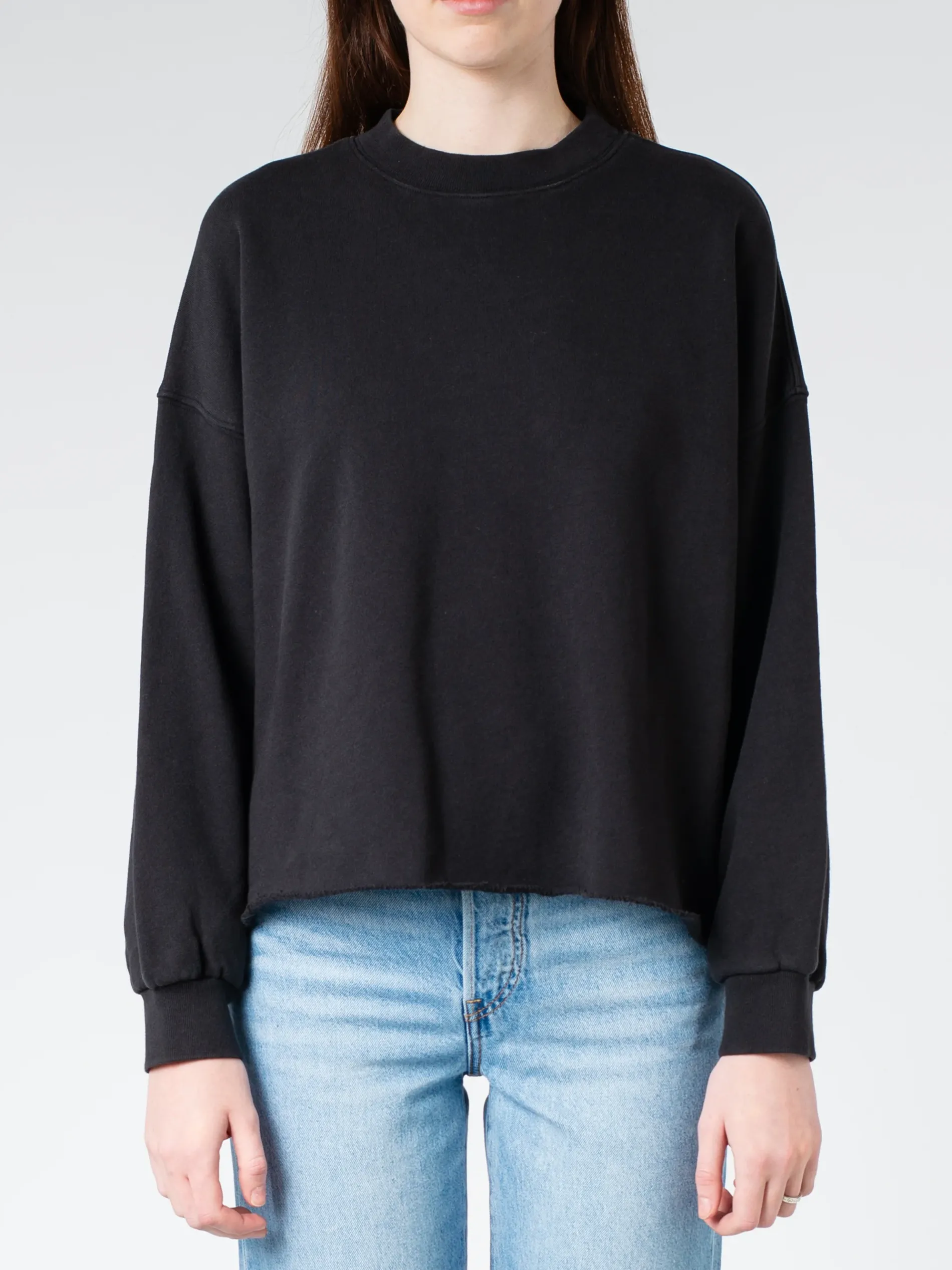 Xirena Honor with a slightly cropped raw hem done in ultra-soft brushed fleece. A sweatshirt ready for whatever the day brings.