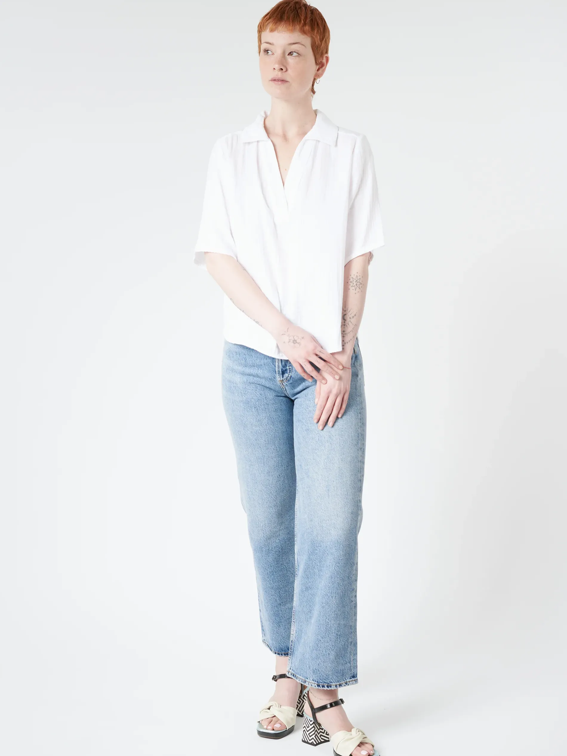 The Ryder Top is an effortless warm-weather staple, cut from washed double faced cotton gauze with an easy, deep V-neckline.