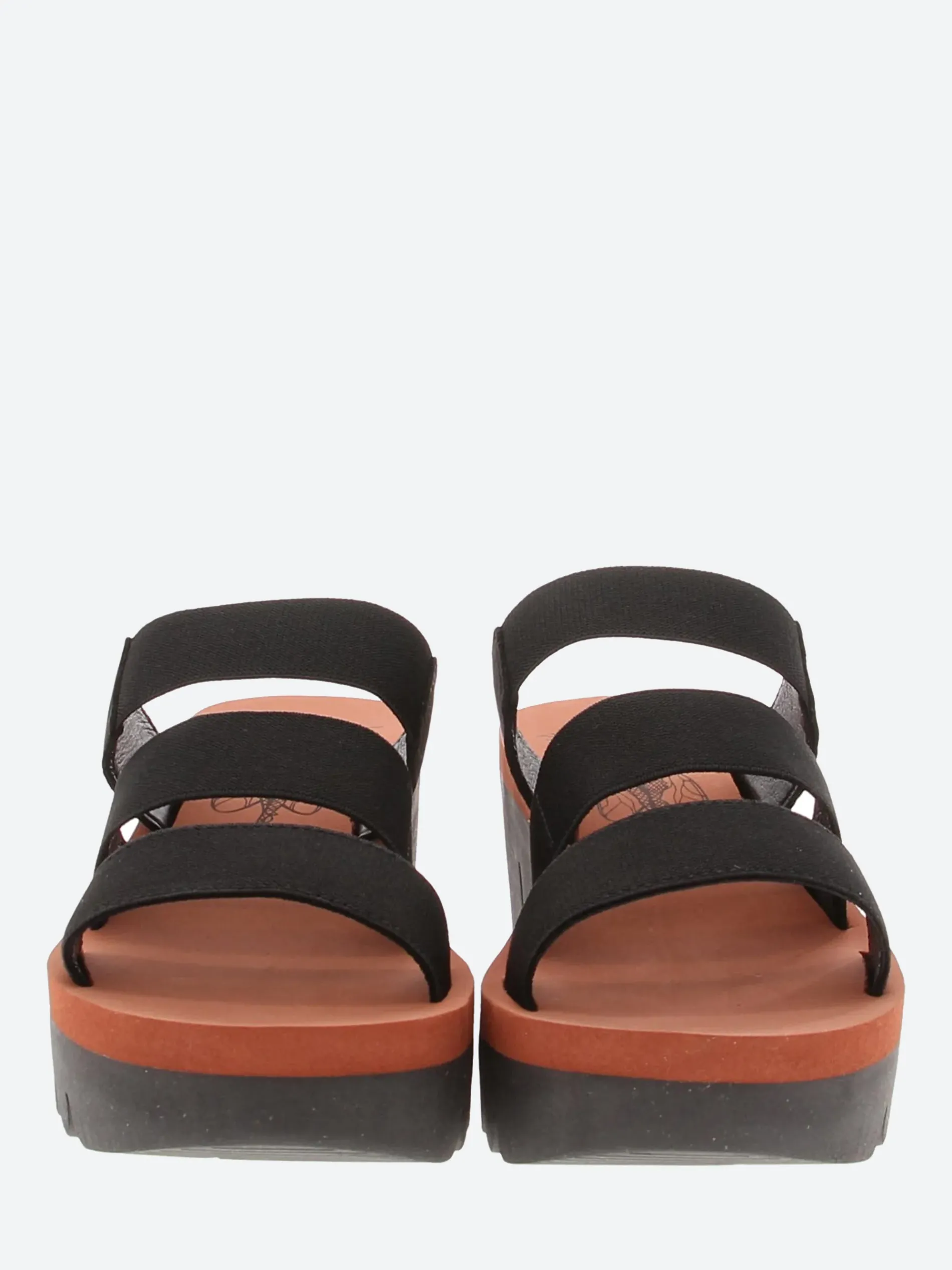 Fly London Yian elegant cupido wedge sandals with a sporty influence. The cushioned insole will keep you comfortable wherever you go.