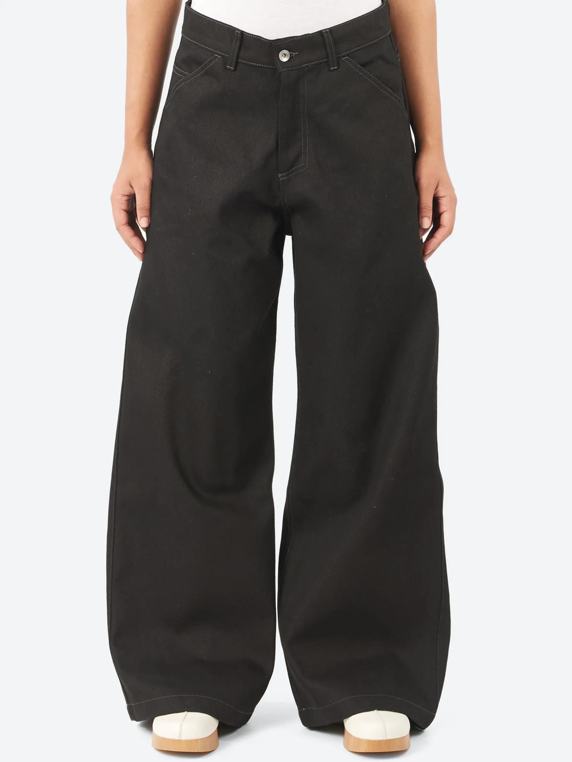 The YMC Courtney Jeans are a bootcut style crafted from 13.5oz organic cotton raw denim. They feature contrast topstitching for added detail, a front ticket pocket for functionality, and a YMC logo metal button fastening for a signature touch. The concealed back seam yoke pockets enhance the sleek look, while the mid-rise and regular fit provide comfort and a timeless silhouette.