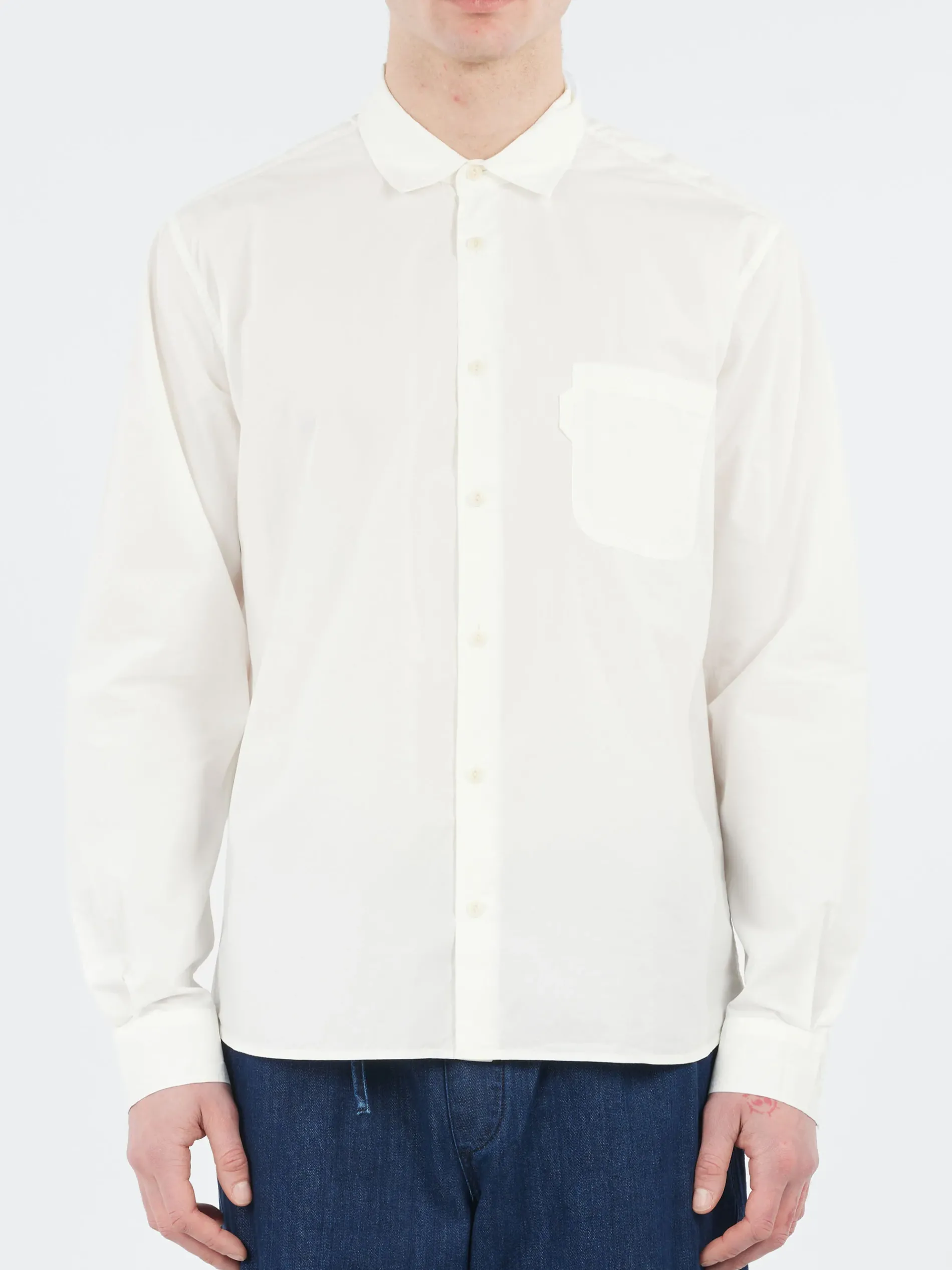 The YMC Earth Curtis Shirt is a relaxed-fit long-sleeve shirt crafted from soft organic cotton poplin. It features a self-fabric chest pocket with a loop for practicality, while the corozo button fastening and cuffs, made from sustainable tagua nuts, add a touch of eco-friendly detail. This shirt combines casual style with thoughtful design for a versatile, sustainable wardrobe essential.