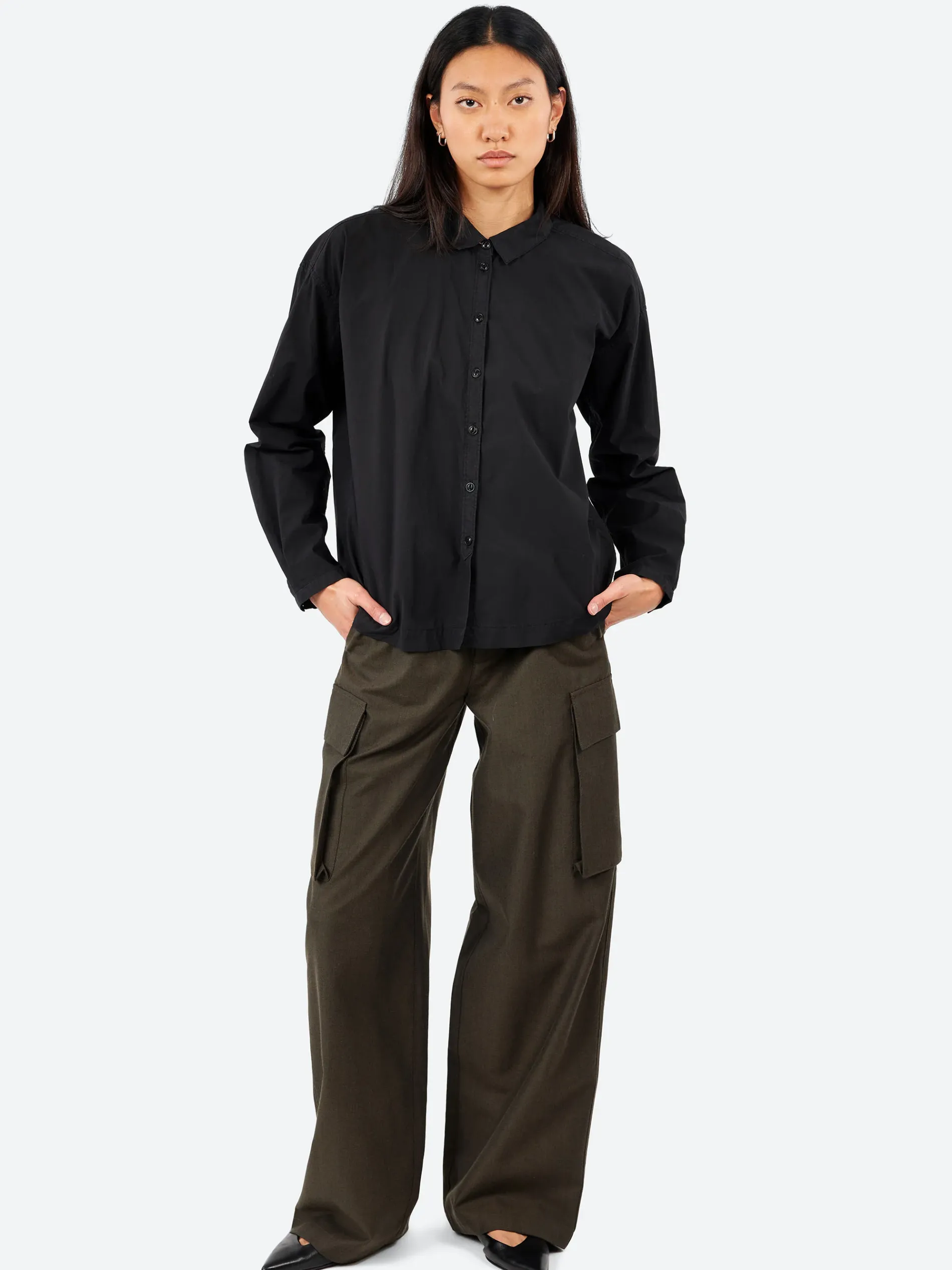 The YMC Marianne Shirt is crafted from organic cotton poplin for a soft, breathable feel. It features a corozo button front fastening and button loop cuff fastenings, offering both comfort and a refined, laid-back style.