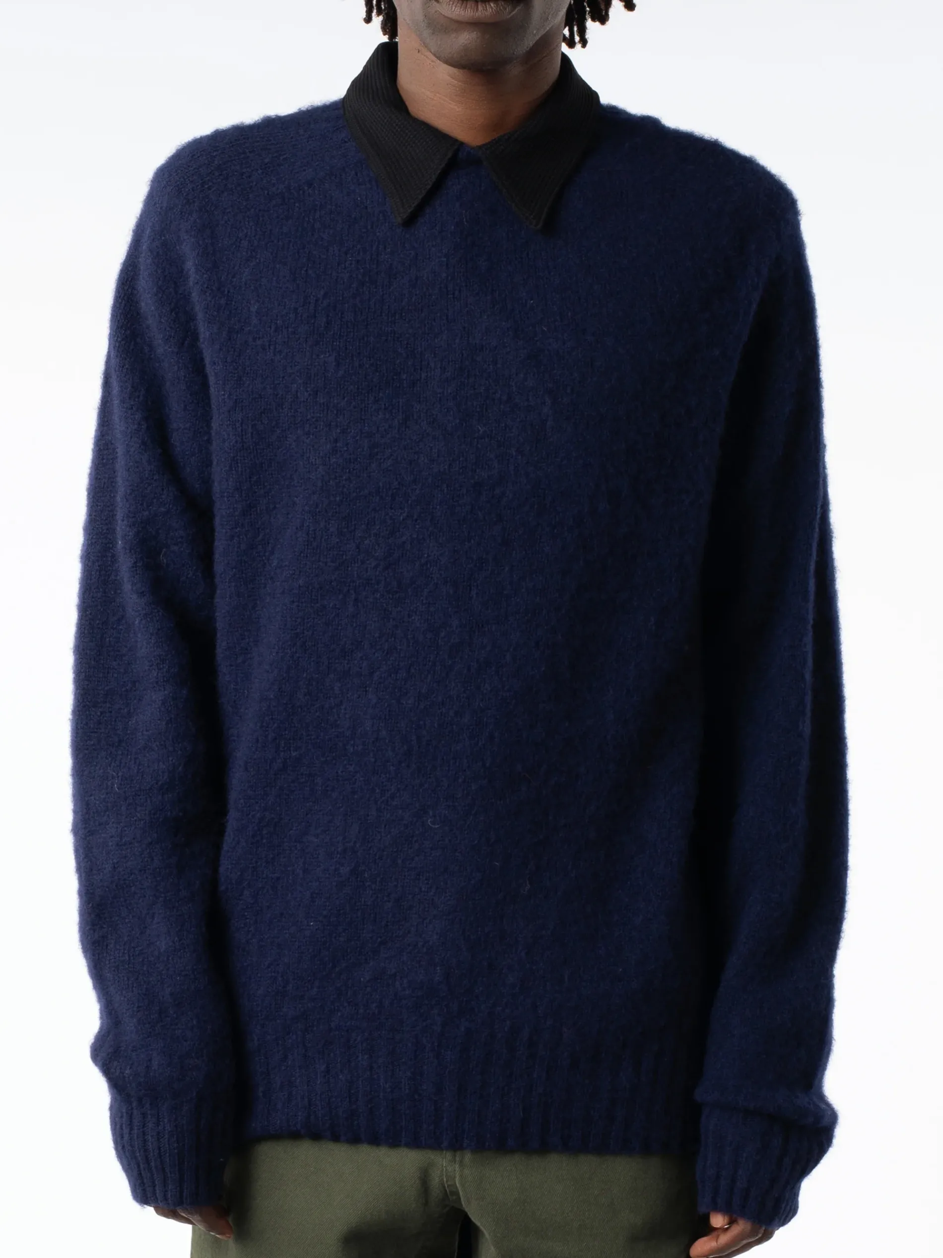 Seam-free crew neck knit shaped to a classic fit. Made from pure brushed lambswool in Scotland at a zero-waste, plastic-free mill using green source energy.