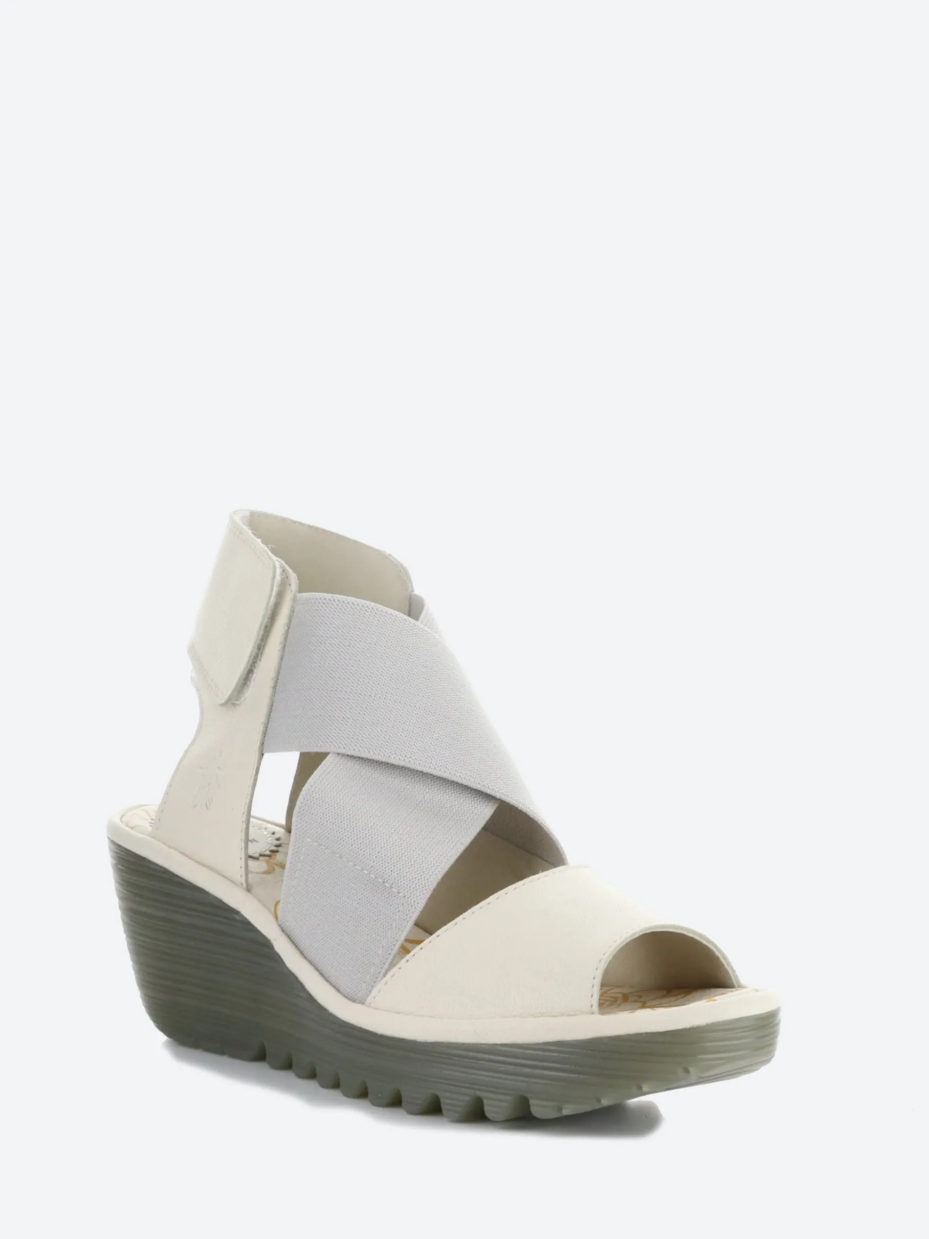 Fly London stylish cupido round toe sandals with wide elastic straps for an adjustable fit.