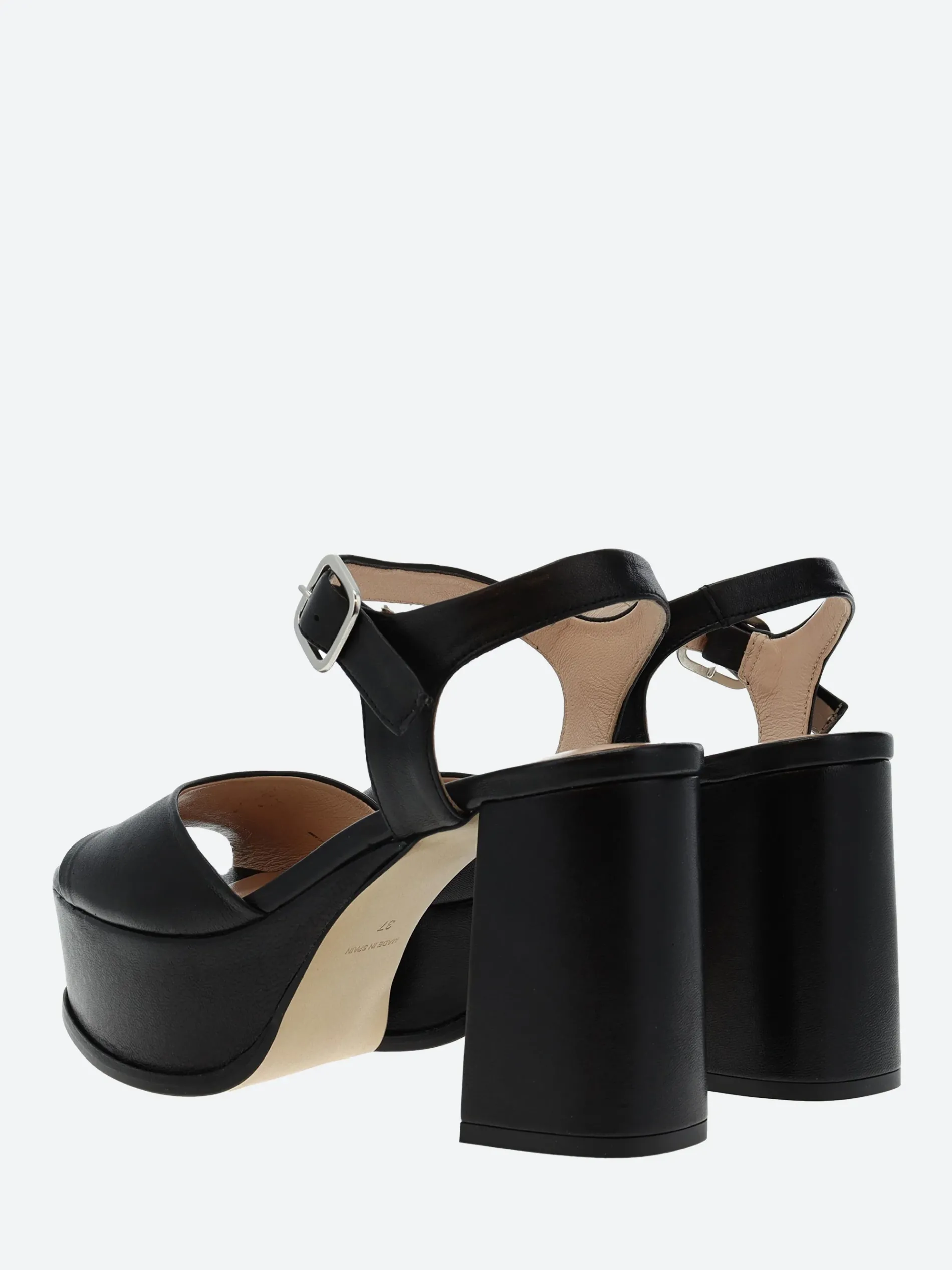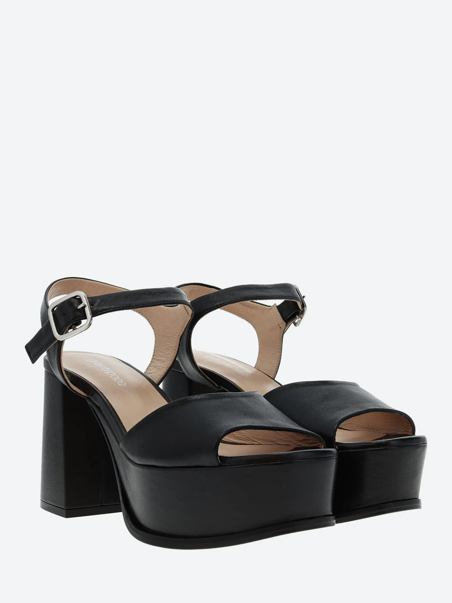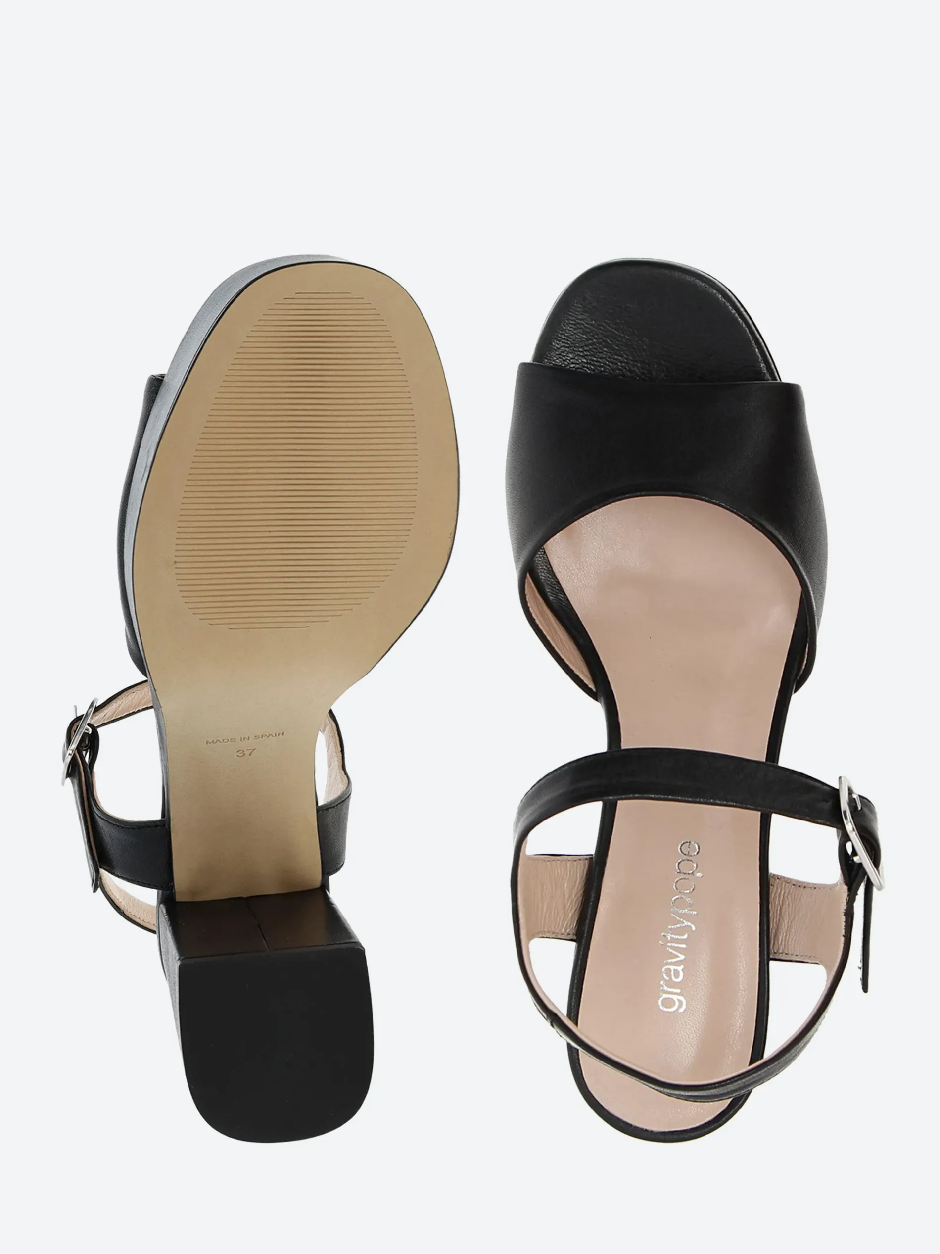 The gravitypope Zeal sandal combines retro appeal with modern design, featuring a chunky heel and platform base for added height and comfort. The Y-strap with buckle closure ensures a secure fit, while the curved leather strap across the vamp adds a stylish touch. Designed as a slip-on style for easy wear, the sandal is finished with a metallic embossed logo at the footbed, adding a touch of luxury to this versatile and fashionable piece.