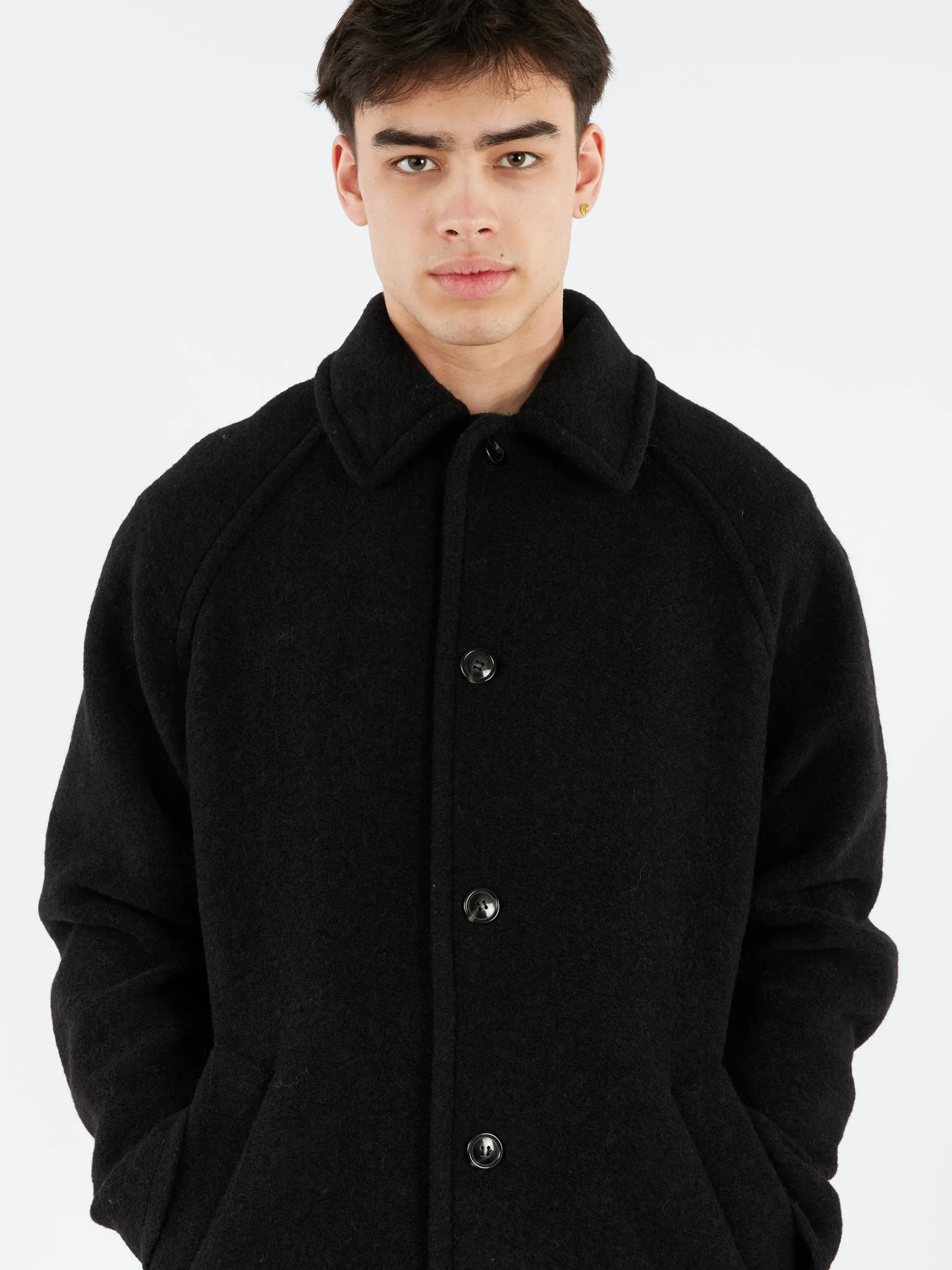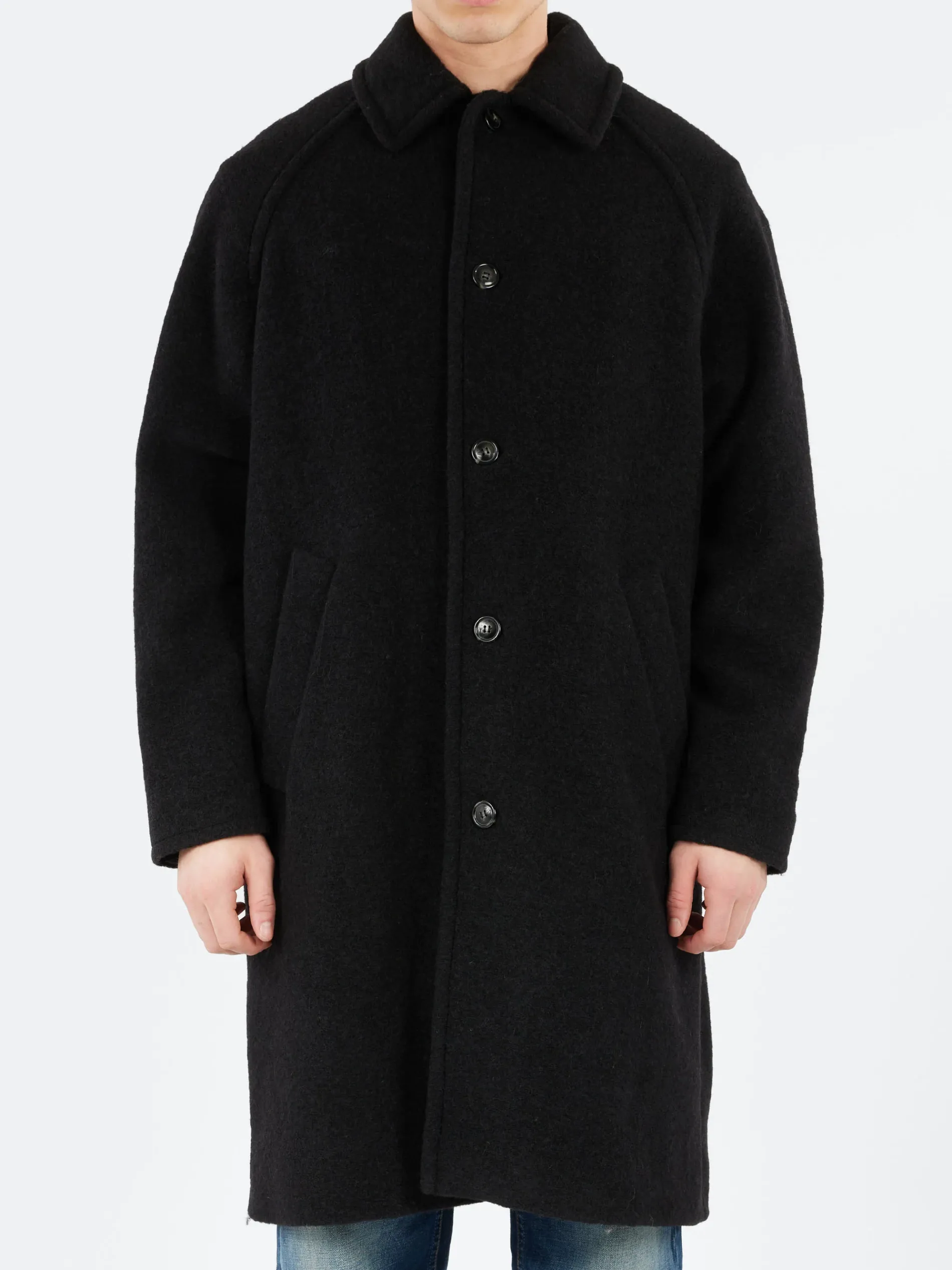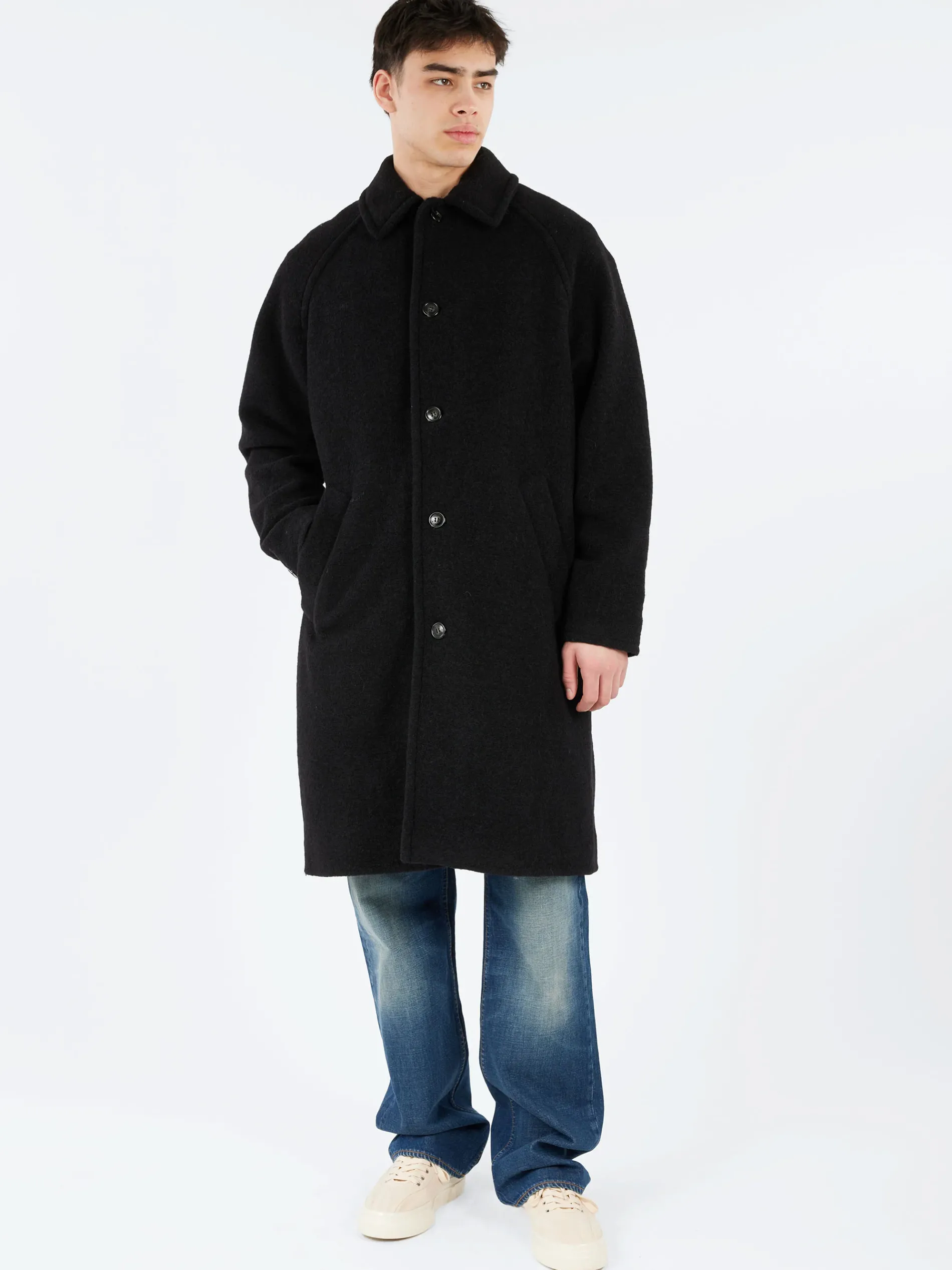 This classic A.P.C. coat is made from a soft, water-repellent wool fabric, offering both style and practicality. It features a straight cut with a slightly relaxed fit, hitting at the knee for a sleek yet comfortable silhouette.