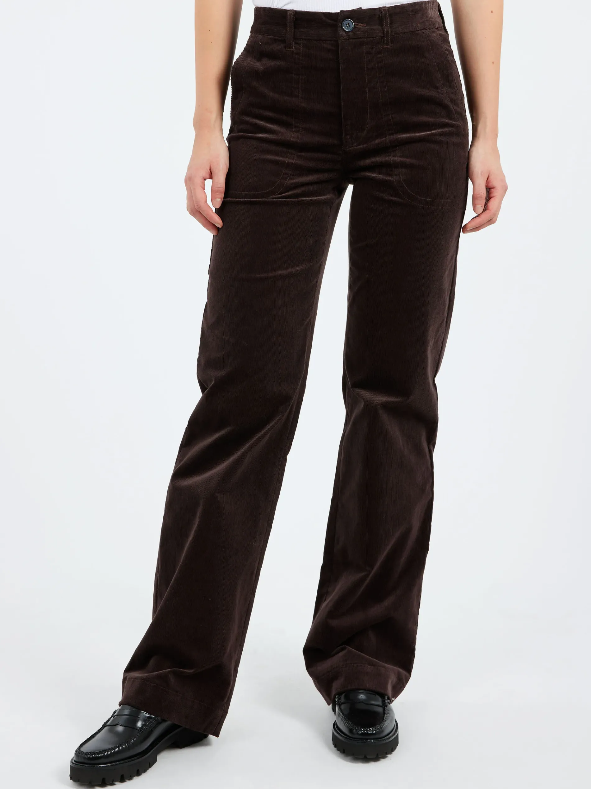 A.P.C. corduroy jeans that envelops the hips with flared legs.