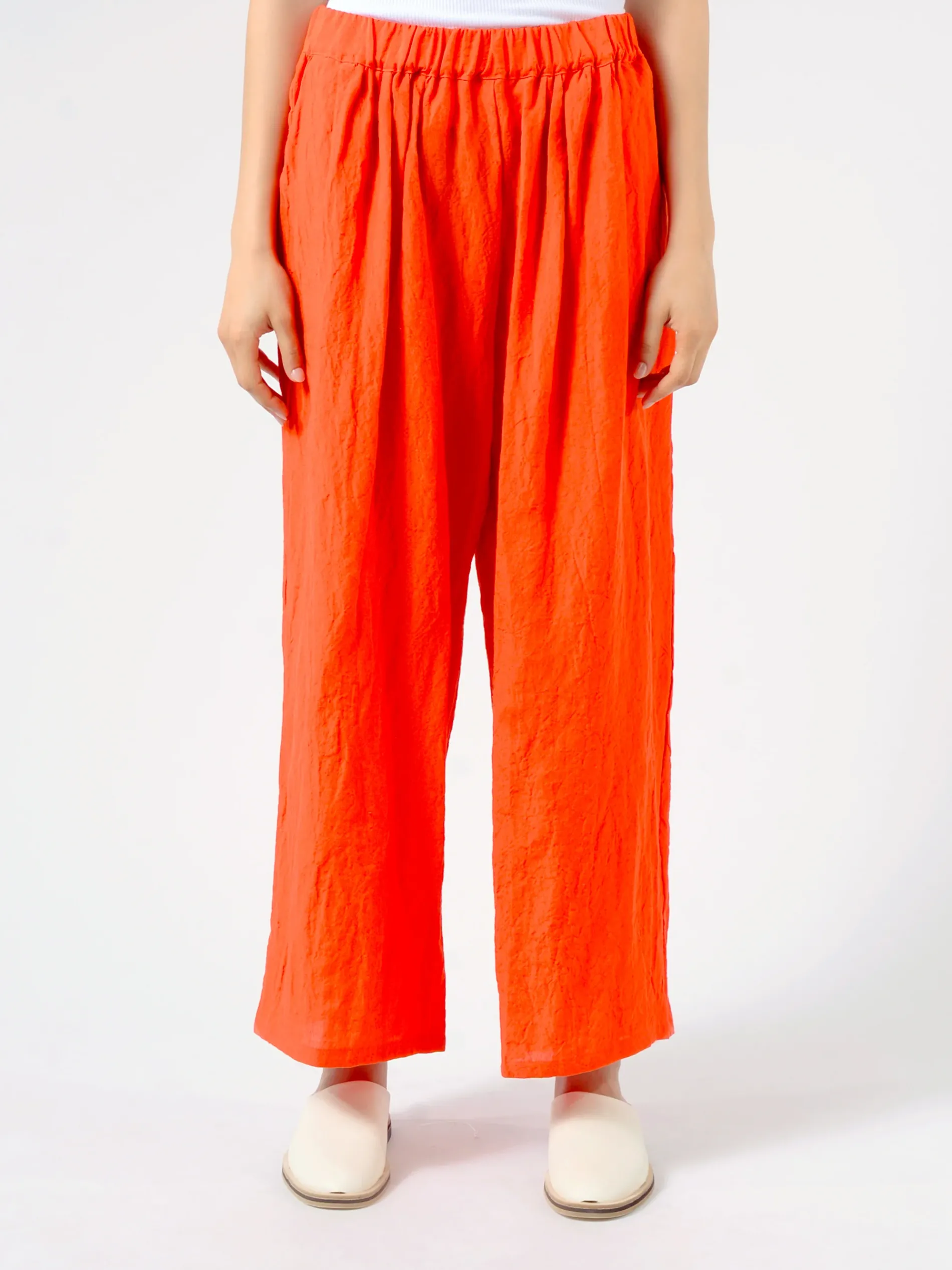 A Punto B simple trouser with a comfortable fit and a loose fit on the leg. Made from a light, crisp, cool linen and finished with a cropped length.