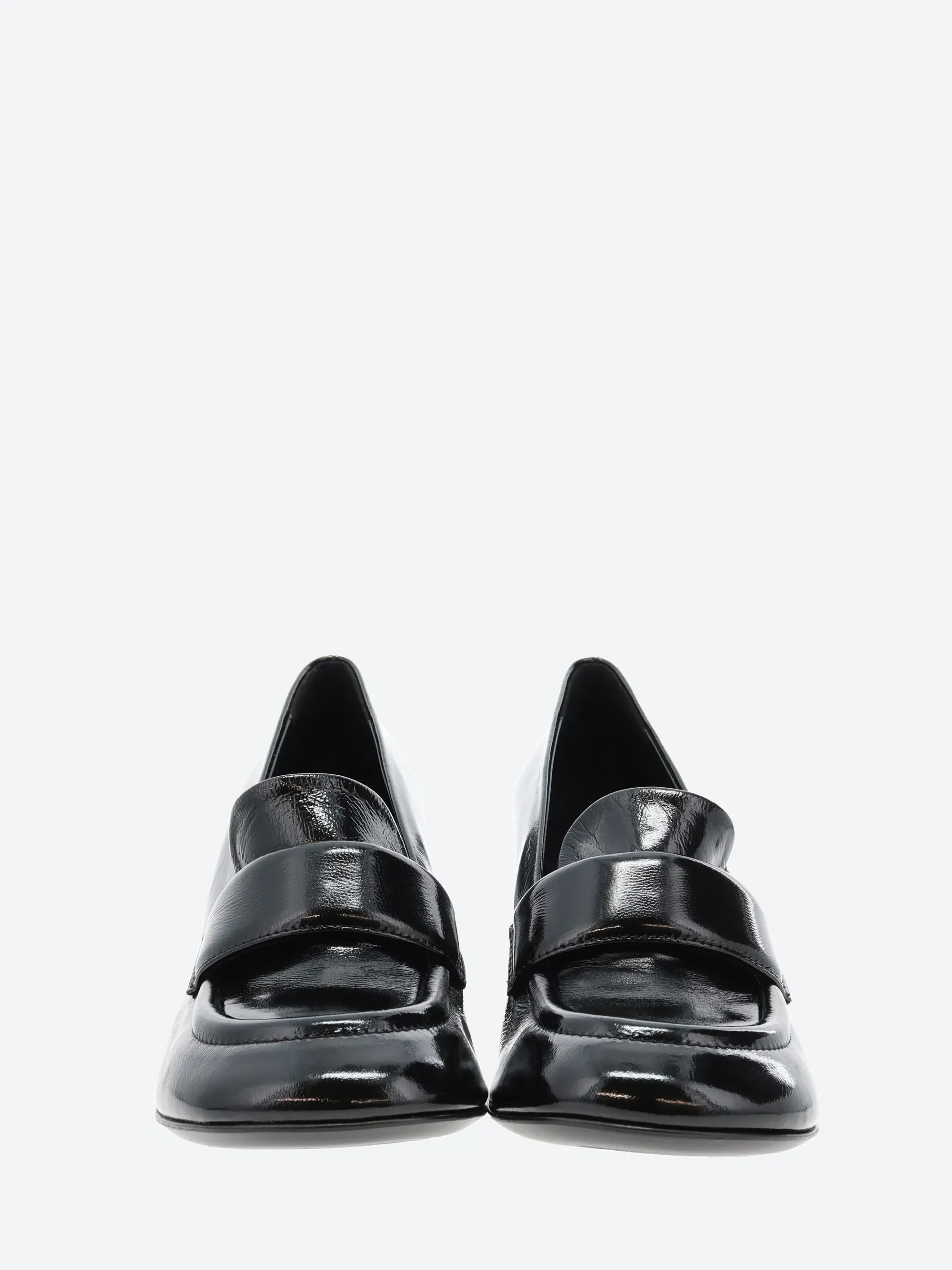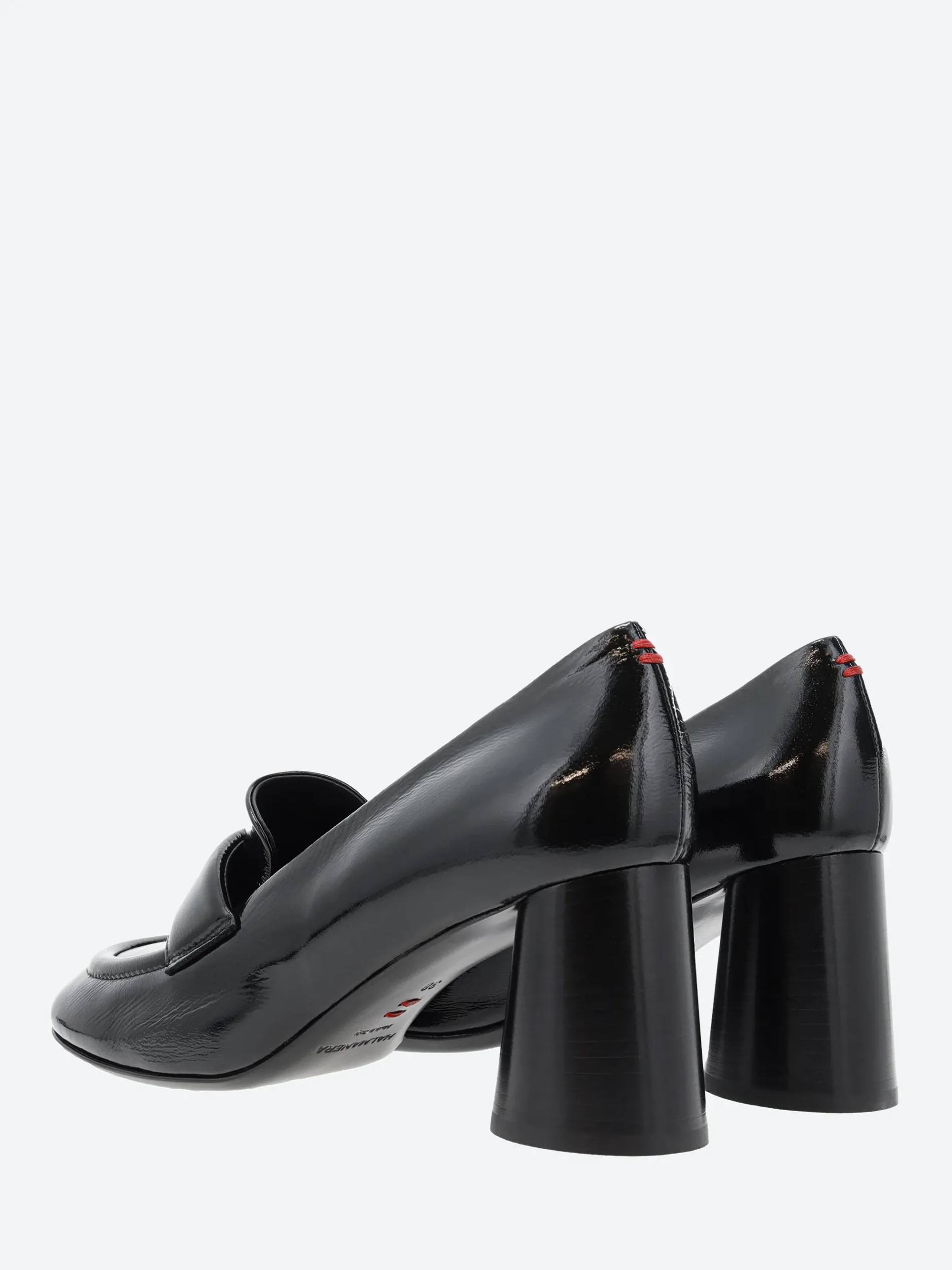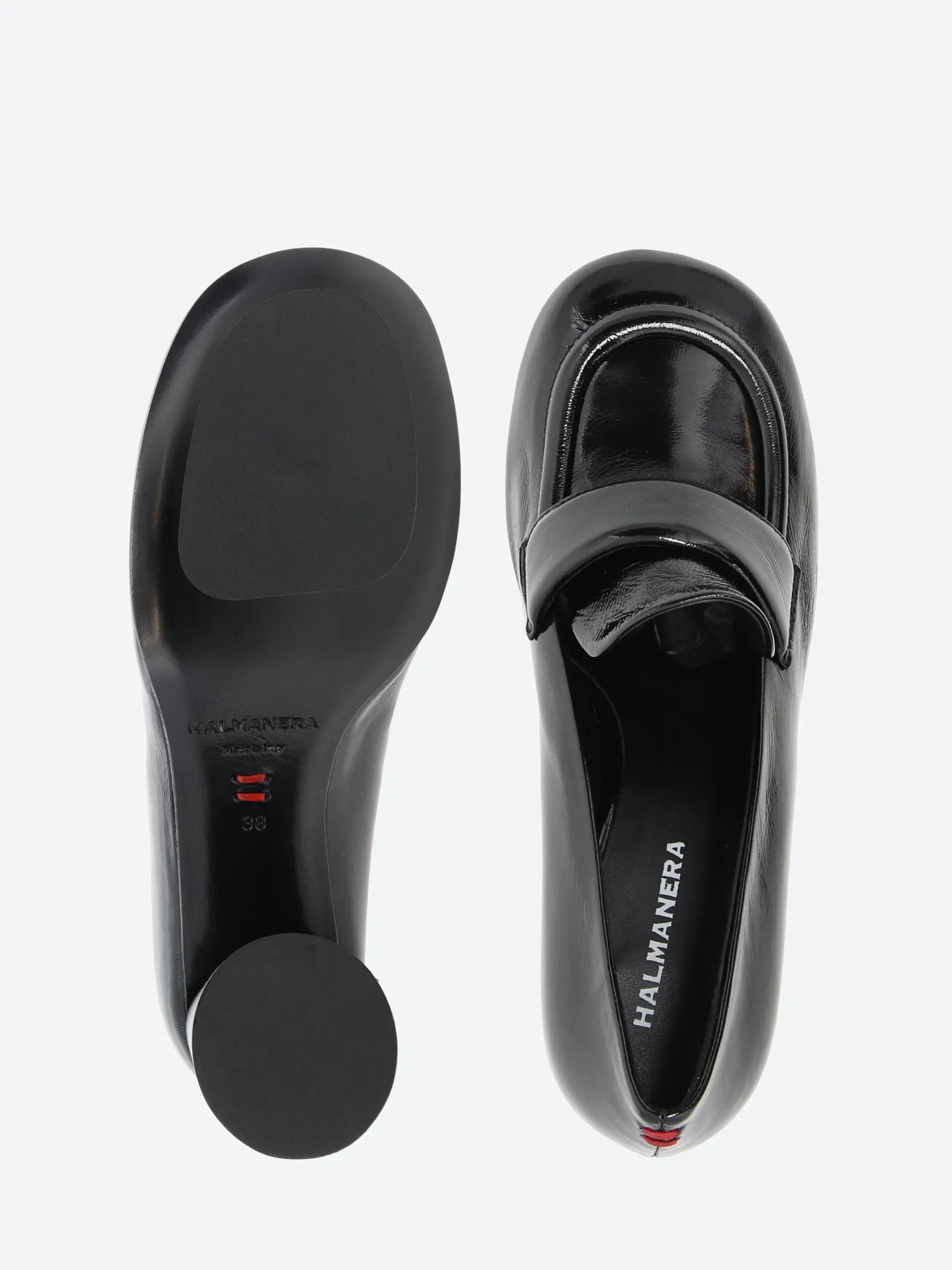Halmanera heeled loafer in shiny leather. A slip-on style for easy on and off.