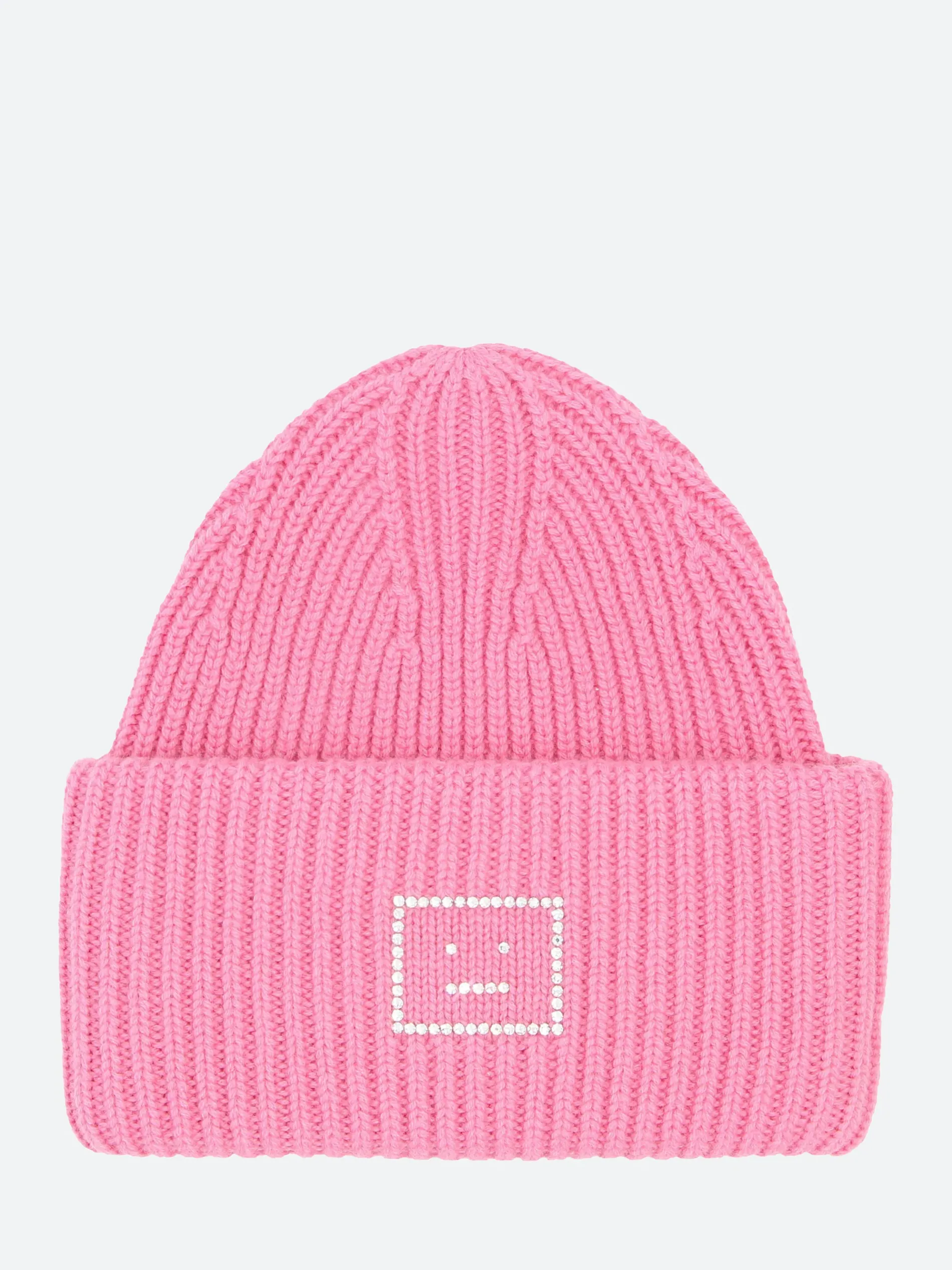 Knit beanie features a Face logo with rhinestones on the front crafted from chunky wool with ribbed finishing.